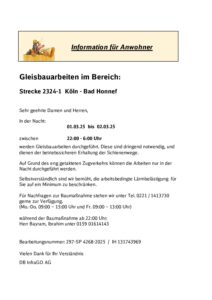 Anwohner Information der DB 1und 2 März 2025