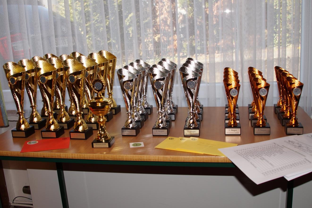 Preisübergabe Hubertus Schützen Selhof — 100 Schuss in 100 Min — Foto© Thomas Scheben (1) Die Preis warten auf ihre Gewinner –Hubertus Schützenbruderschaft Selhof — 100 Schuss in 100 Min — Foto© Thomas Scheben