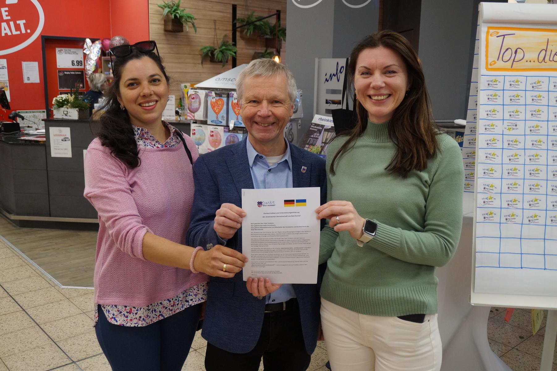 Am vergangenem Freitag (9.1.25) überreichte Halyna Konoplia, selbst im Sommer 2022 aus der ukrainischen Stadt Sumy nach Bad Honnef geflüchtet, Bürgermeister Otto Neuhoff im Namen vieler aus der Ukraine geflüchteter Menschen einen persönlichen Dankesbrief.
