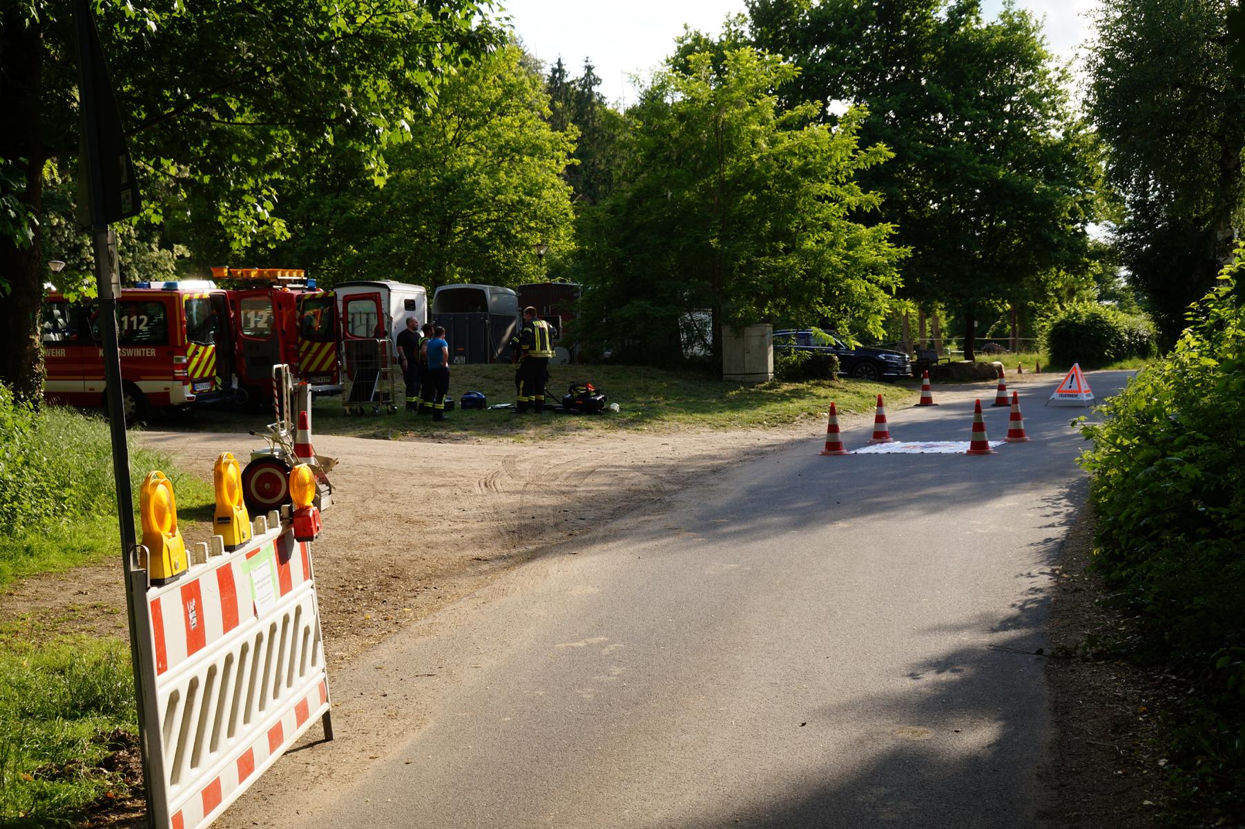 Da sich der Brand in unwegsamem Gelände befand und der genaue Brandort zunächst schwer auszumachen war, wurden zusätzliche Einheiten zur Unterstützung angefordert. Die Freiwillige Feuerwehr Rheinbreitbach rückte mit einem Waldbrandbekämpfungstrupp aus, während die Freiwillige Feuerwehr Königswinter eine Aufklärungsdrohne einsetzte, um die Lage besser zu erfassen.