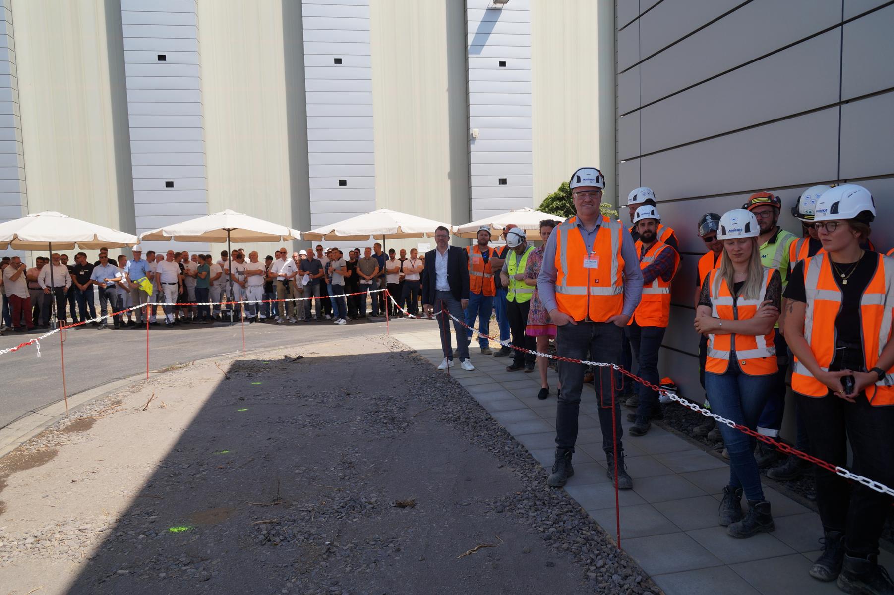 Trotz hochsommerlicher Temperaturen von über 35 Grad versammelten sich anschließend alle Teilnehmer auf dem vorgesehenen Baufeld. Dort wurde gemeinsam der symbolische erste Spatenstich vollzogen – ein Zeichen für den Aufbruch in eine neue Phase der Standortentwicklung. Mit der Erweiterung der Transformatorenproduktion wird zugleich ein Stück traditionelle Industriegeschichte fortgeschrieben, die Bad Honnef seit Jahrzehnten als bedeutenden Fertigungsstandort prägt.