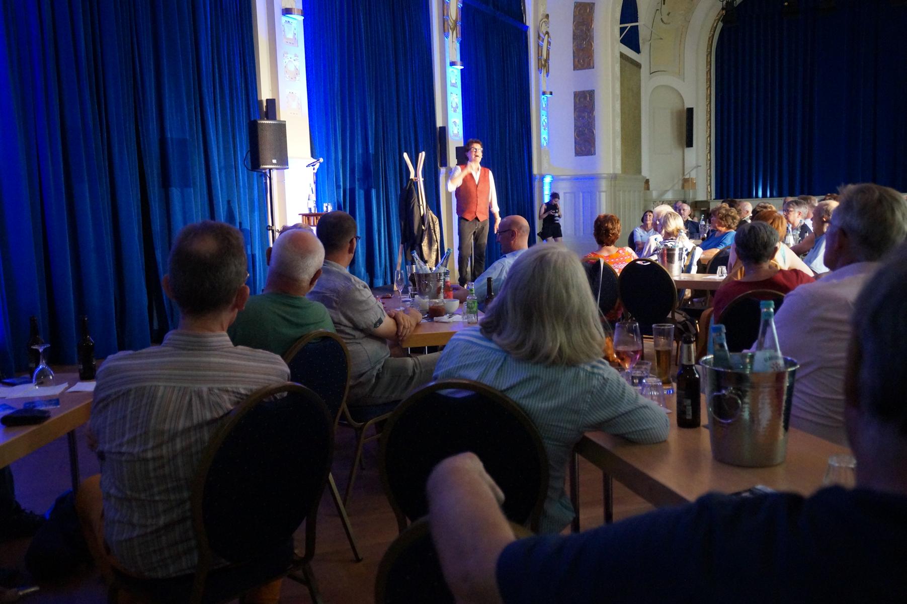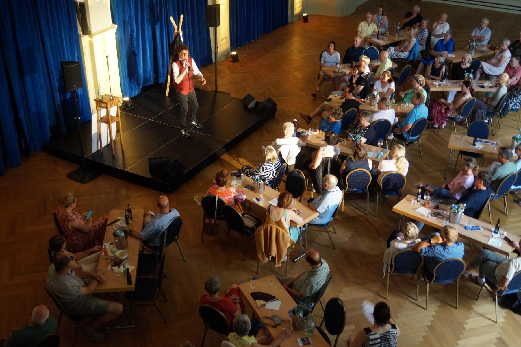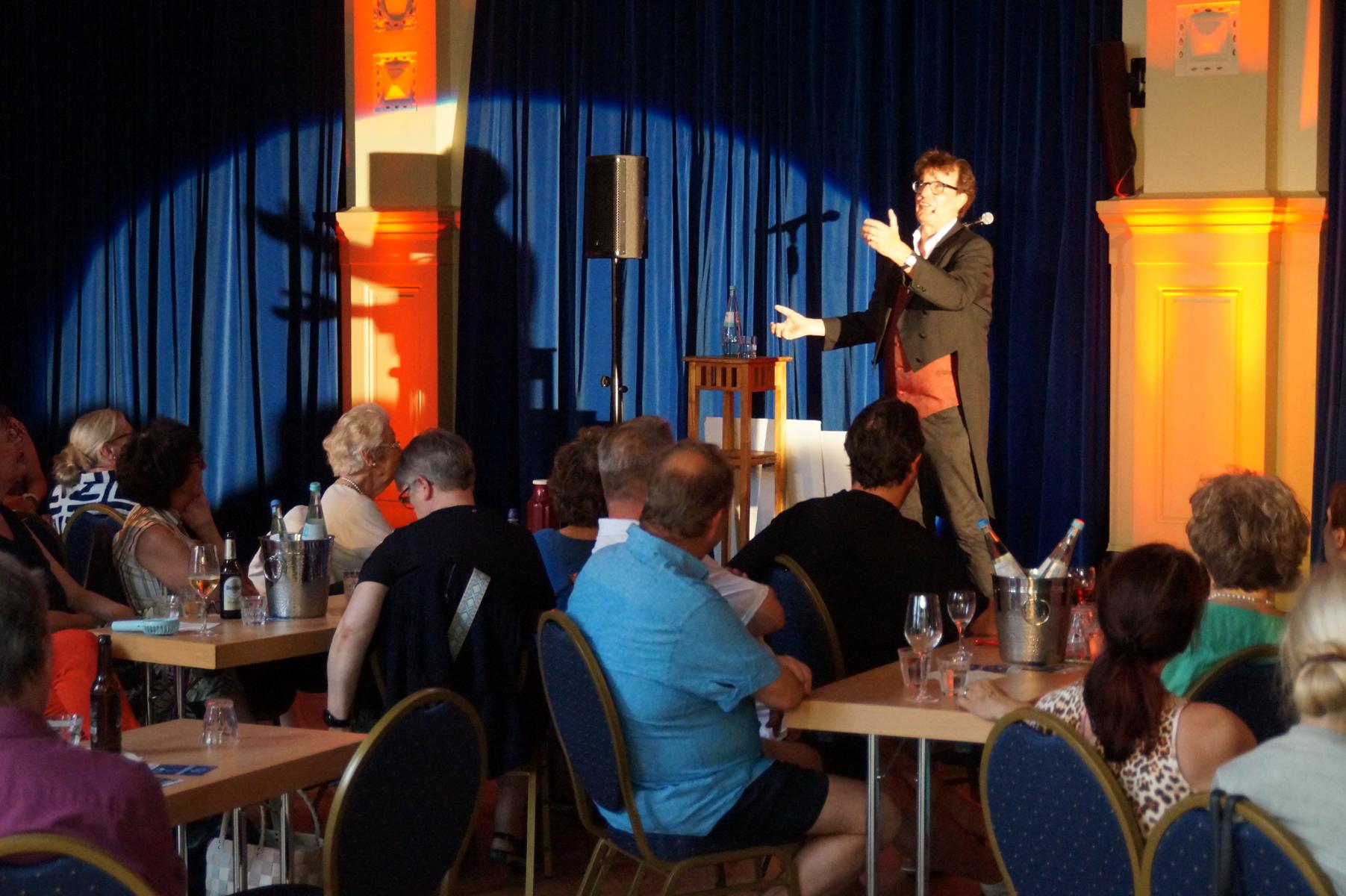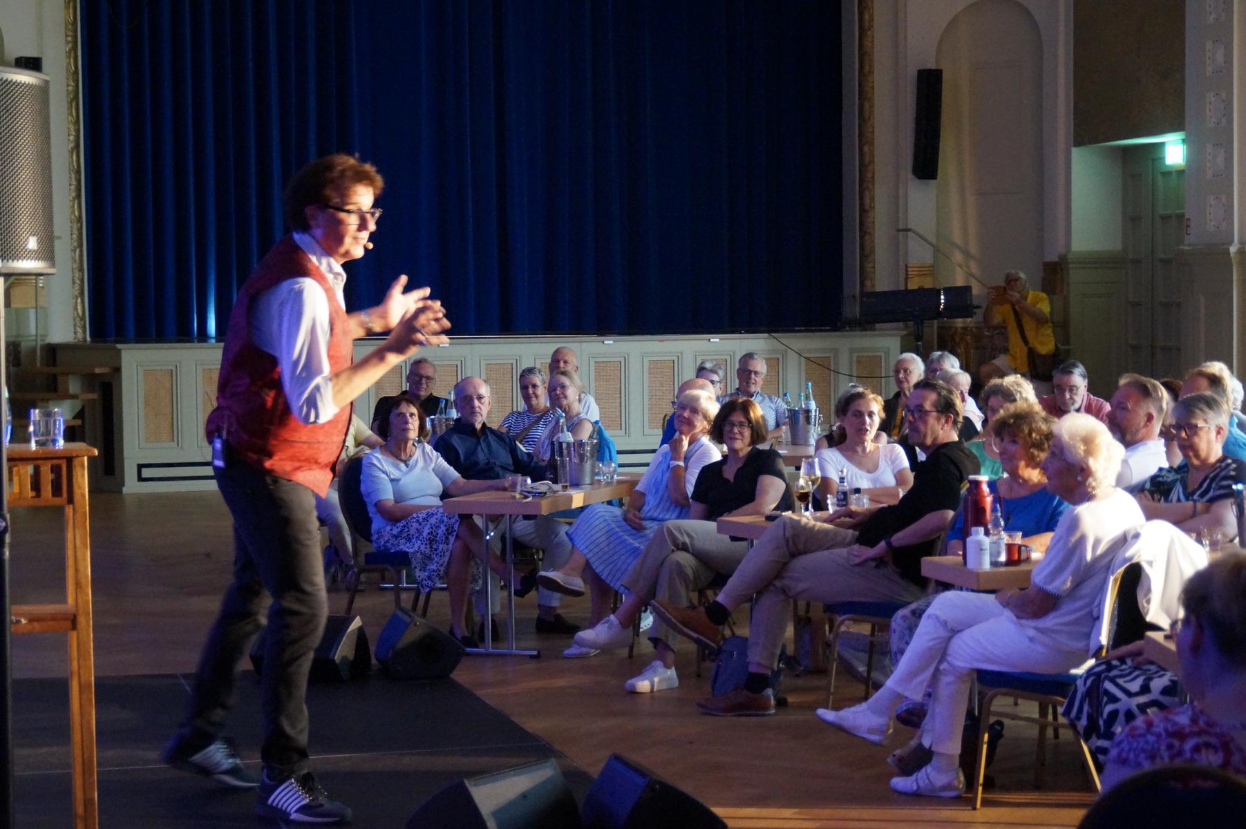 Trotz der Tageshitze von rund 40 Grad war das Kurhaus gut besucht. Die Zuschauer genossen das Programm mit sichtlicher Begeisterung, und die lebendige Atmosphäre setzte sich bis weit über das Veranstaltungsende hinaus fort. Christoph Brüske trug mit seinem Auftritt maßgeblich zum Gelingen des neuen Veranstaltungsformats „Kurhaus LIVE“ bei, das von Nicolas Büsch mit frischen Impulsen für das Kurhaus entwickelt wurde.