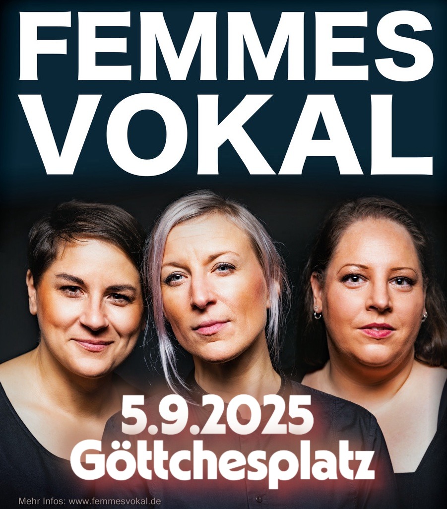Der Göttchesplatz wird zur Bühne: Am Freitag, 5. September 2025, startet um 19:30 Uhr das erste Platzkonzert Musik unter Bäumen mit „Femmes Vokal“ auf dem Göttchesplatz. Der Eintritt ist frei – Spenden sind willkommen. Vor Ort gibt es gekühlte Getränke, inklusive Wein, zu fairen Preisen. Bei schlechtem Wetter muss das Konzert entfallen.