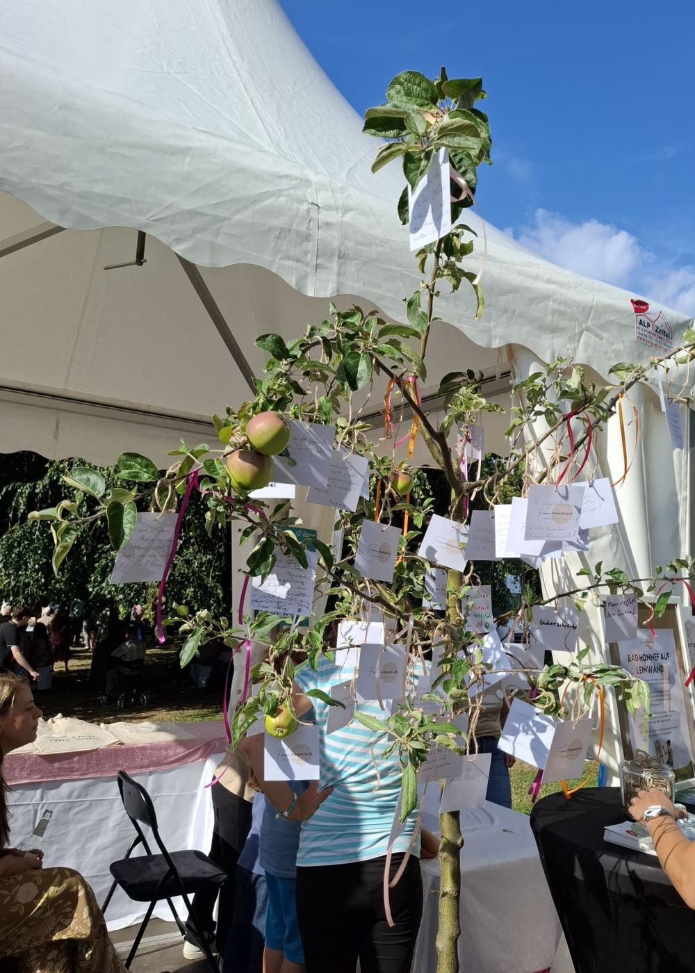 Über 80 Festivalgäste hatten sich auf dem Lebensfreudefestival am 12. Juli bei dem kreativen Austausch am Stand des Frauen-Stammtischs beteiligt. Seitdem wurde der Baum übergangsweise „geparkt“. Nun soll er, aber auch die zahlreichen Wünsche ein neues Zuhause finden. Die Wünsche sind sehr vielfältig und decken viele unterschiedlichen Bereiche ab. Hier eine kleine Auswahl: „Mehr Trinkwasser-Spender für Mitbürger und Touristen“, „Lebendige Innenstadt mit vielfältigen Geschäften und Cafés erhalten und weiter gestalten“, „Noch mehr Farbe in der Innenstadt“.