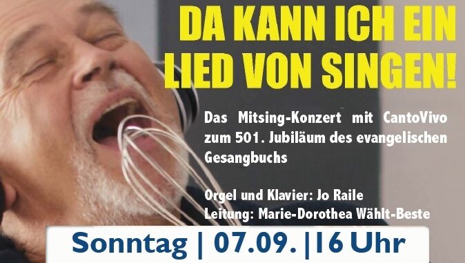 Unter dem Titel „Da kann ich ein Lied von singen“ lädt der Chor CantoVivo der Evangelischen Kirchengemeinde Bad Honnef am Sonntag, 7. September, um 16 Uhr zu einem besonderen Mitsingkonzert in die Erlöserkirche ein. Die musikalische Leitung hat Marie-Dorothea Wählt-Beste.