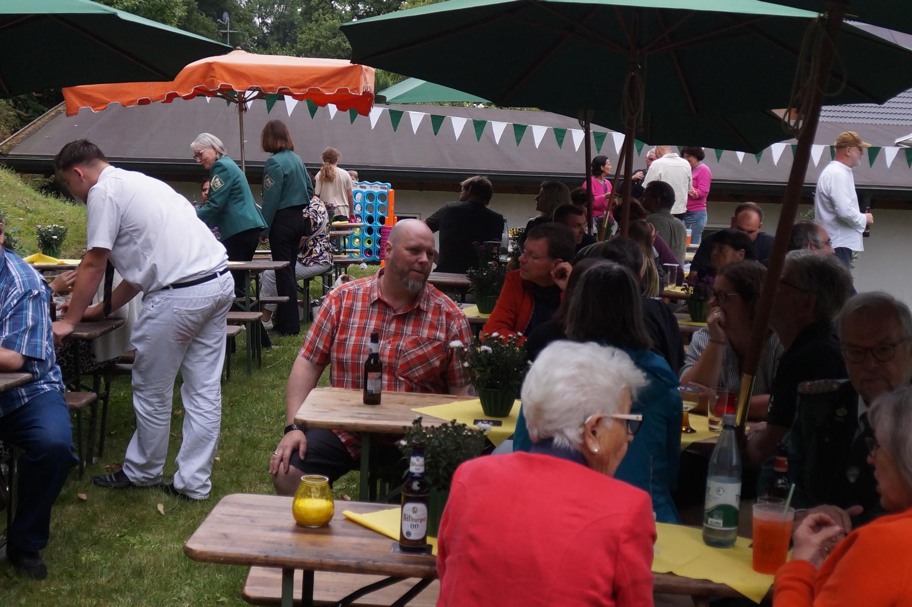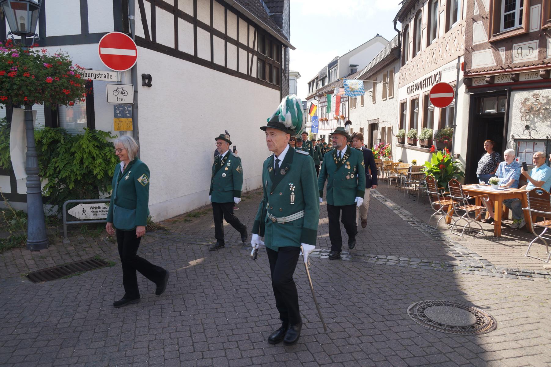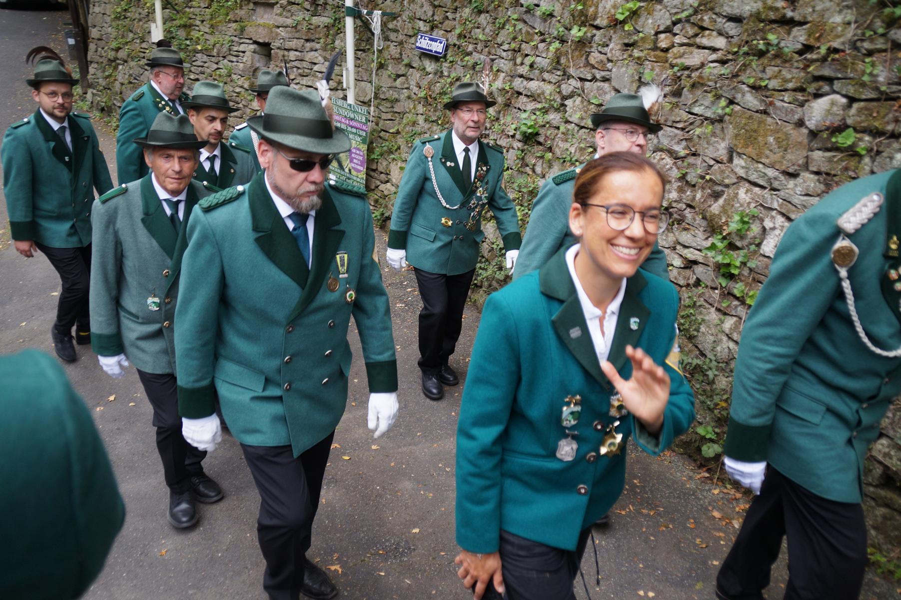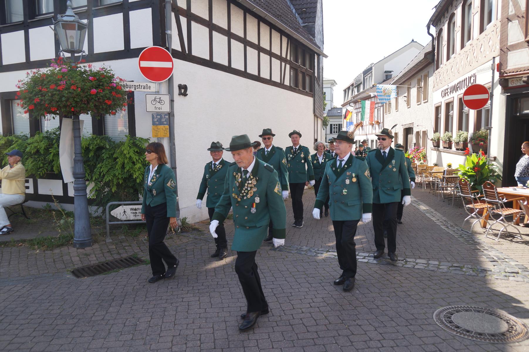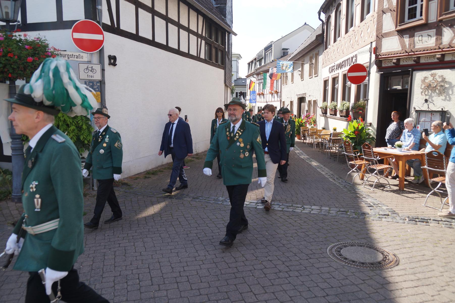 Nach der Zeremonie setzte sich der Festzug unter musikalischer Leitung des Spielmannzugs TV Eiche in Bewegung und führte die Gesellschaft zum Schützhaus im Löwenburgertal. Dort wurde der Tag mit einem geselligen Frühschoppen eröffnet.