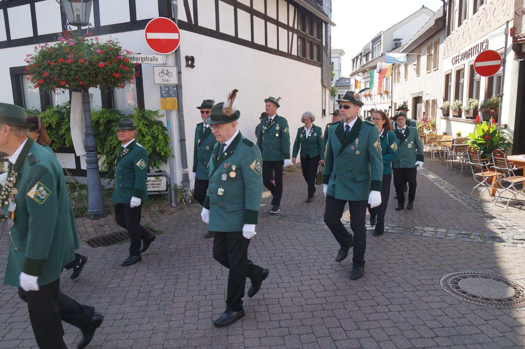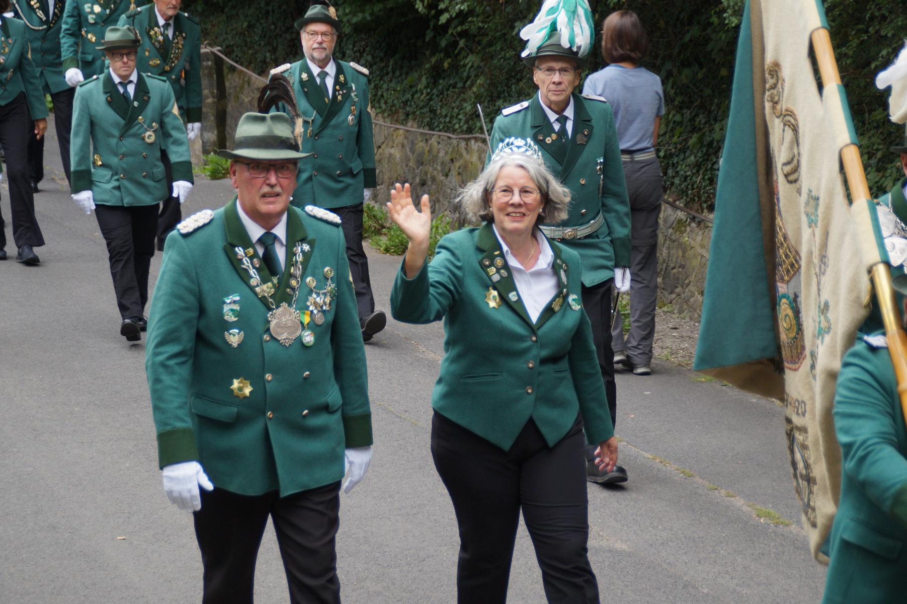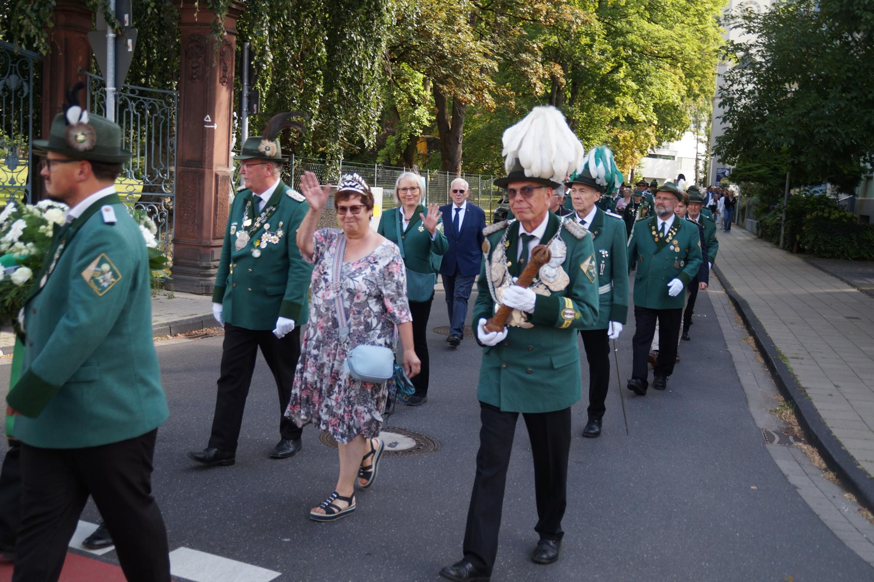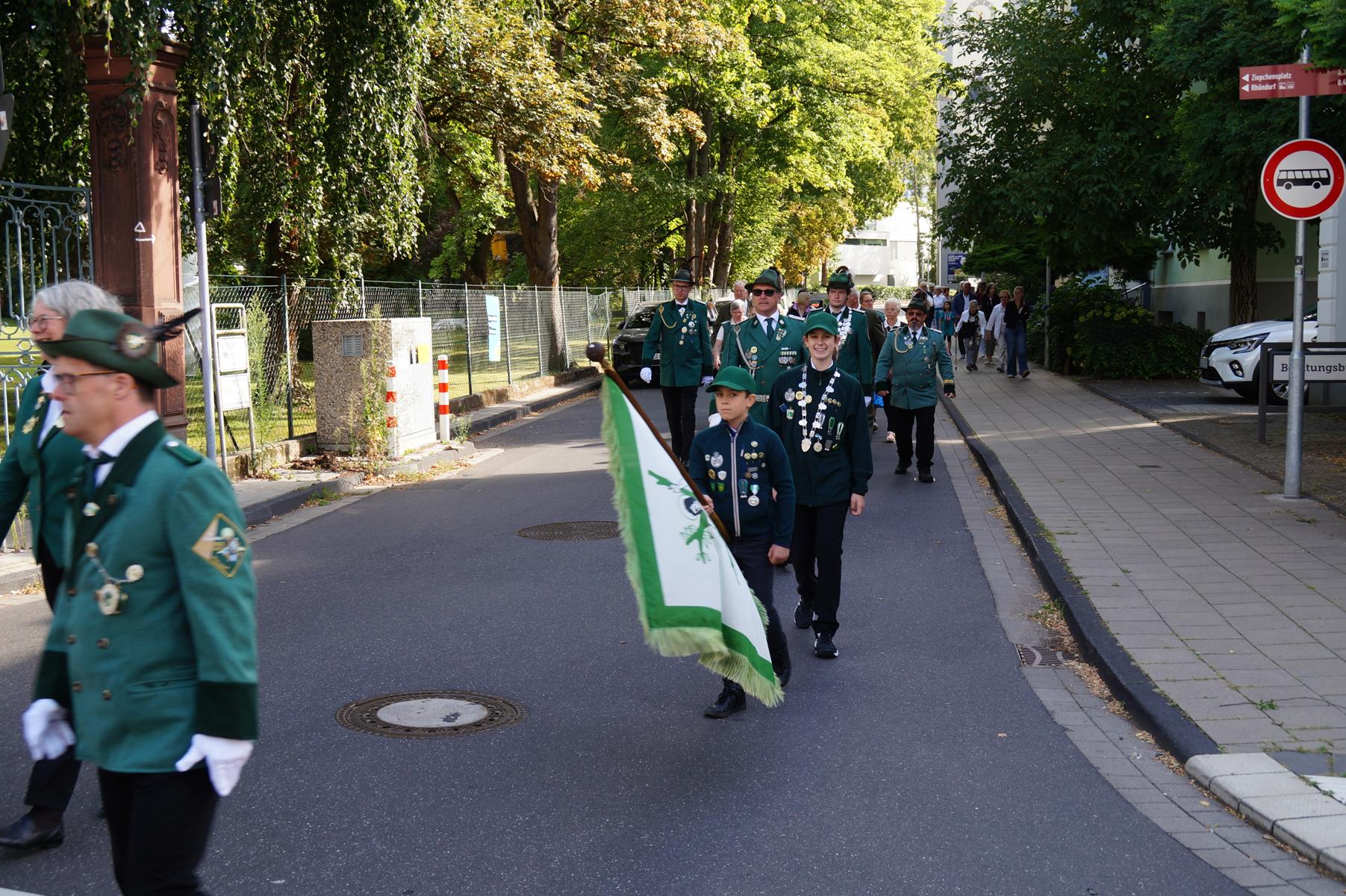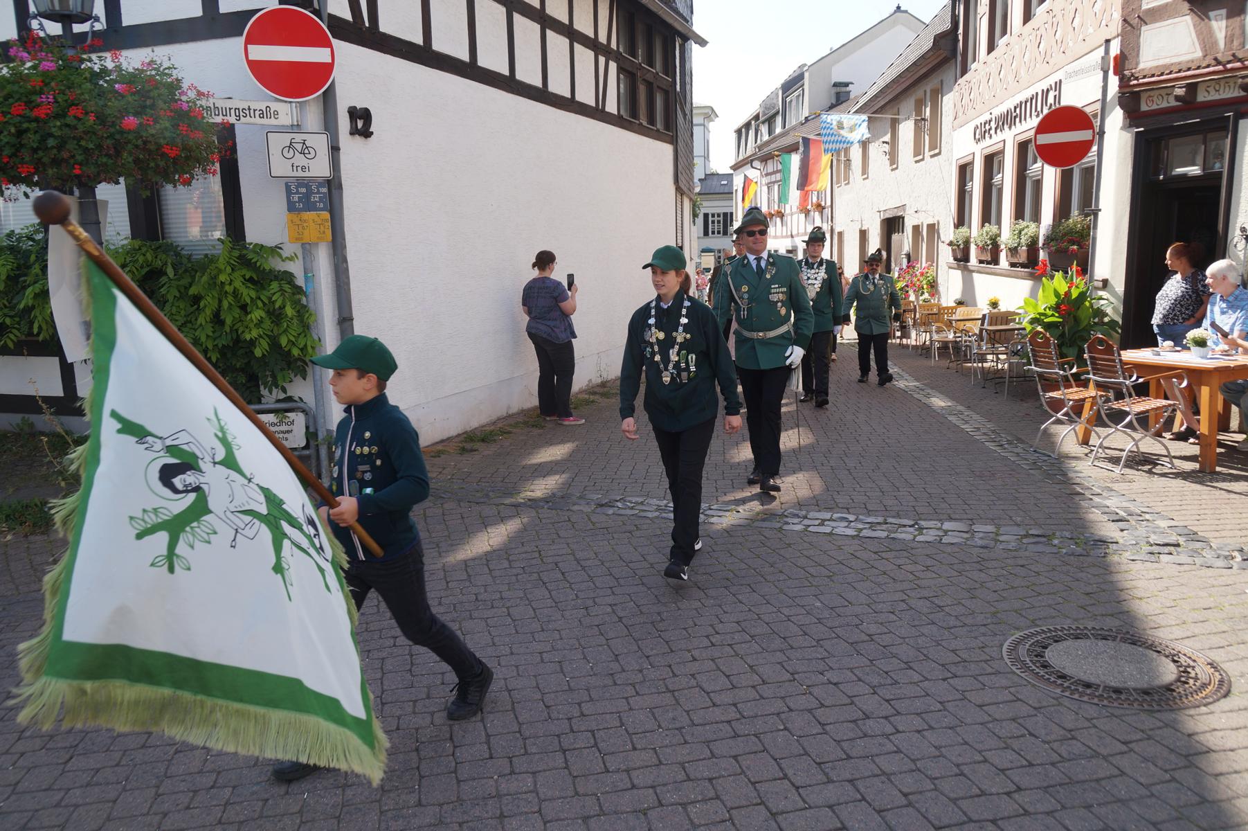 Nach der Zeremonie setzte sich der Festzug unter musikalischer Leitung des Spielmannzugs TV Eiche in Bewegung und führte die Gesellschaft zum Schützhaus im Löwenburgertal. Dort wurde der Tag mit einem geselligen Frühschoppen eröffnet.