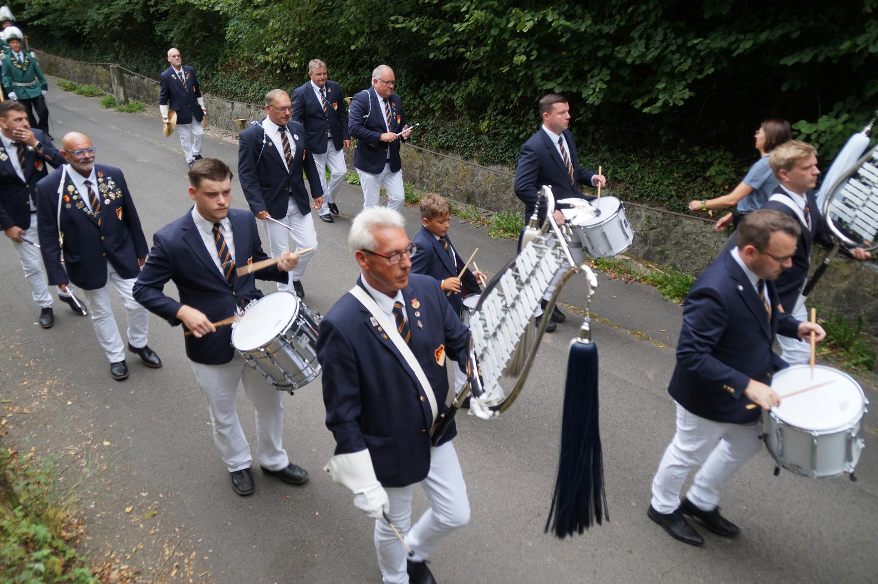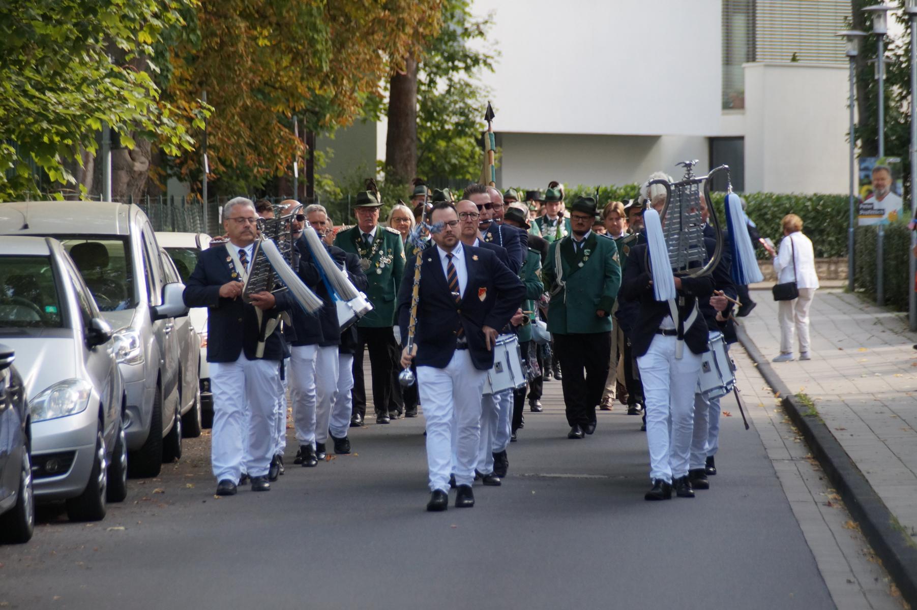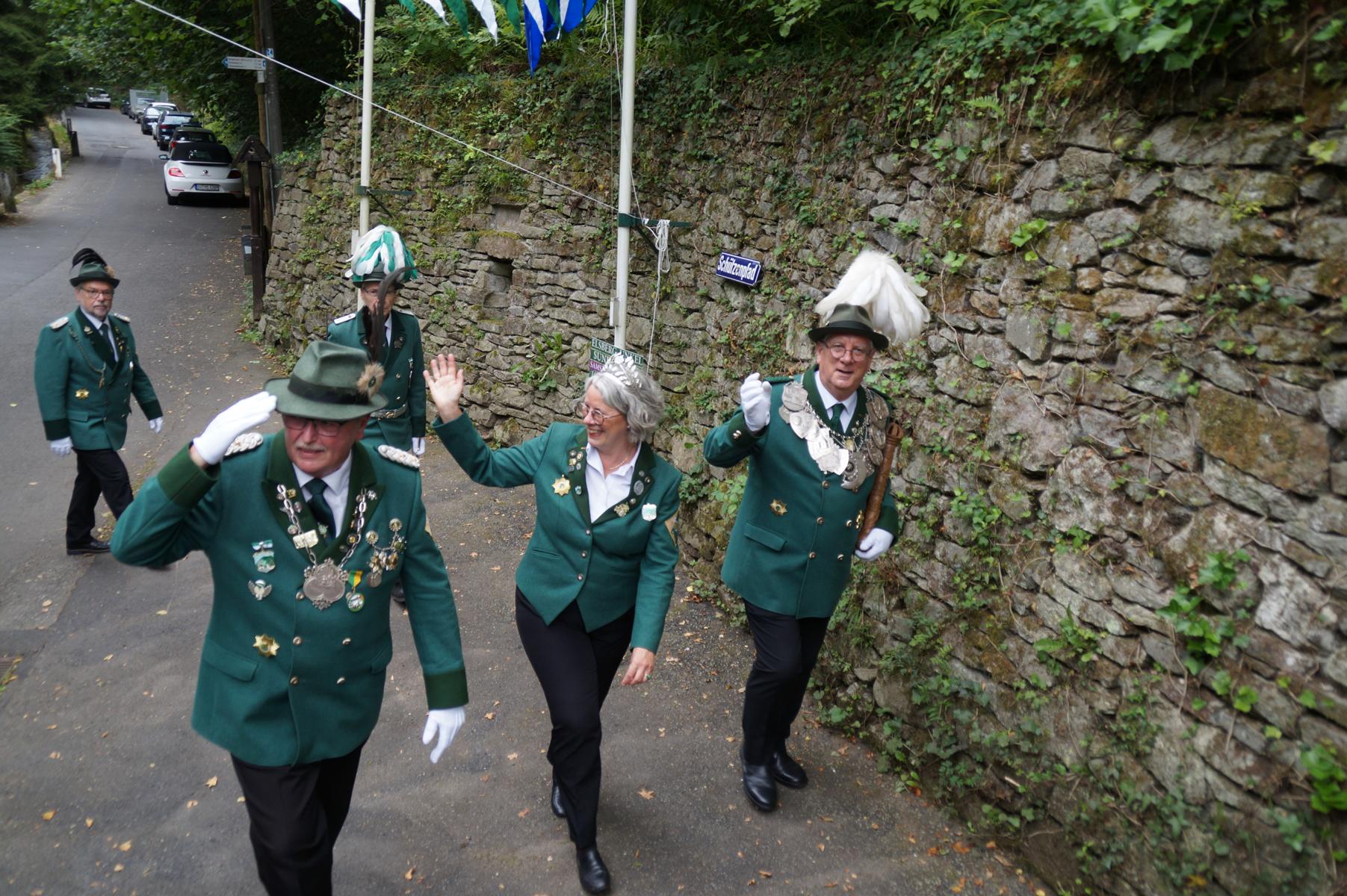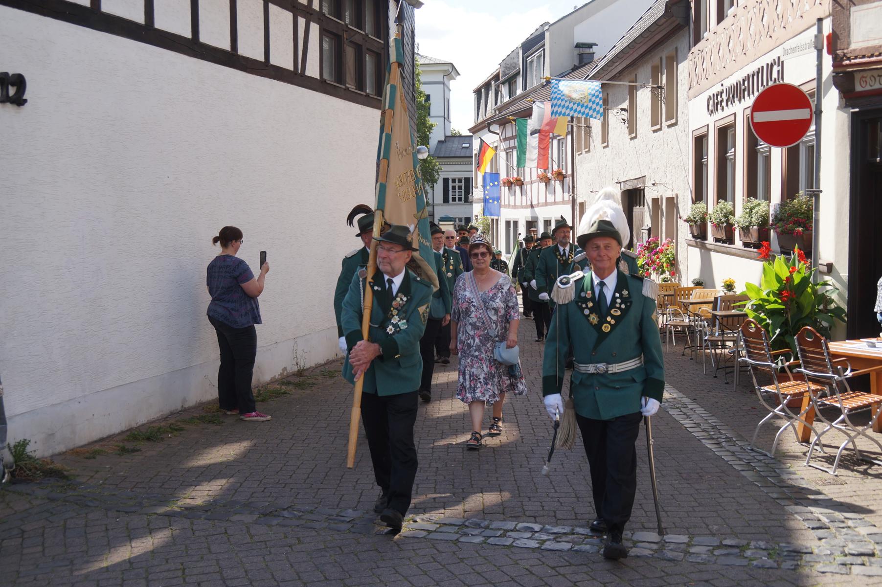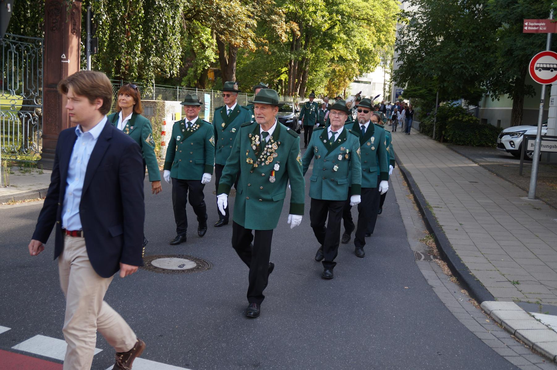 Nach der Zeremonie setzte sich der Festzug unter musikalischer Leitung des Spielmannzugs TV Eiche in Bewegung und führte die Gesellschaft zum Schützhaus im Löwenburgertal. Dort wurde der Tag mit einem geselligen Frühschoppen eröffnet.