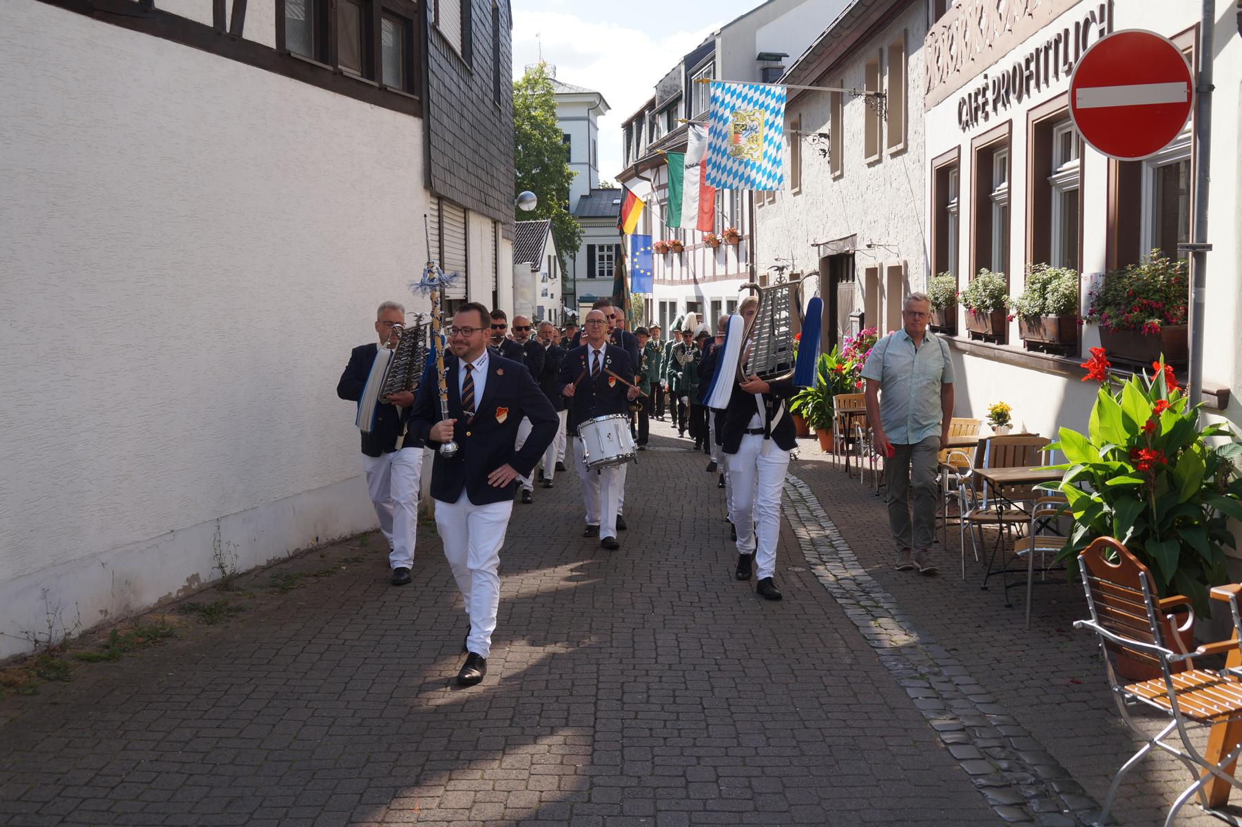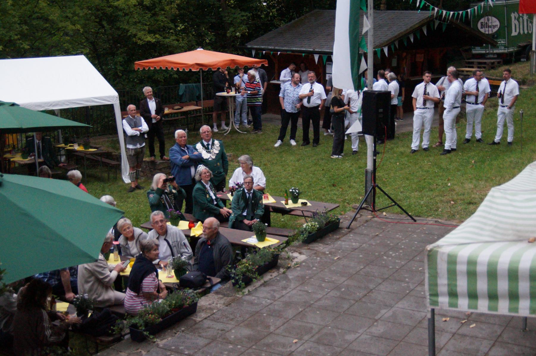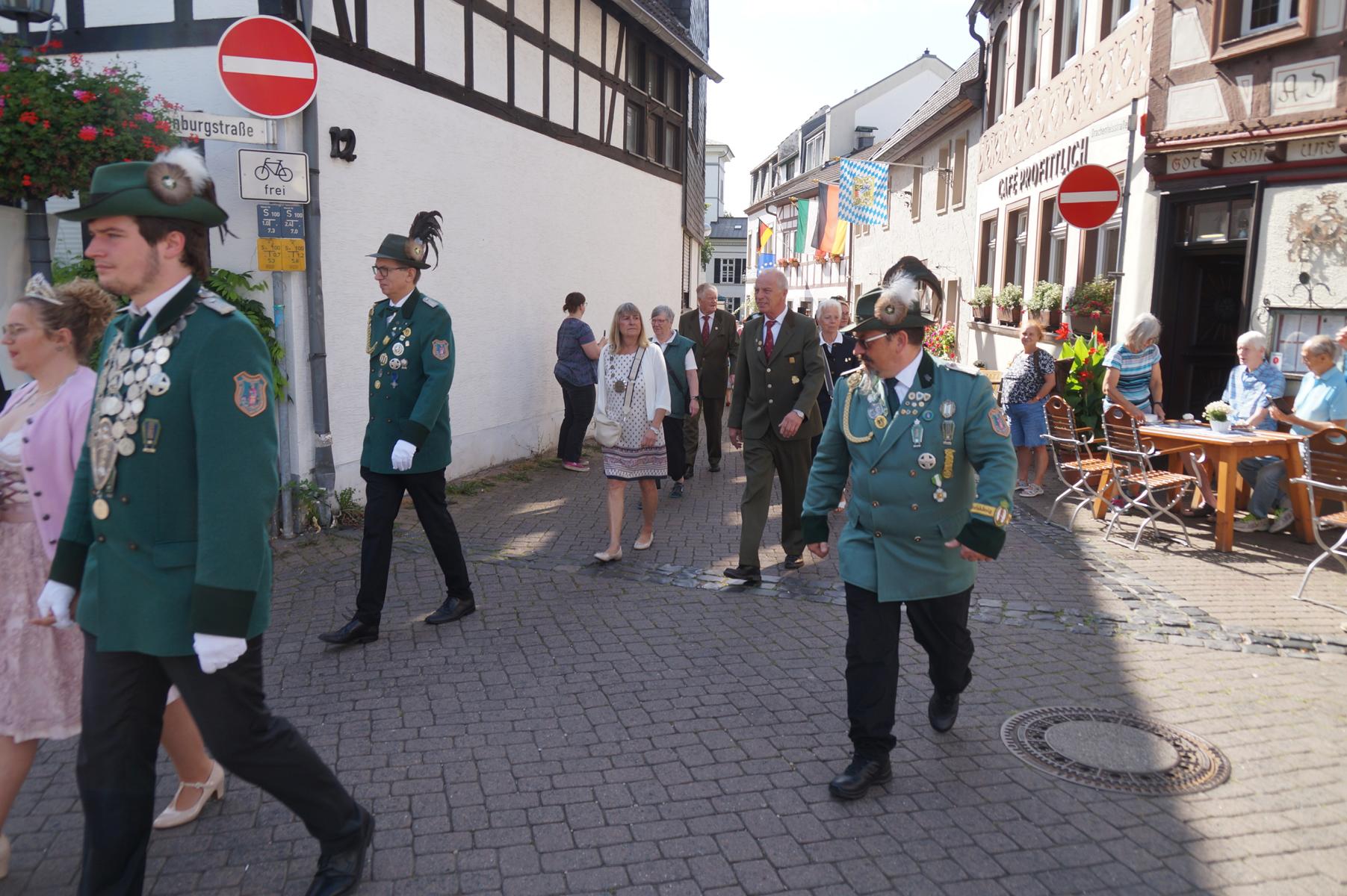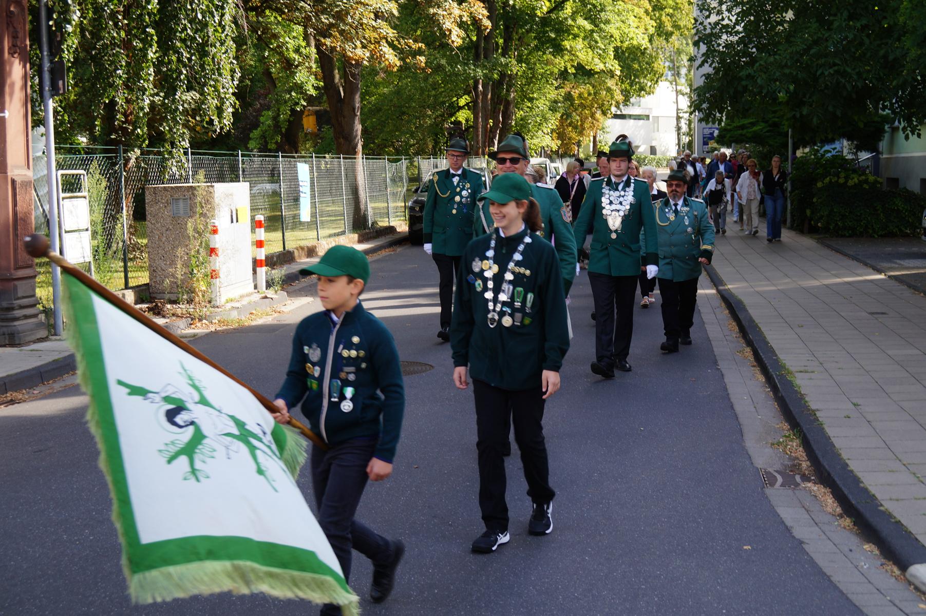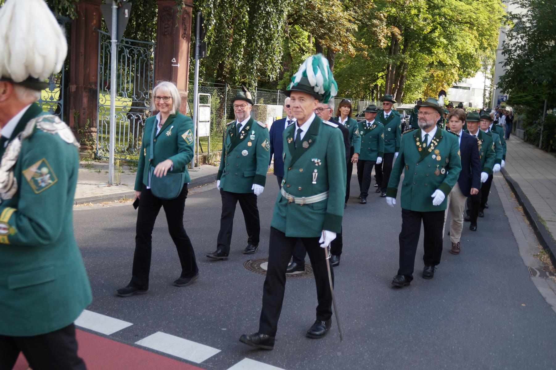 Nach der Zeremonie setzte sich der Festzug unter musikalischer Leitung des Spielmannzugs TV Eiche in Bewegung und führte die Gesellschaft zum Schützhaus im Löwenburgertal. Dort wurde der Tag mit einem geselligen Frühschoppen eröffnet.