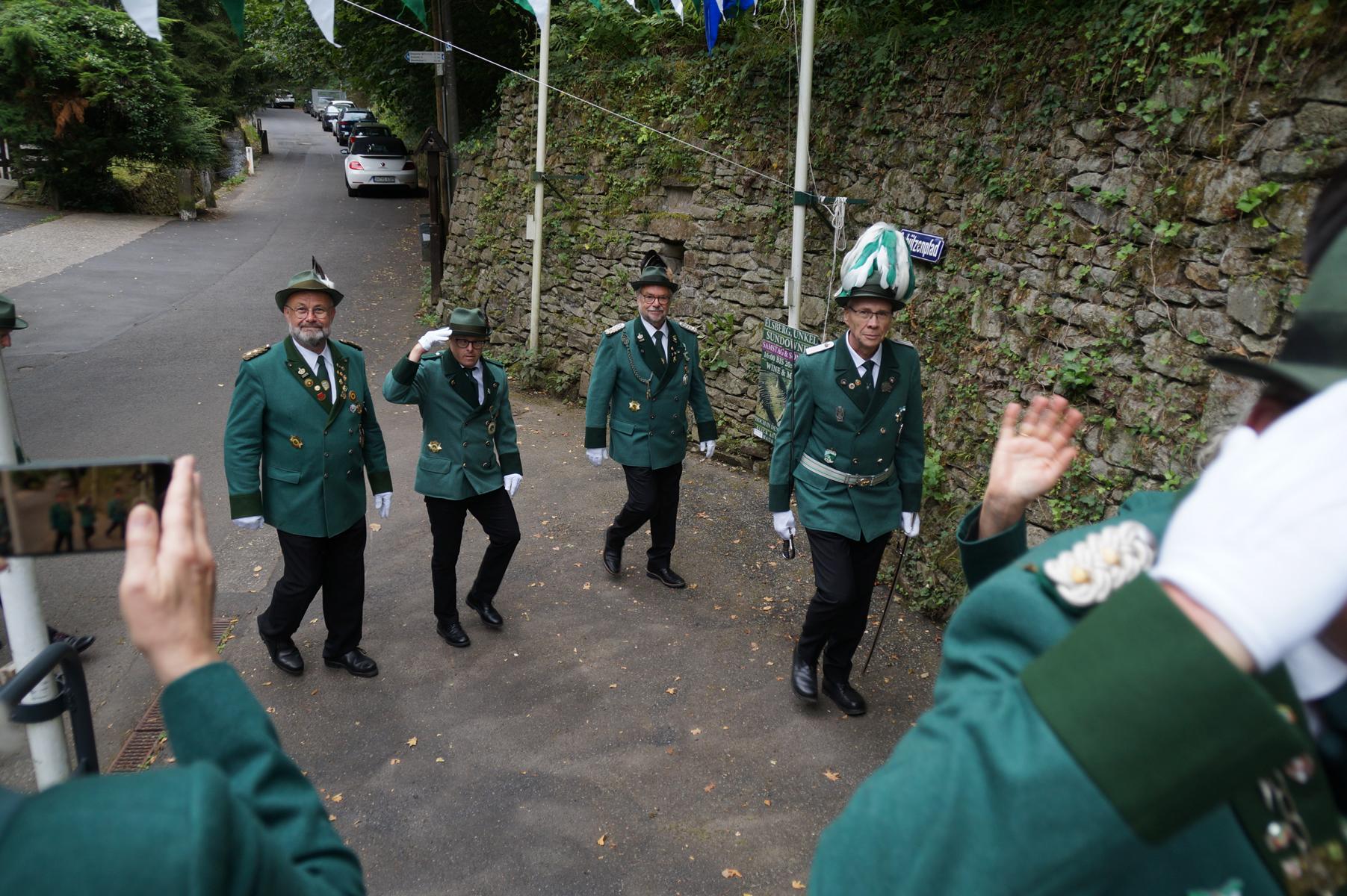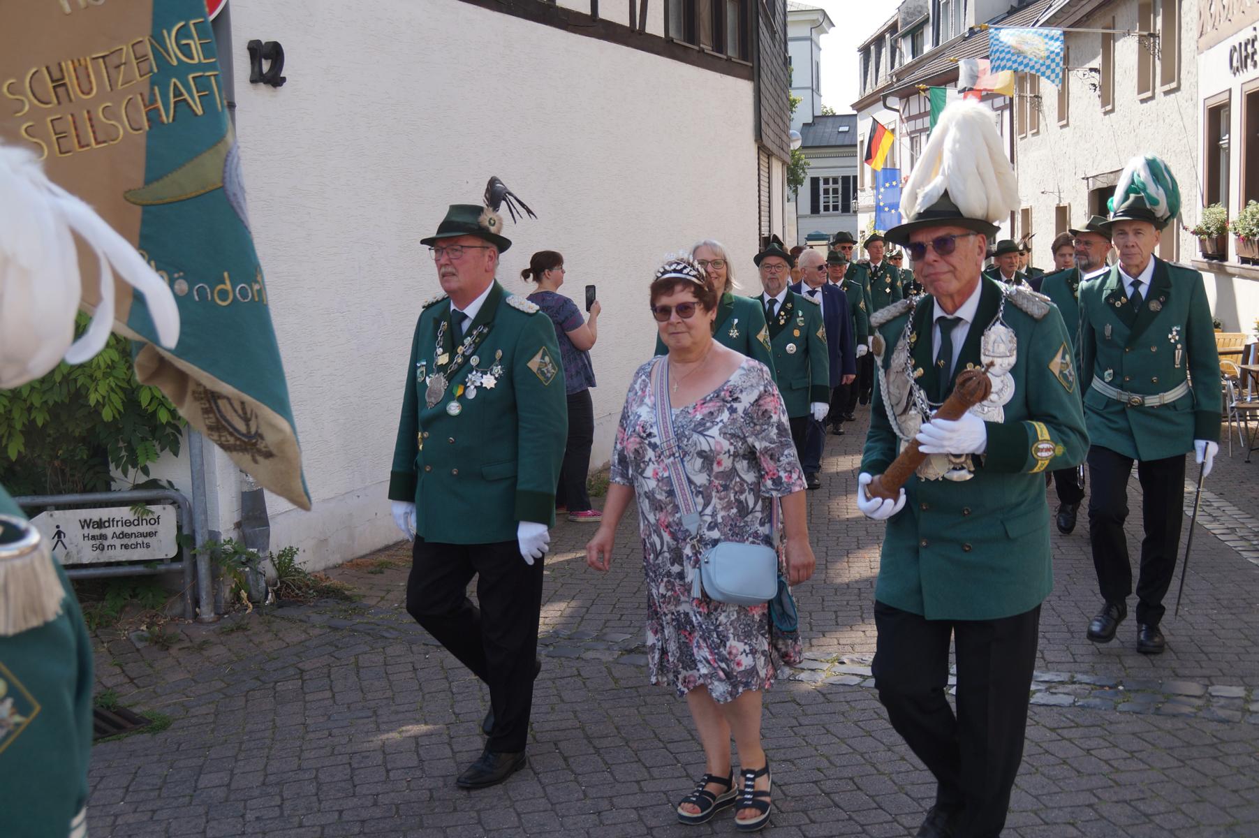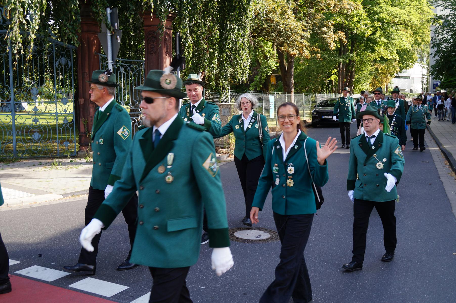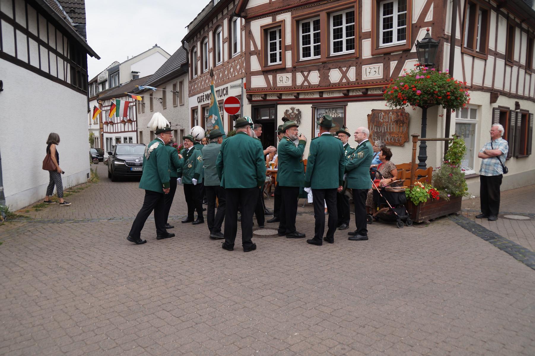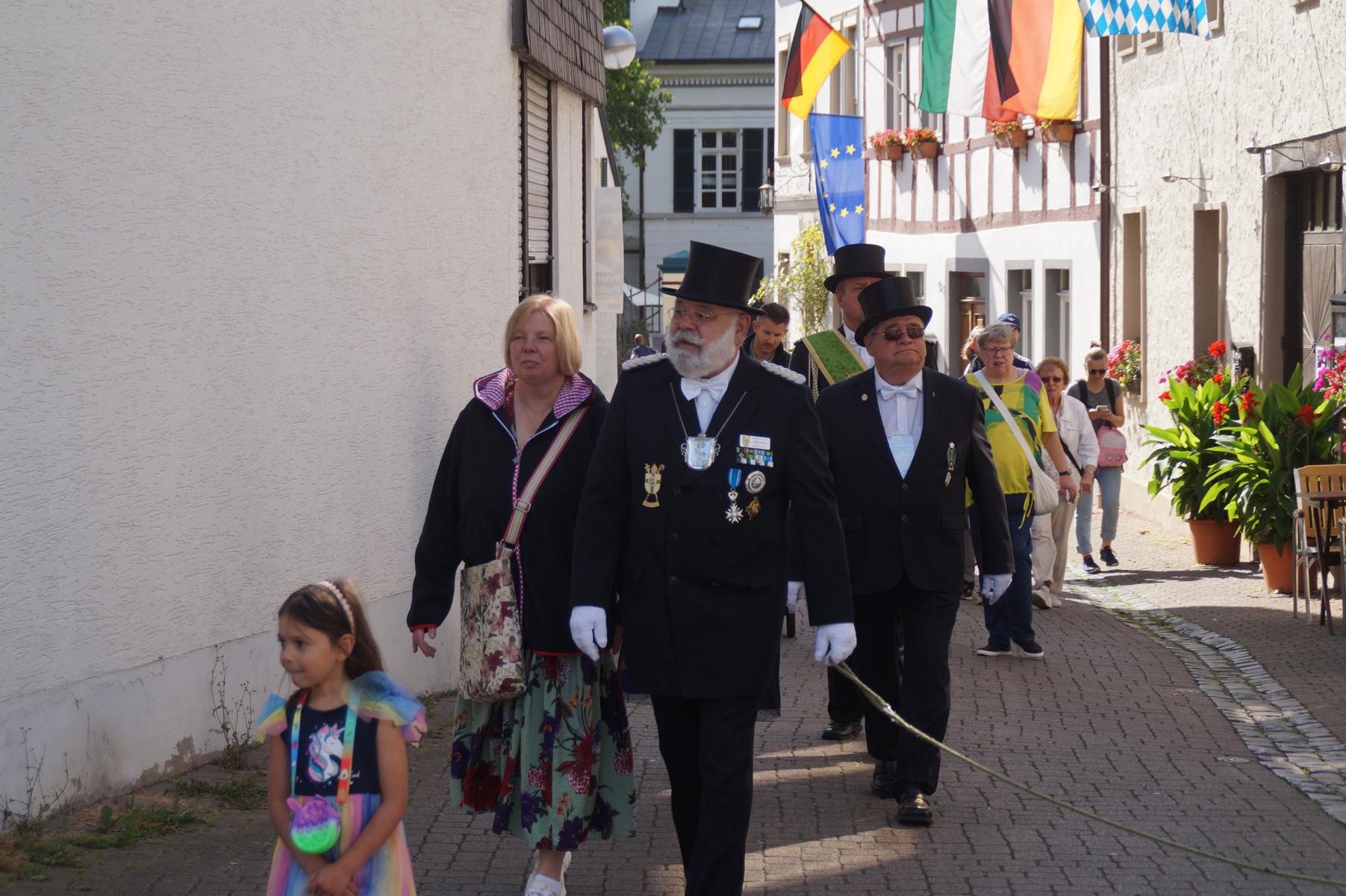 Nach der Zeremonie setzte sich der Festzug unter musikalischer Leitung des Spielmannzugs TV Eiche in Bewegung und führte die Gesellschaft zum Schützhaus im Löwenburgertal. Dort wurde der Tag mit einem geselligen Frühschoppen eröffnet.