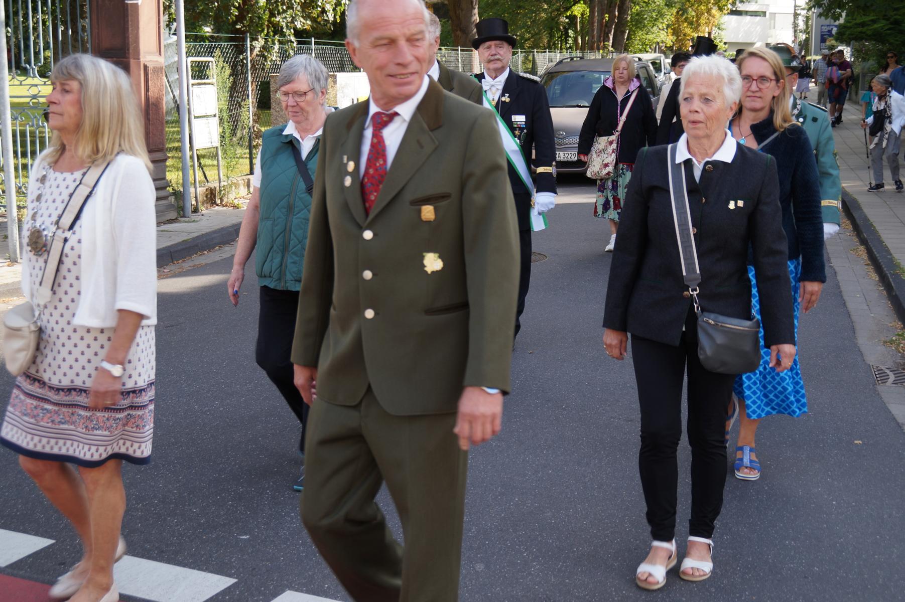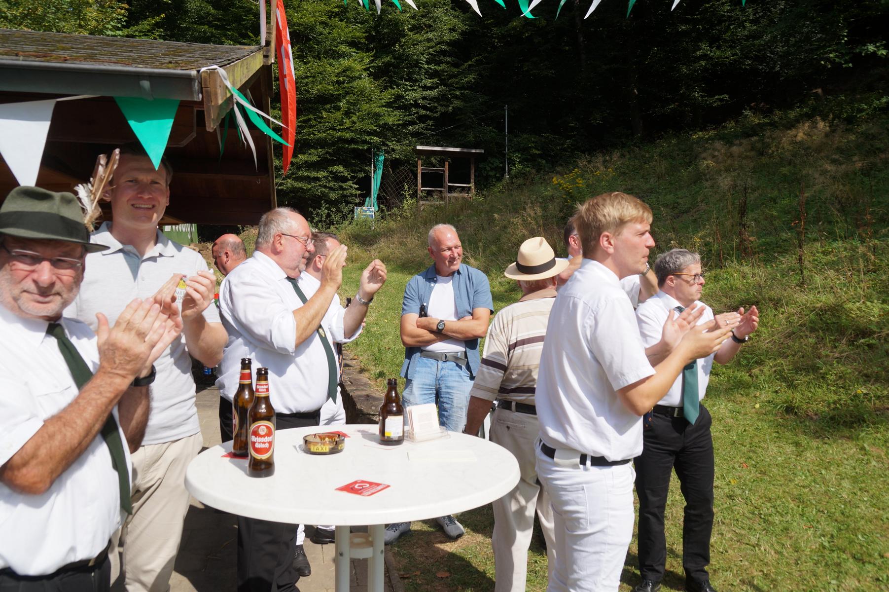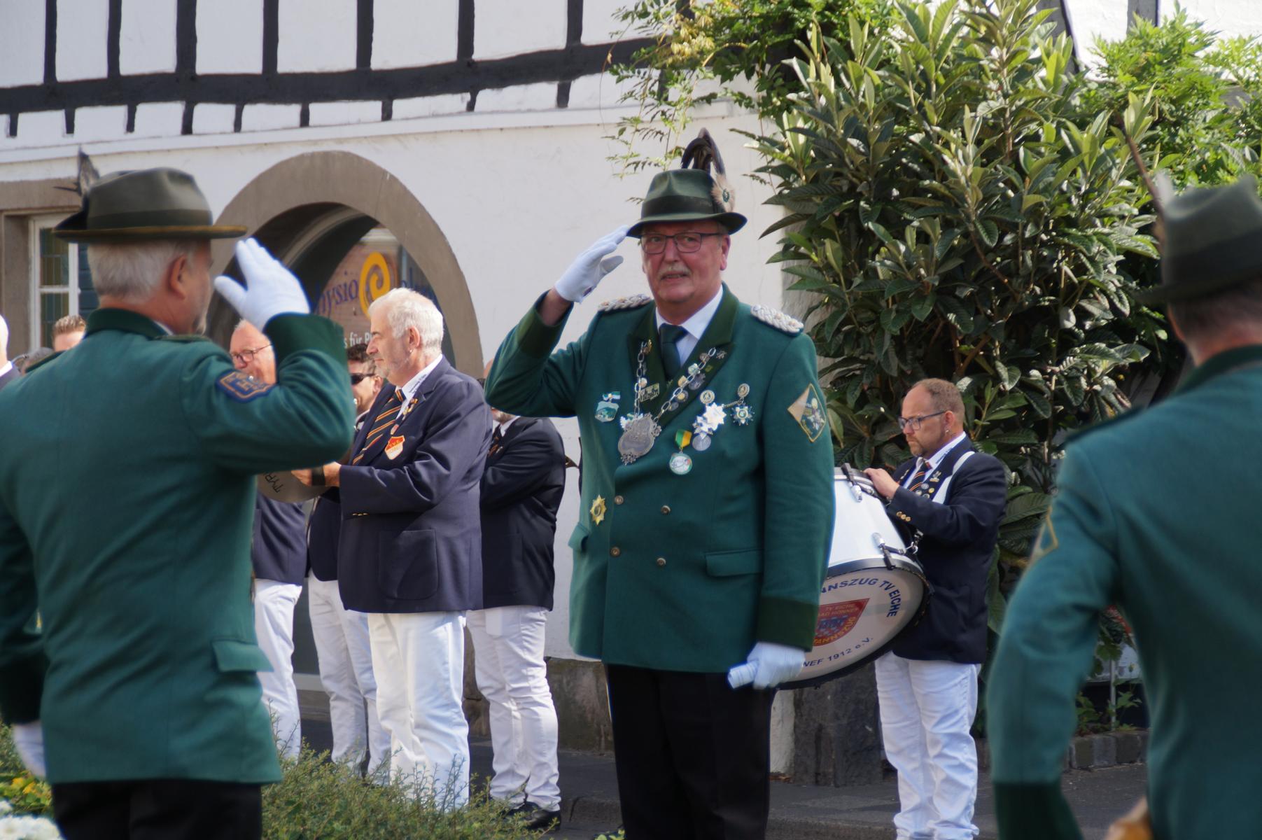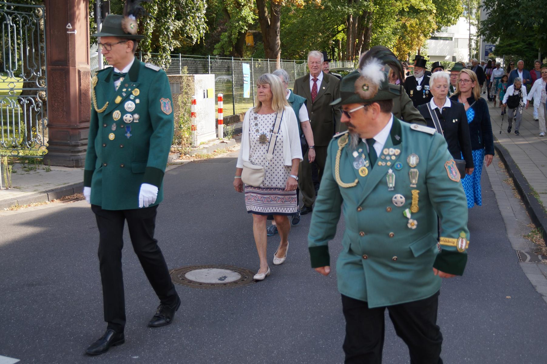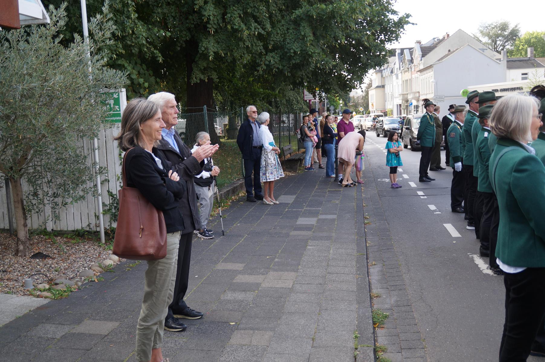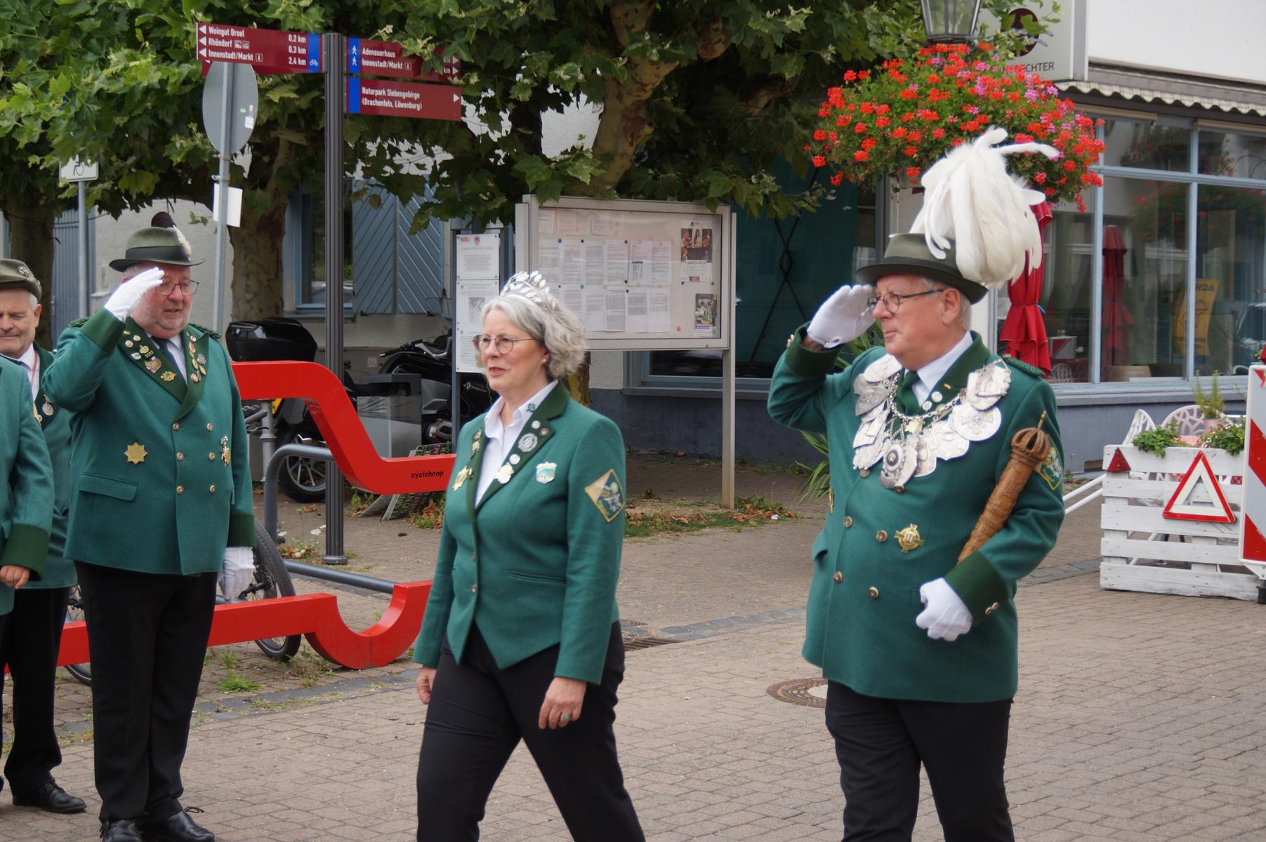 Nach der Zeremonie setzte sich der Festzug unter musikalischer Leitung des Spielmannzugs TV Eiche in Bewegung und führte die Gesellschaft zum Schützhaus im Löwenburgertal. Dort wurde der Tag mit einem geselligen Frühschoppen eröffnet.