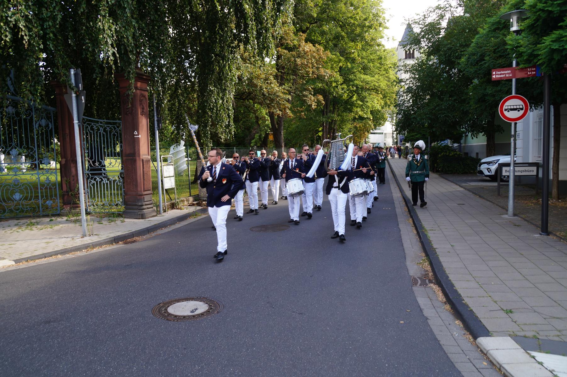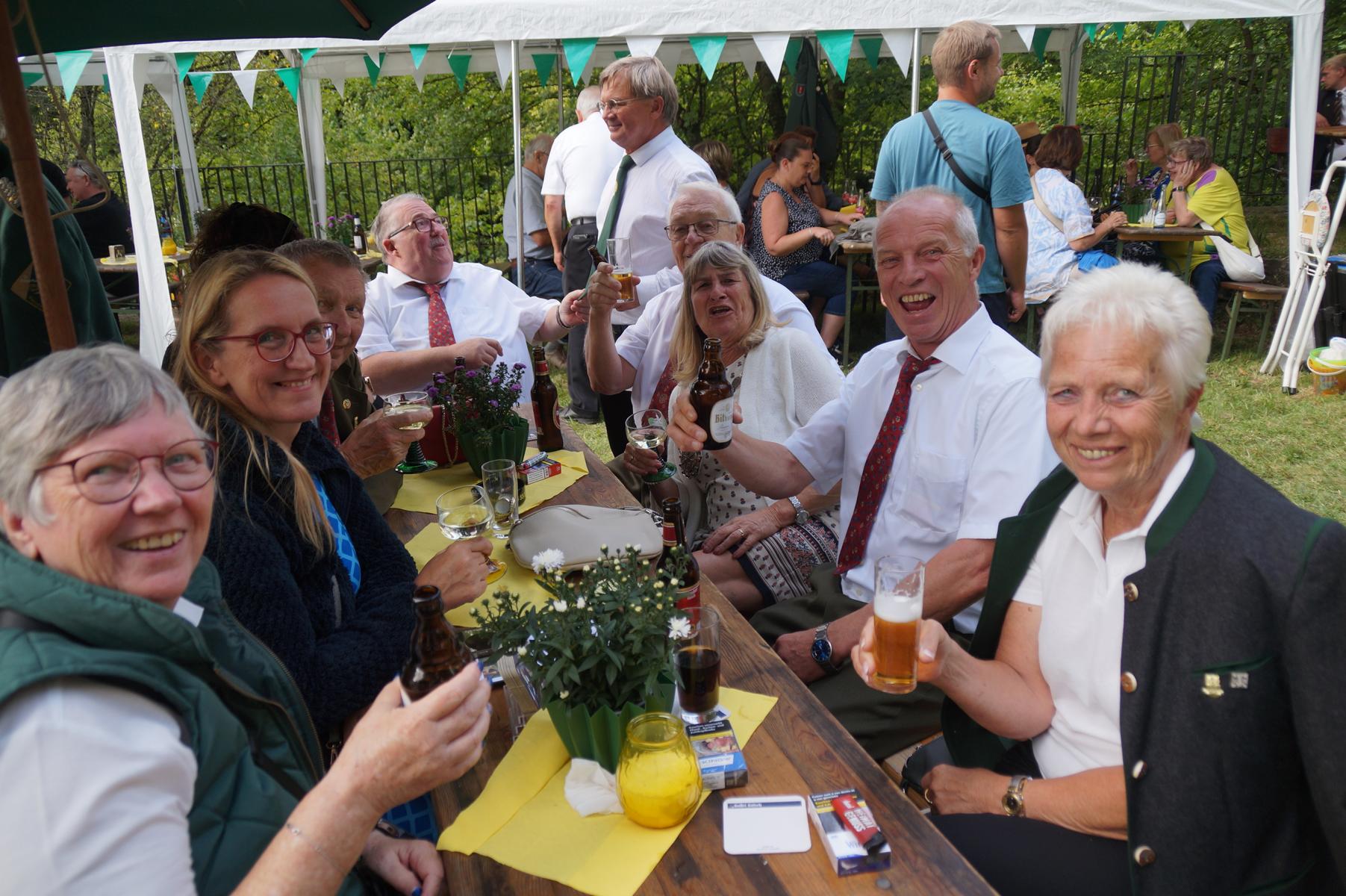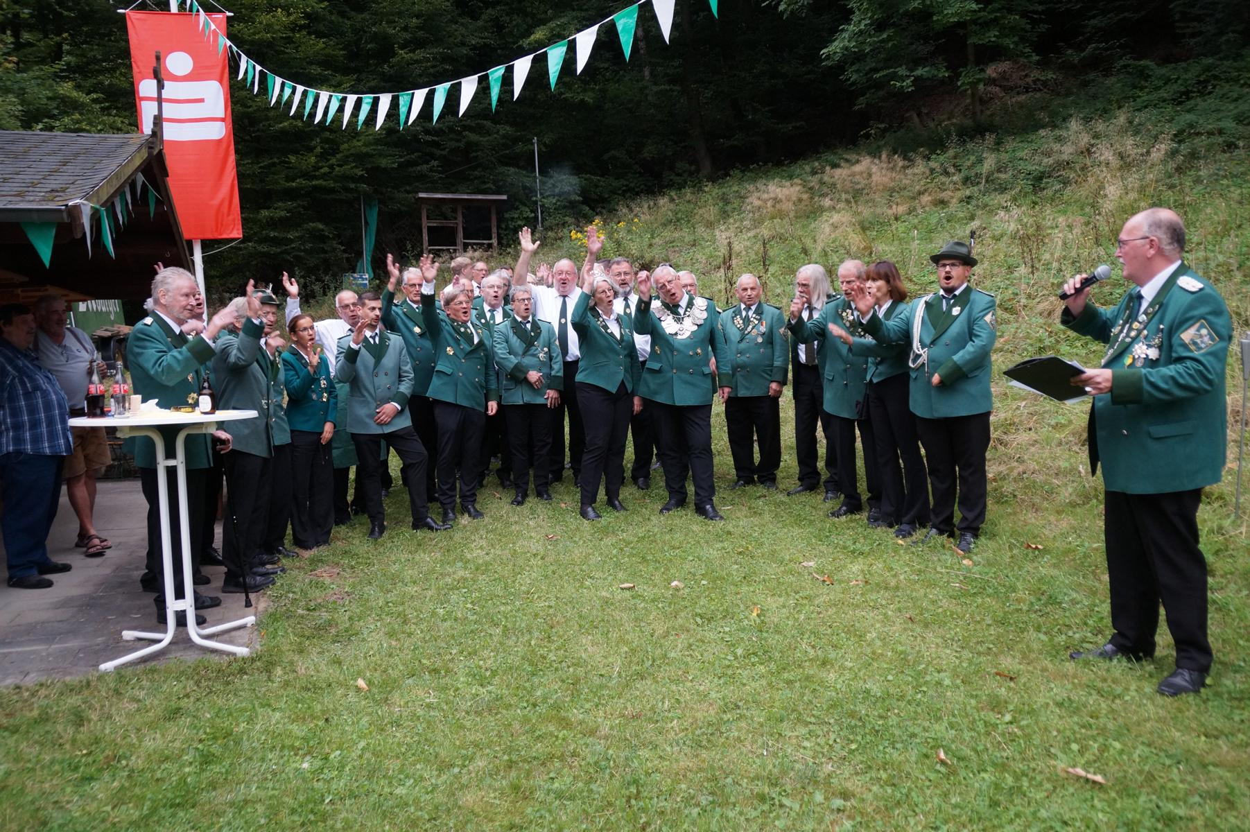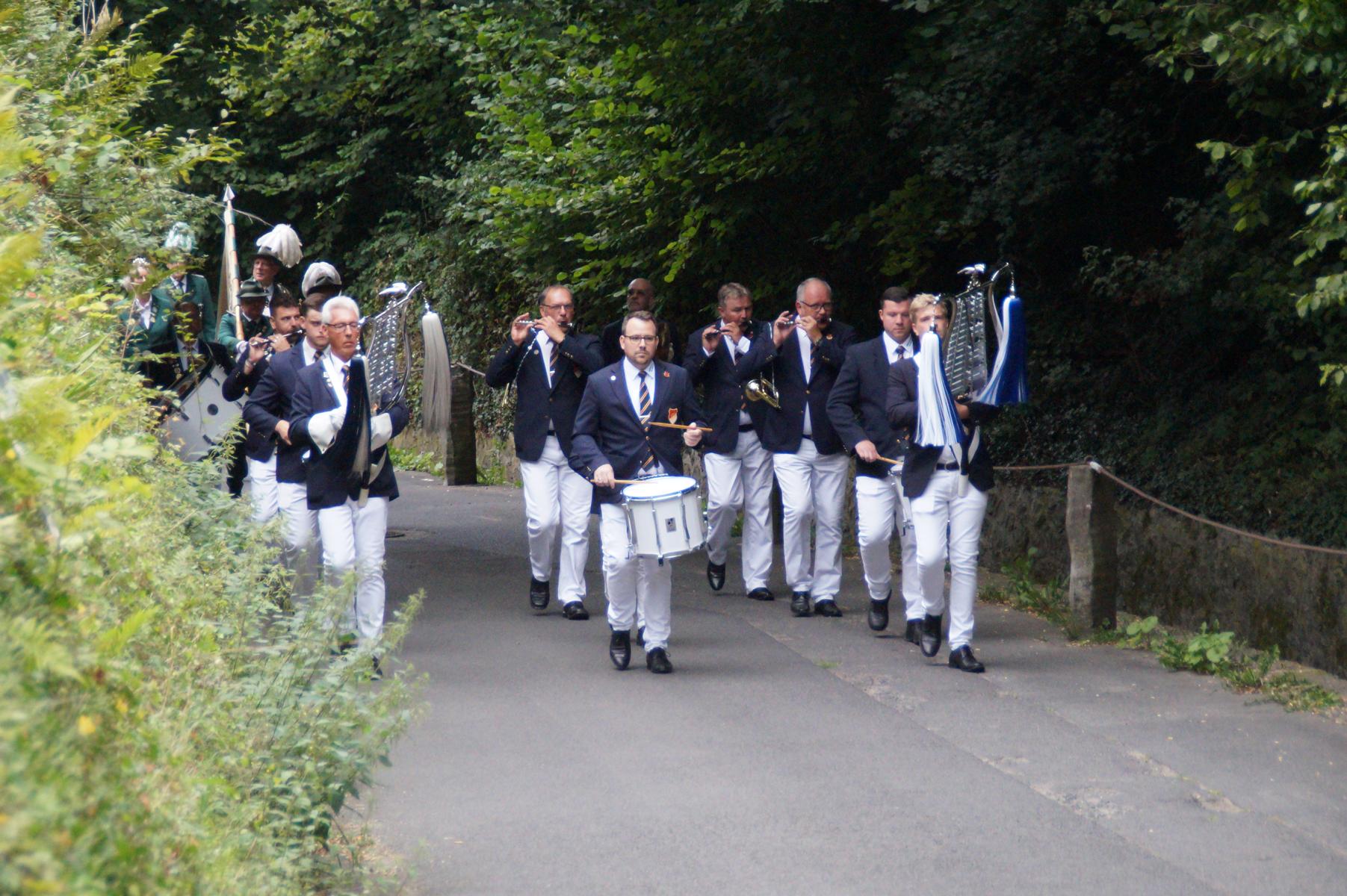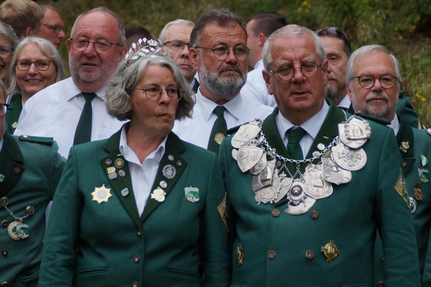 Nach der Zeremonie setzte sich der Festzug unter musikalischer Leitung des Spielmannzugs TV Eiche in Bewegung und führte die Gesellschaft zum Schützhaus im Löwenburgertal. Dort wurde der Tag mit einem geselligen Frühschoppen eröffnet.