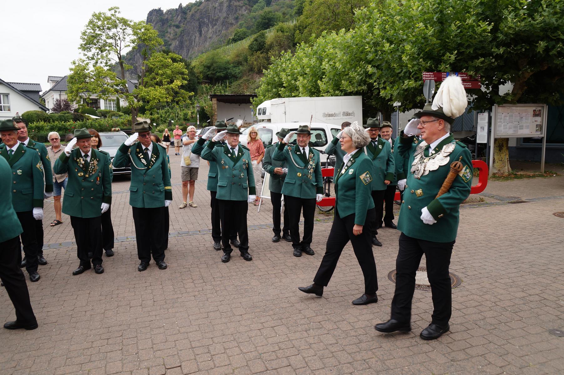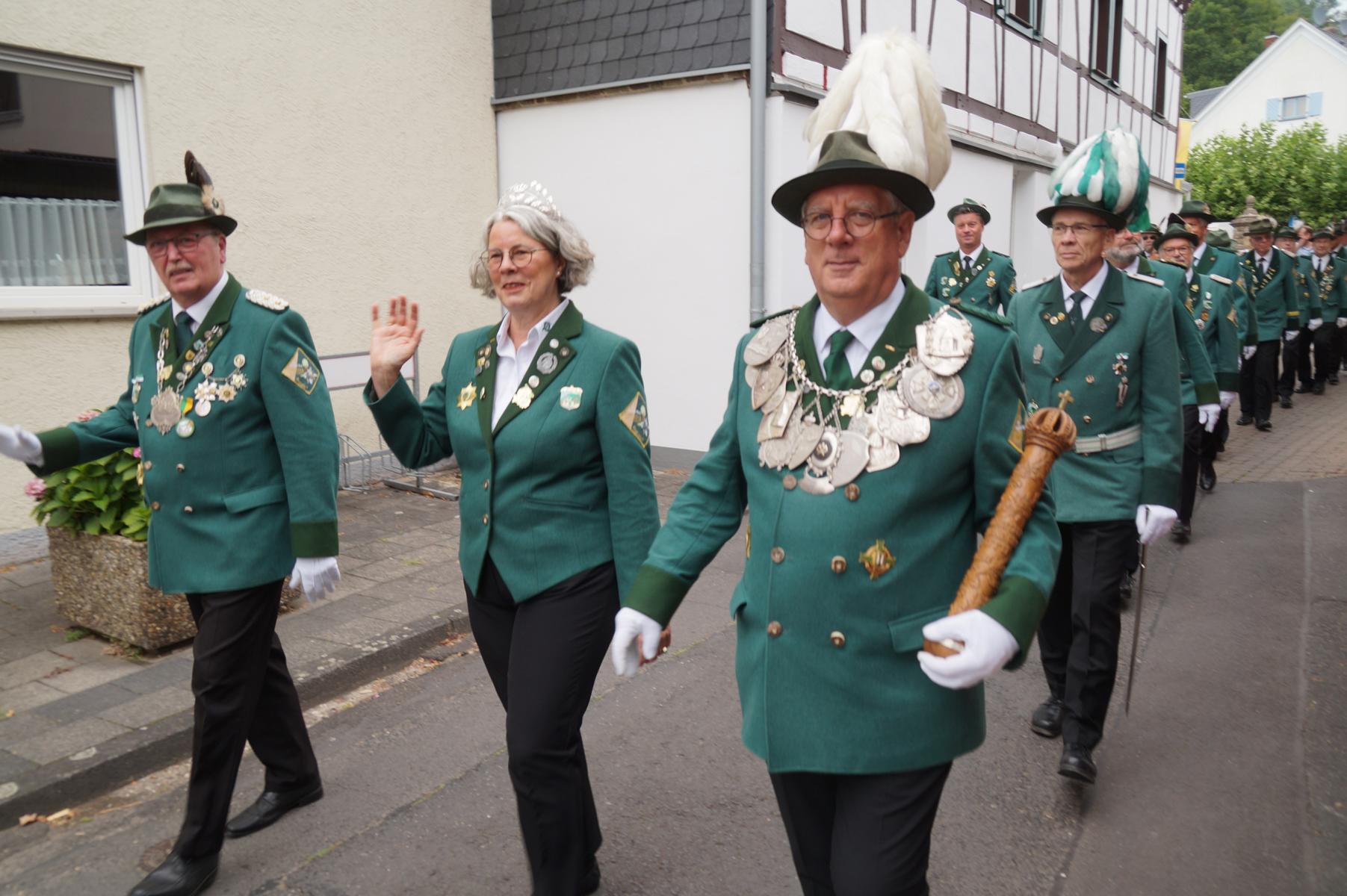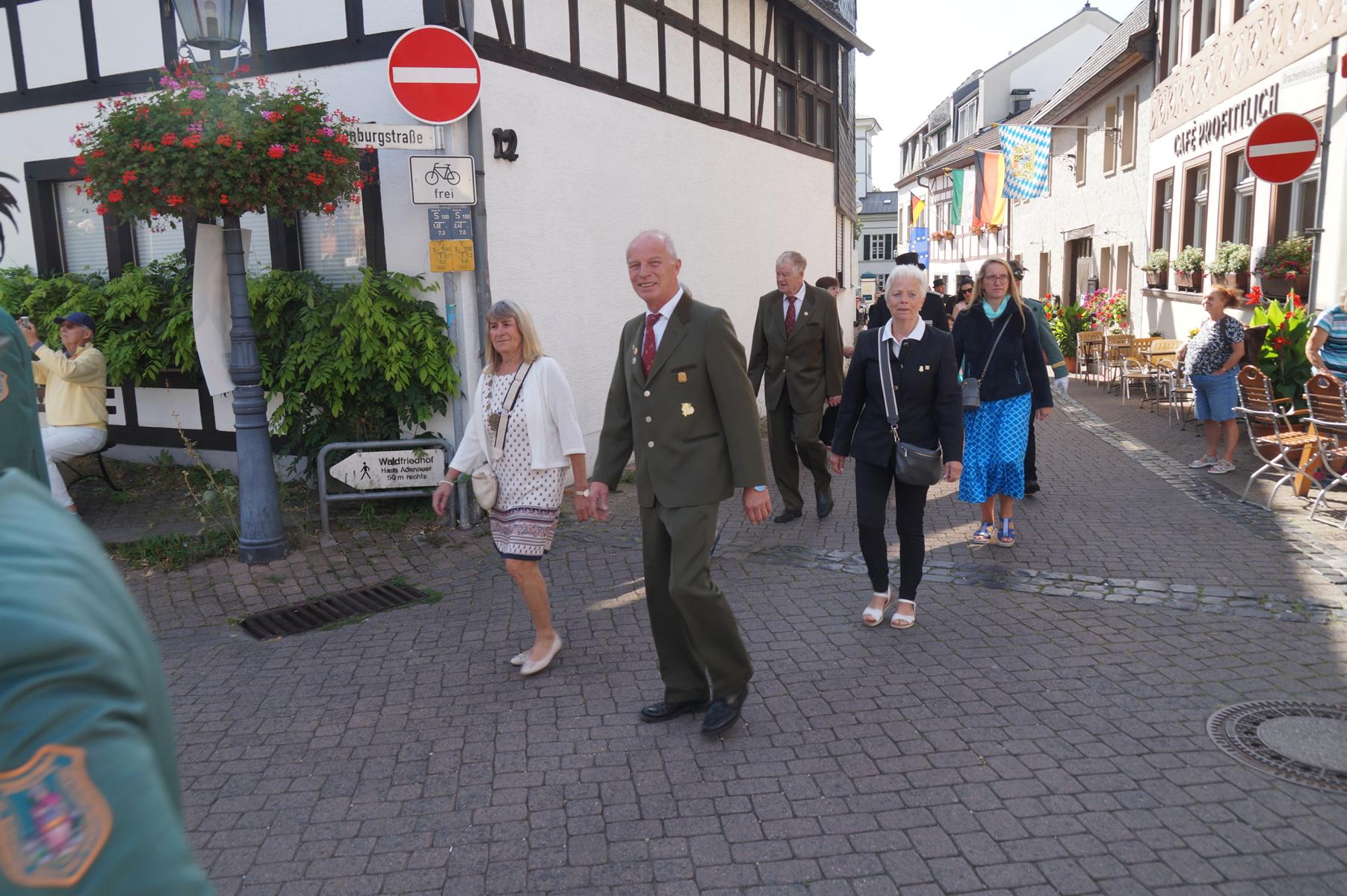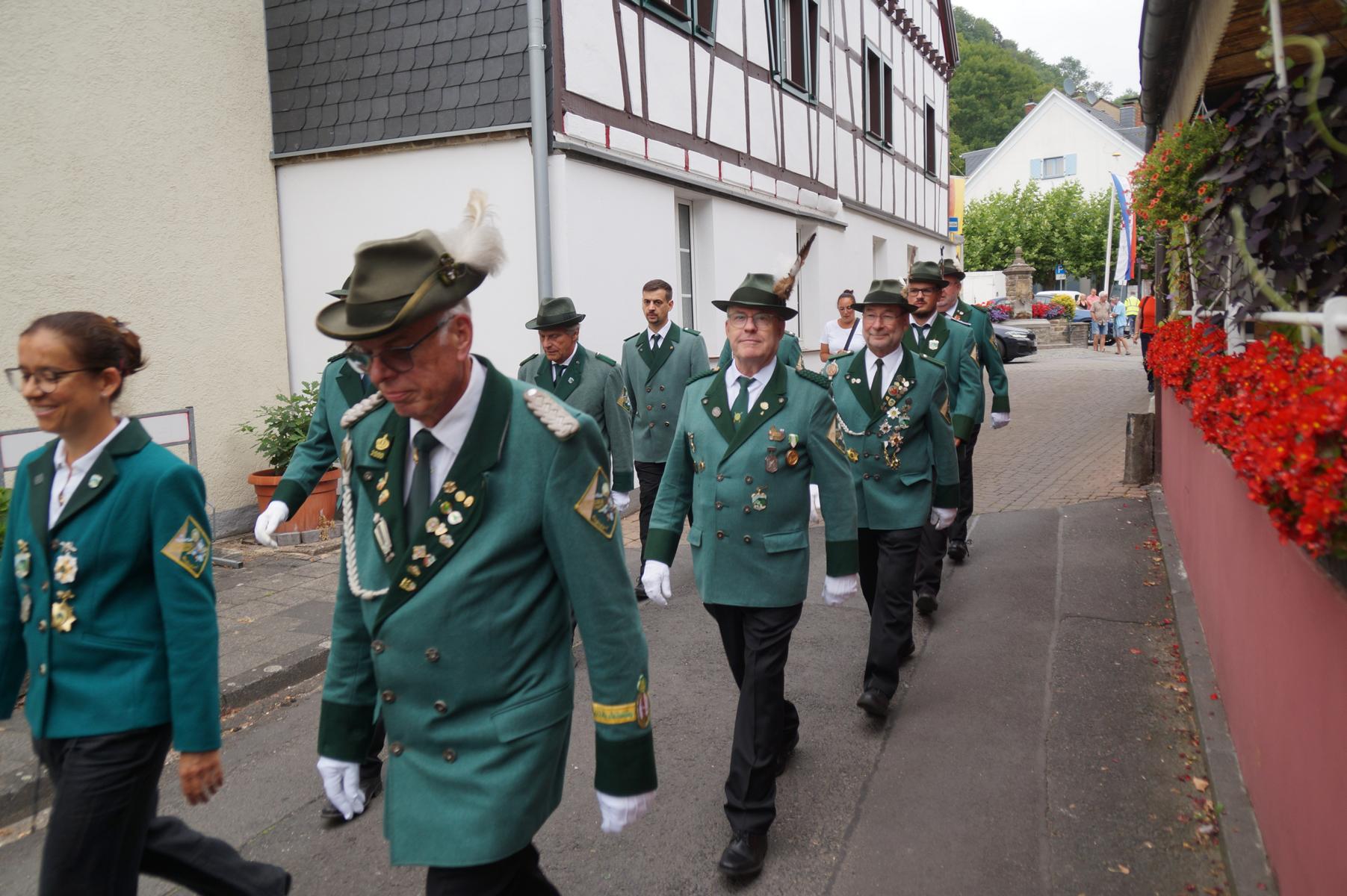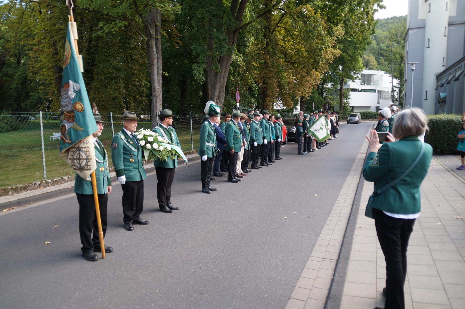 Nach der Zeremonie setzte sich der Festzug unter musikalischer Leitung des Spielmannzugs TV Eiche in Bewegung und führte die Gesellschaft zum Schützhaus im Löwenburgertal. Dort wurde der Tag mit einem geselligen Frühschoppen eröffnet.