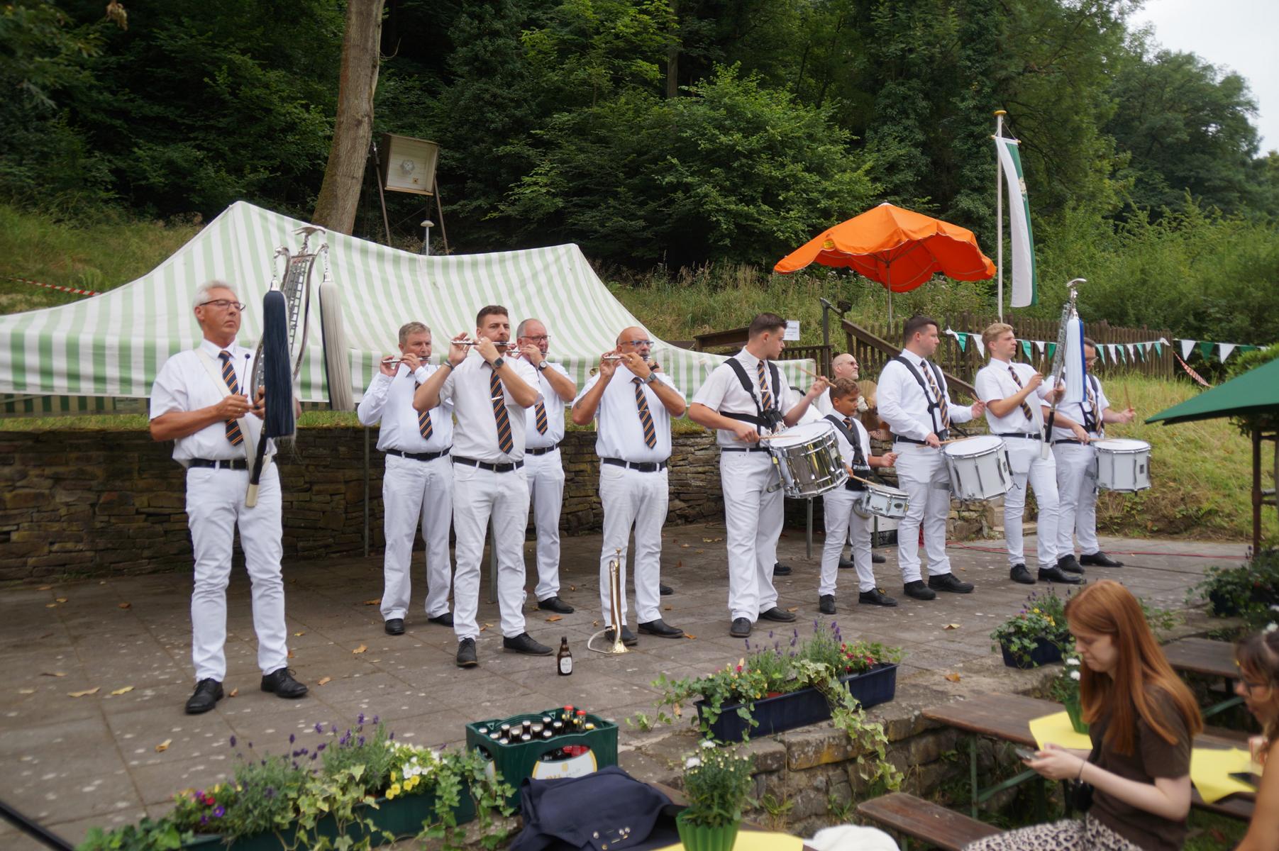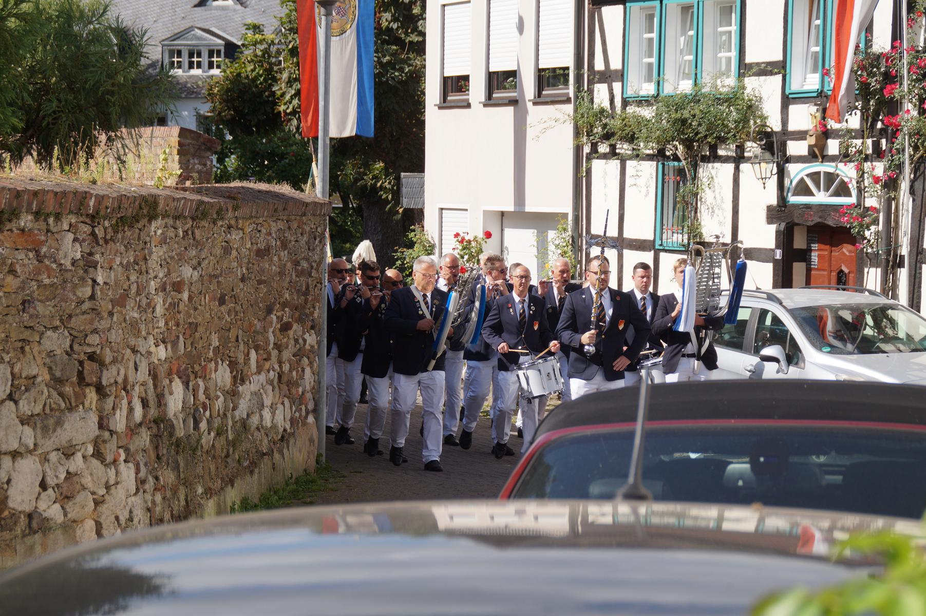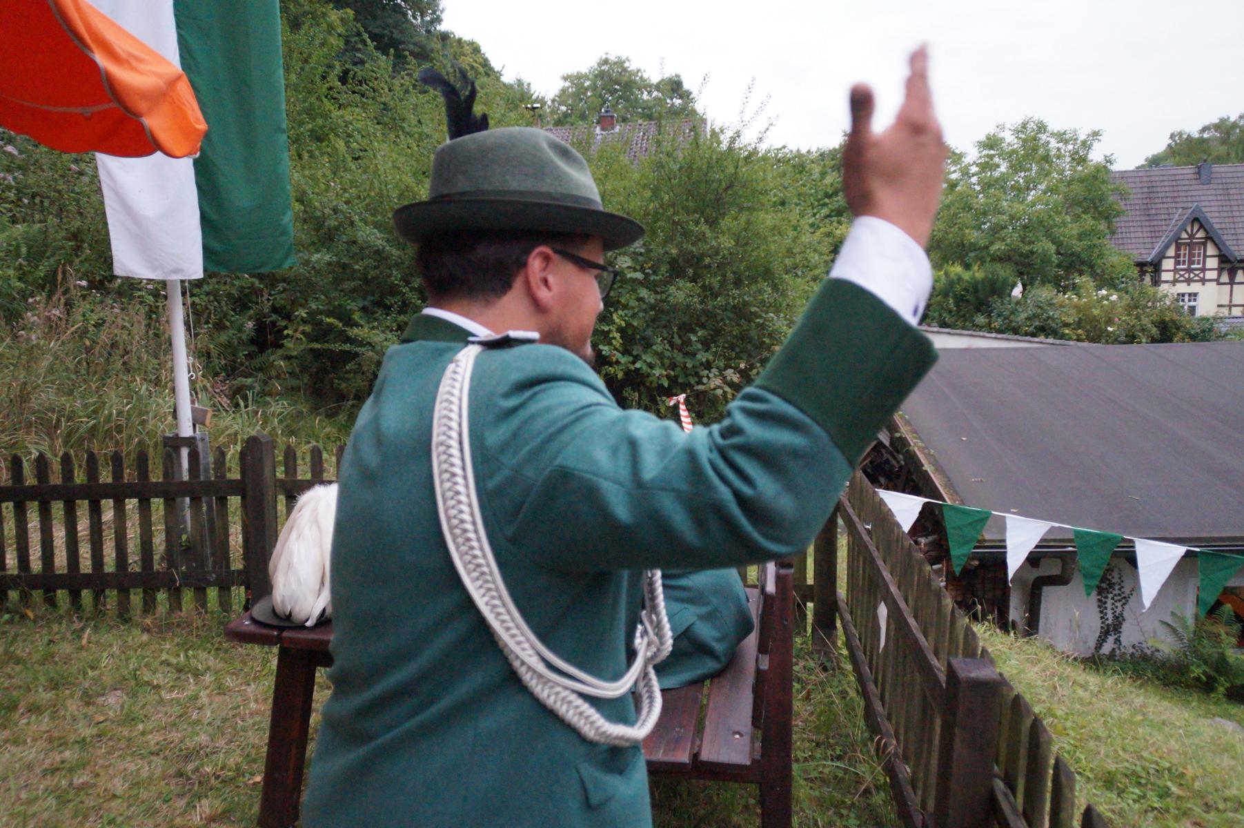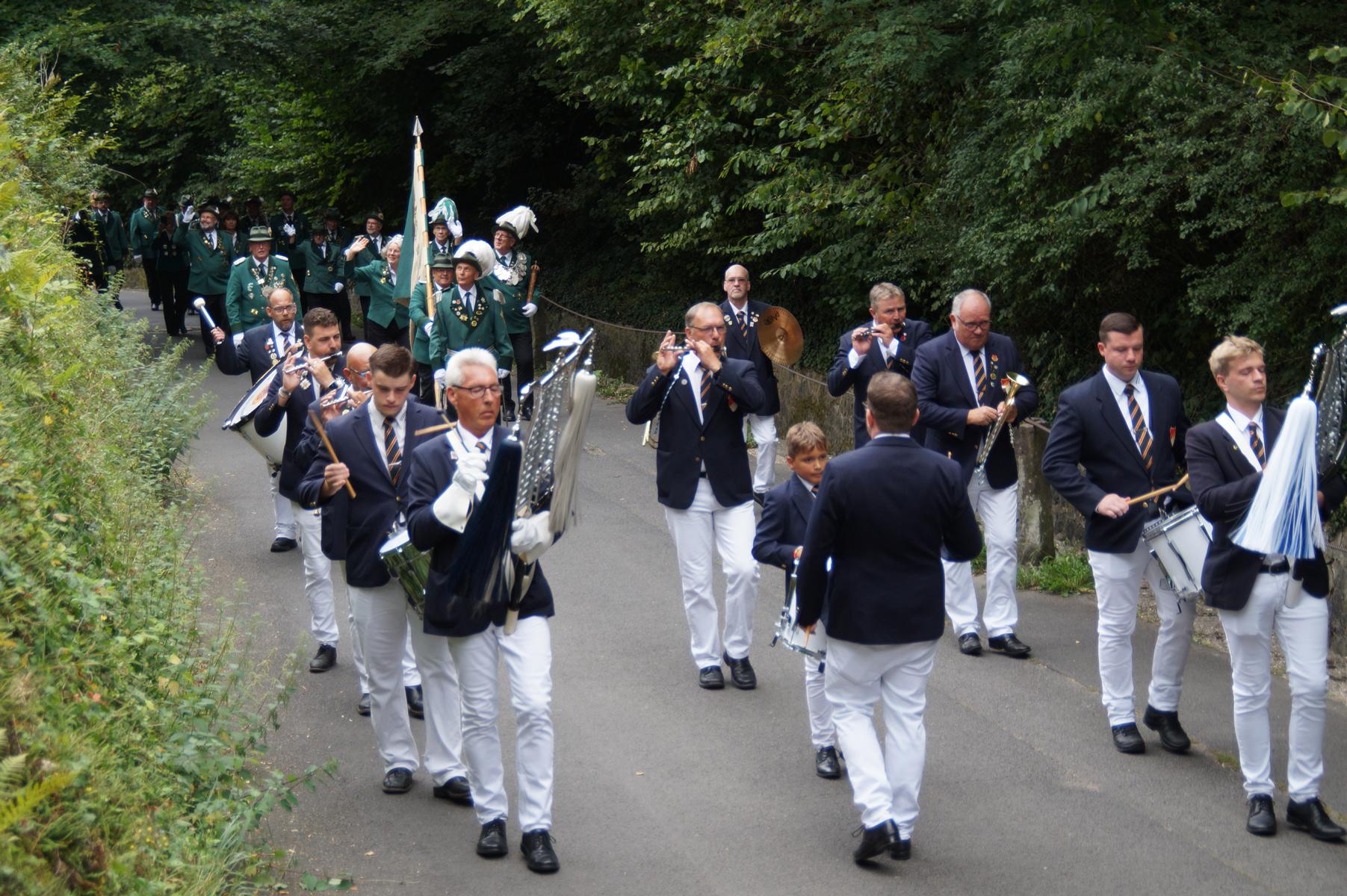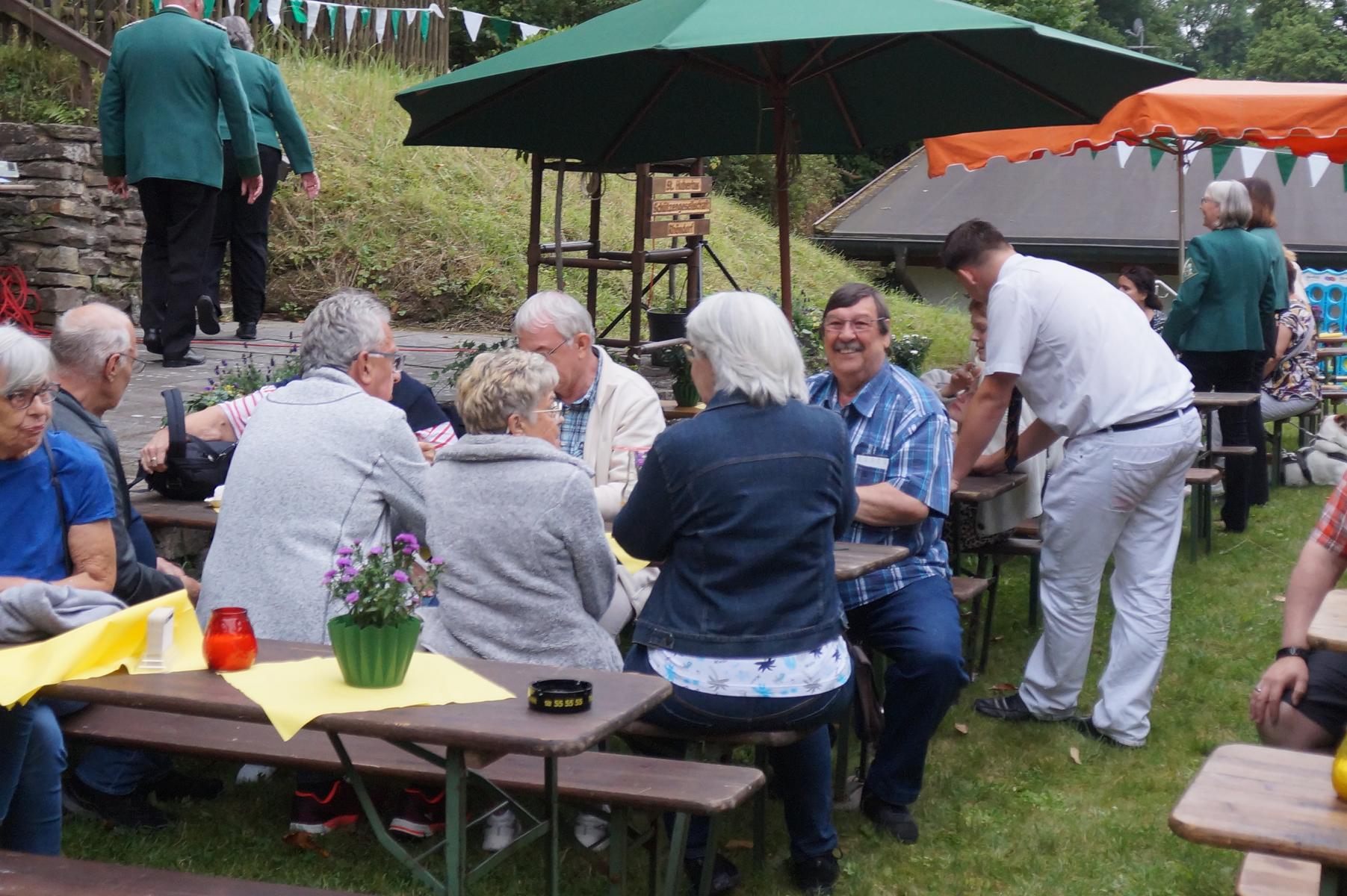 Nach der Zeremonie setzte sich der Festzug unter musikalischer Leitung des Spielmannzugs TV Eiche in Bewegung und führte die Gesellschaft zum Schützhaus im Löwenburgertal. Dort wurde der Tag mit einem geselligen Frühschoppen eröffnet.