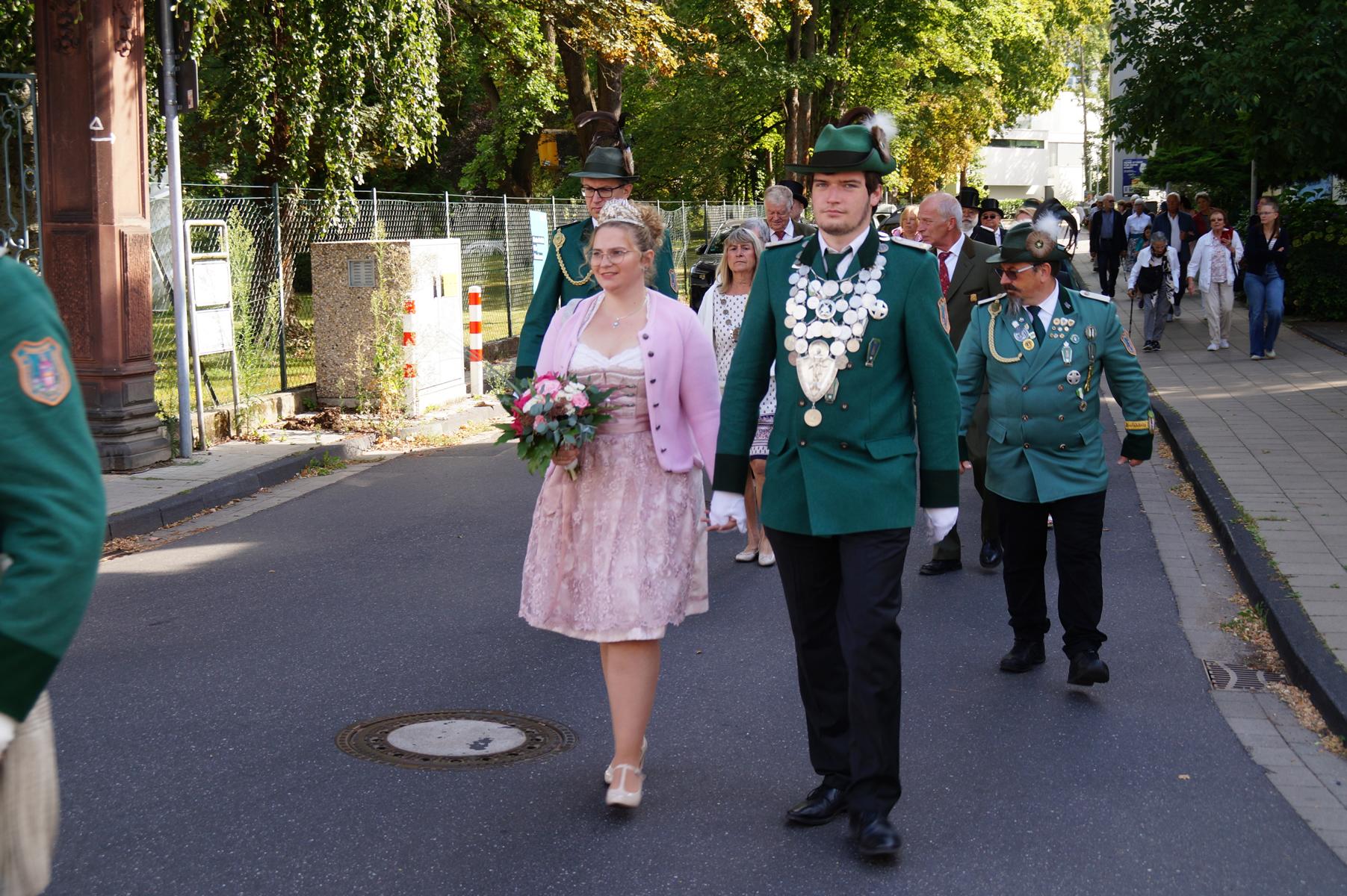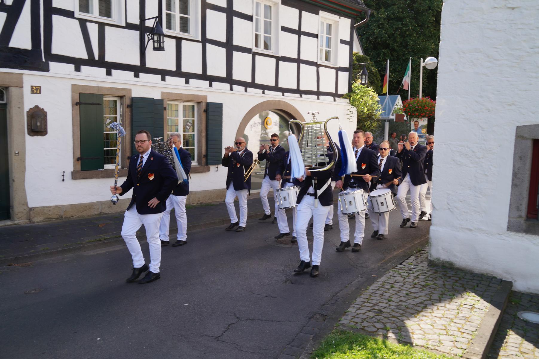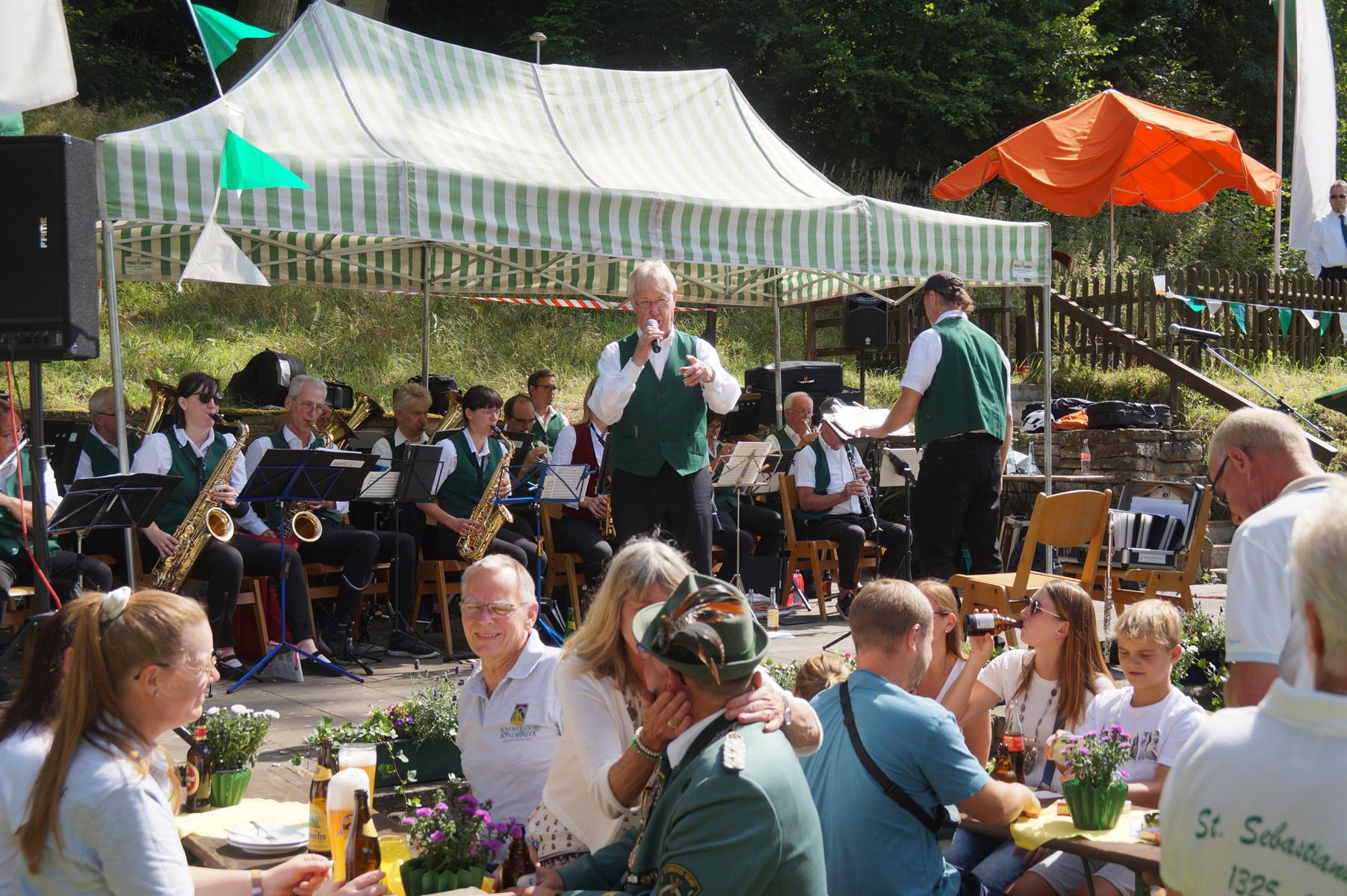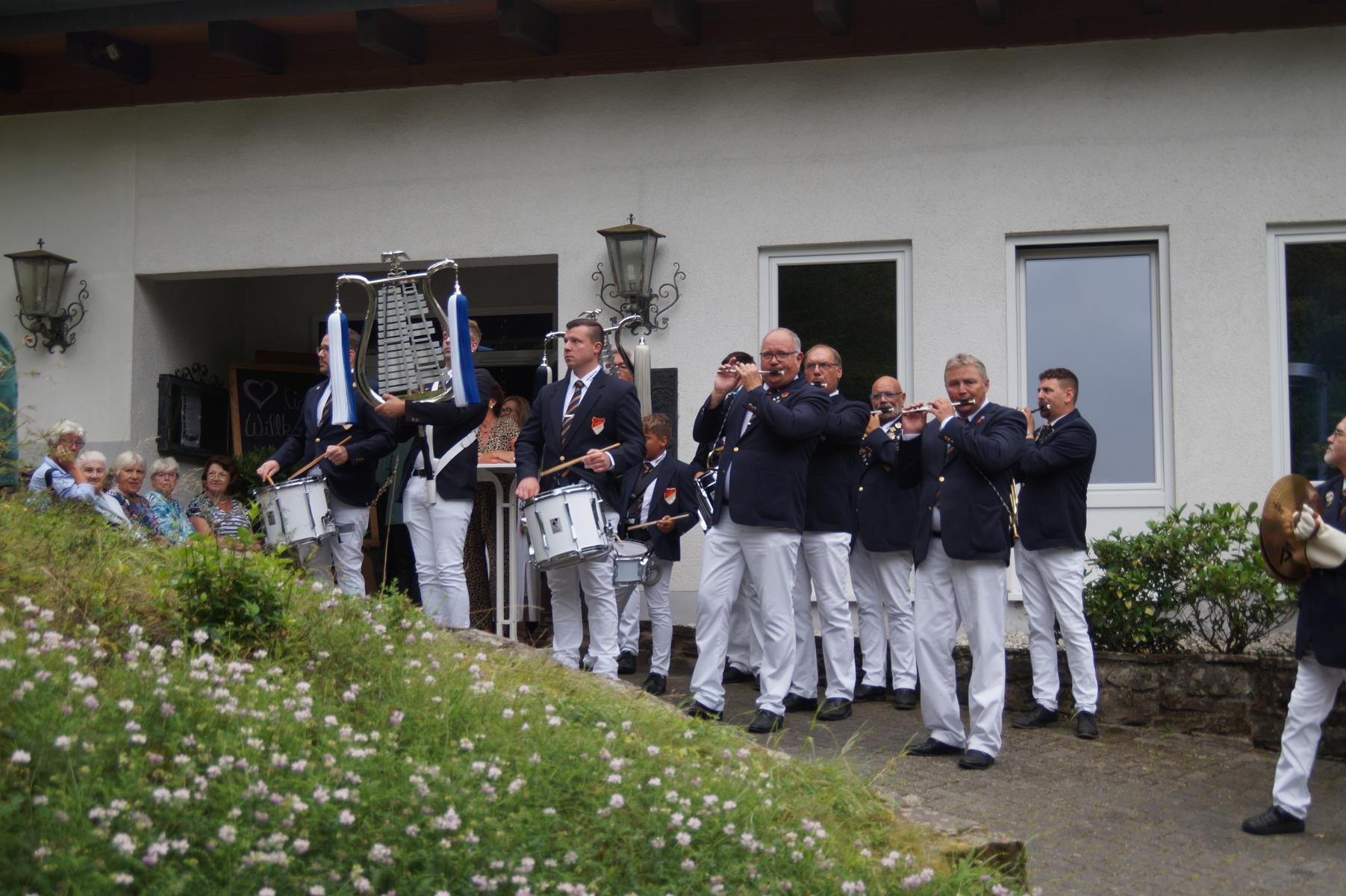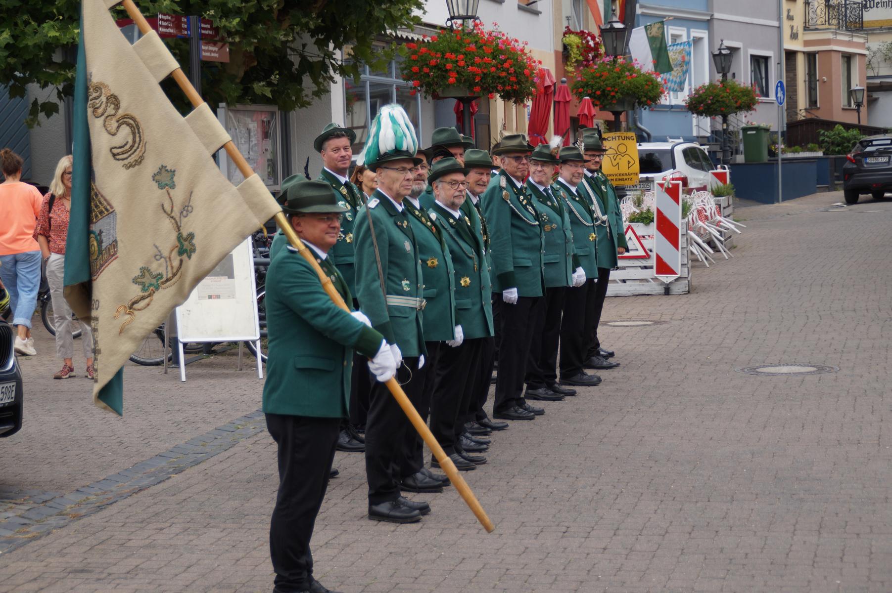Nach der Zeremonie setzte sich der Festzug unter musikalischer Leitung des Spielmannzugs TV Eiche in Bewegung und führte die Gesellschaft zum Schützhaus im Löwenburgertal. Dort wurde der Tag mit einem geselligen Frühschoppen eröffnet.