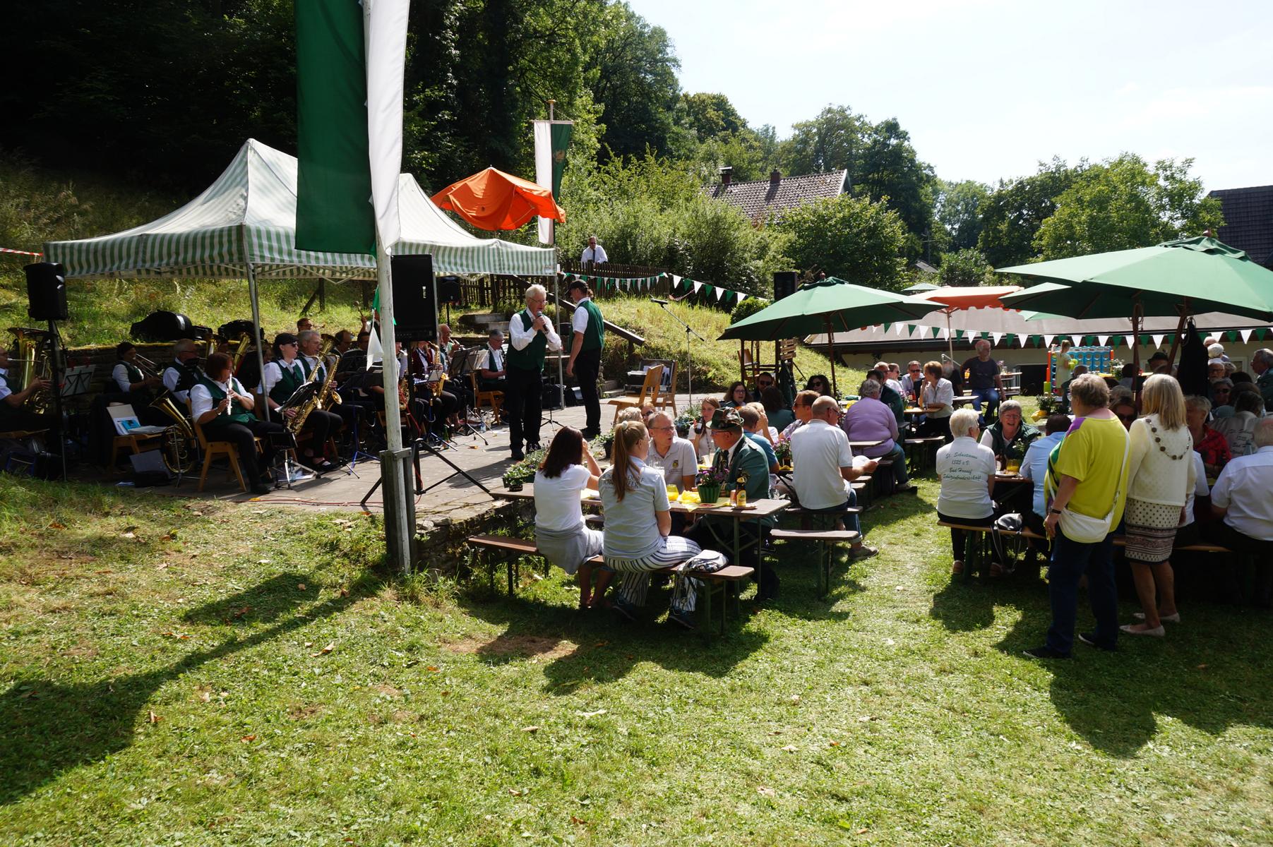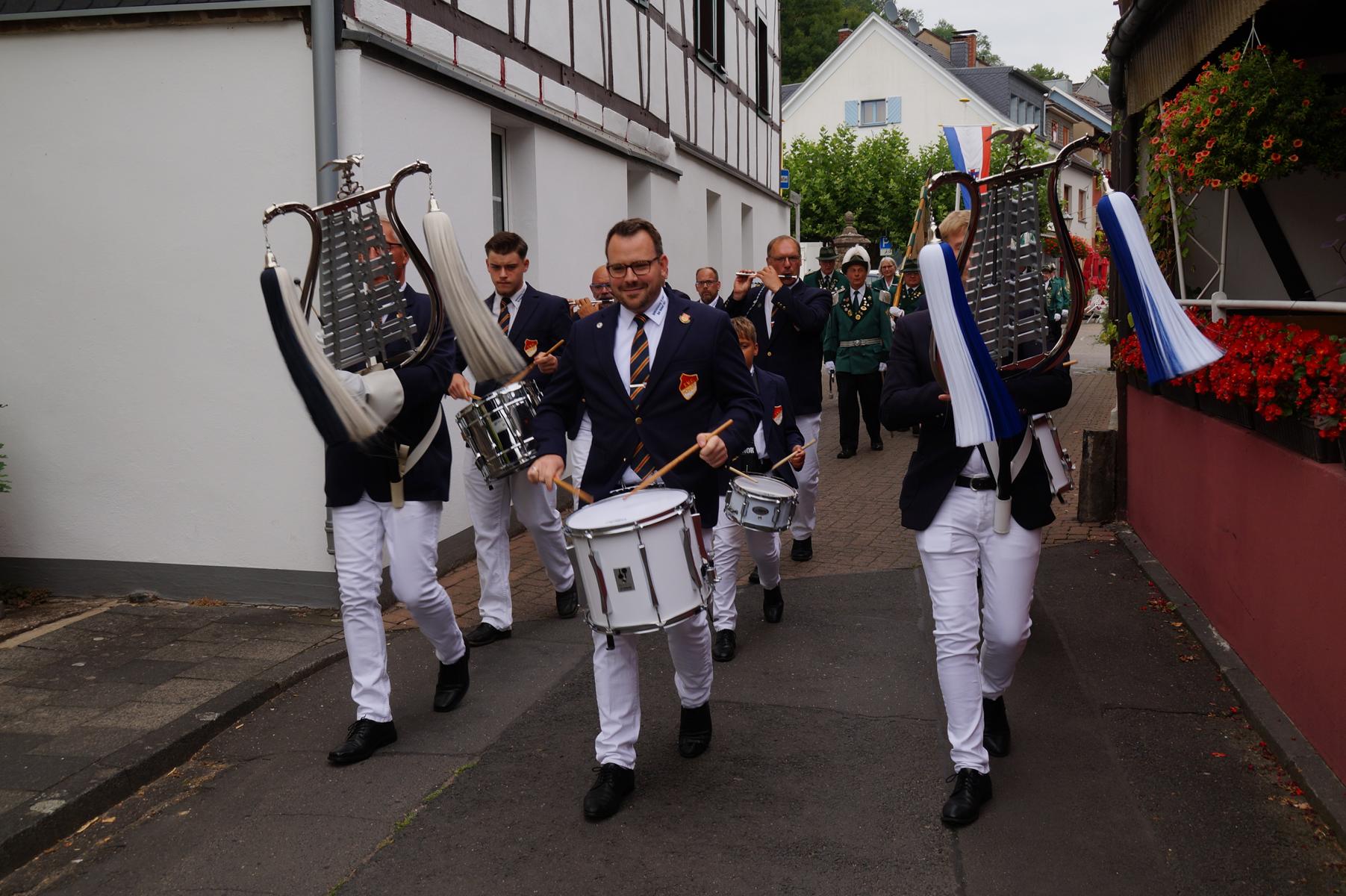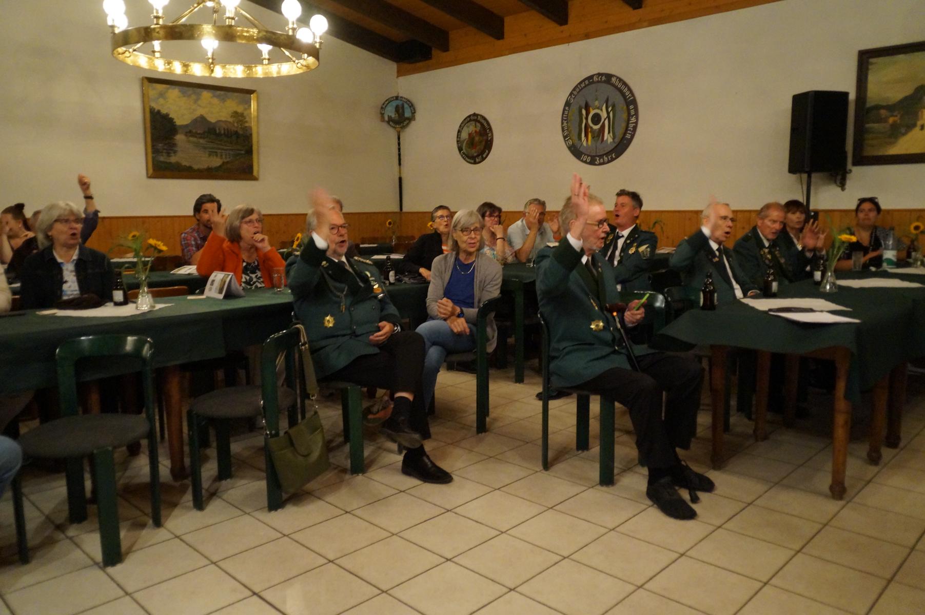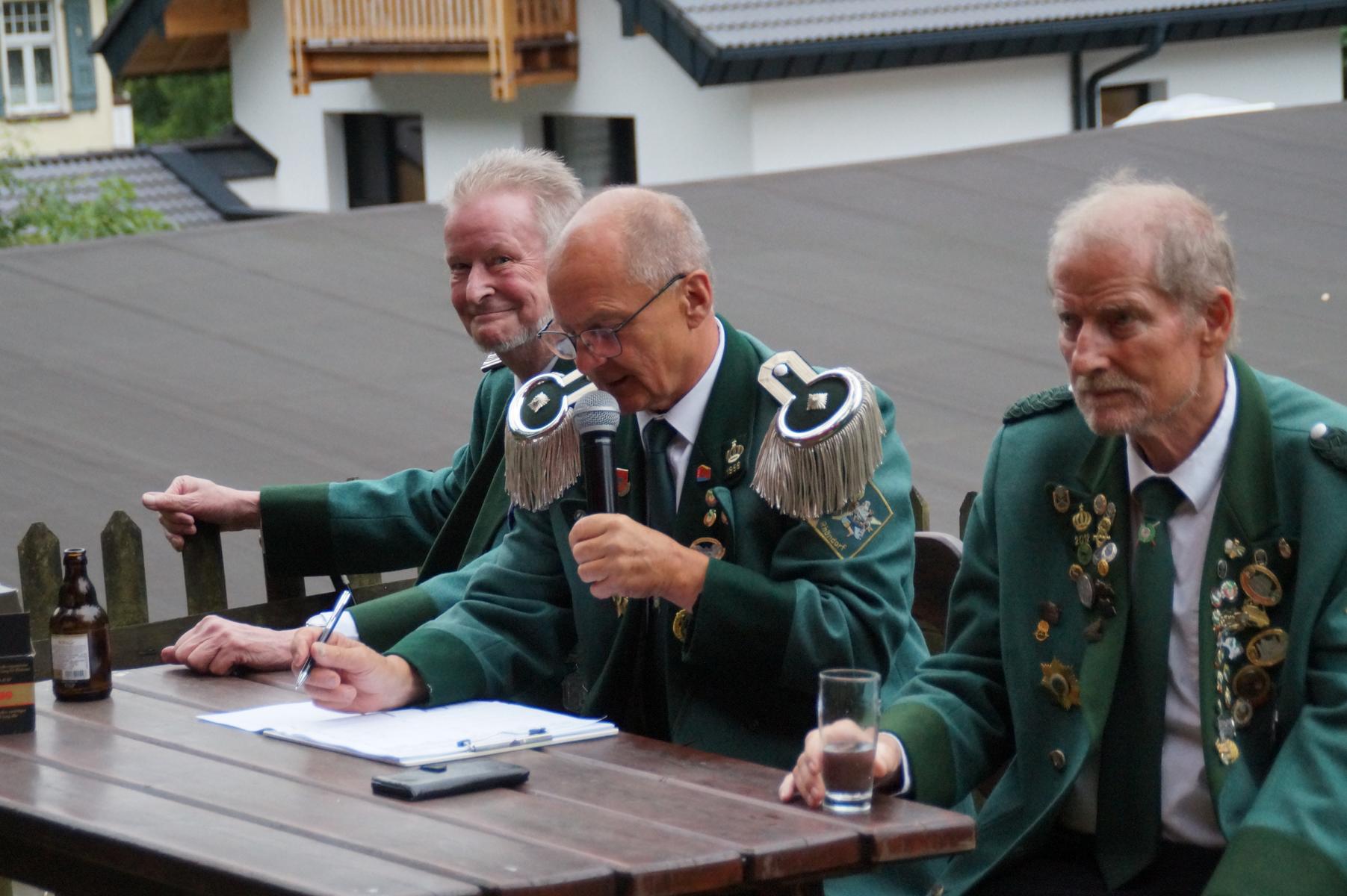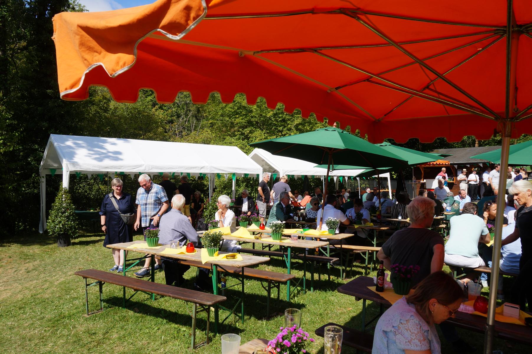 Nach der Zeremonie setzte sich der Festzug unter musikalischer Leitung des Spielmannzugs TV Eiche in Bewegung und führte die Gesellschaft zum Schützhaus im Löwenburgertal. Dort wurde der Tag mit einem geselligen Frühschoppen eröffnet.