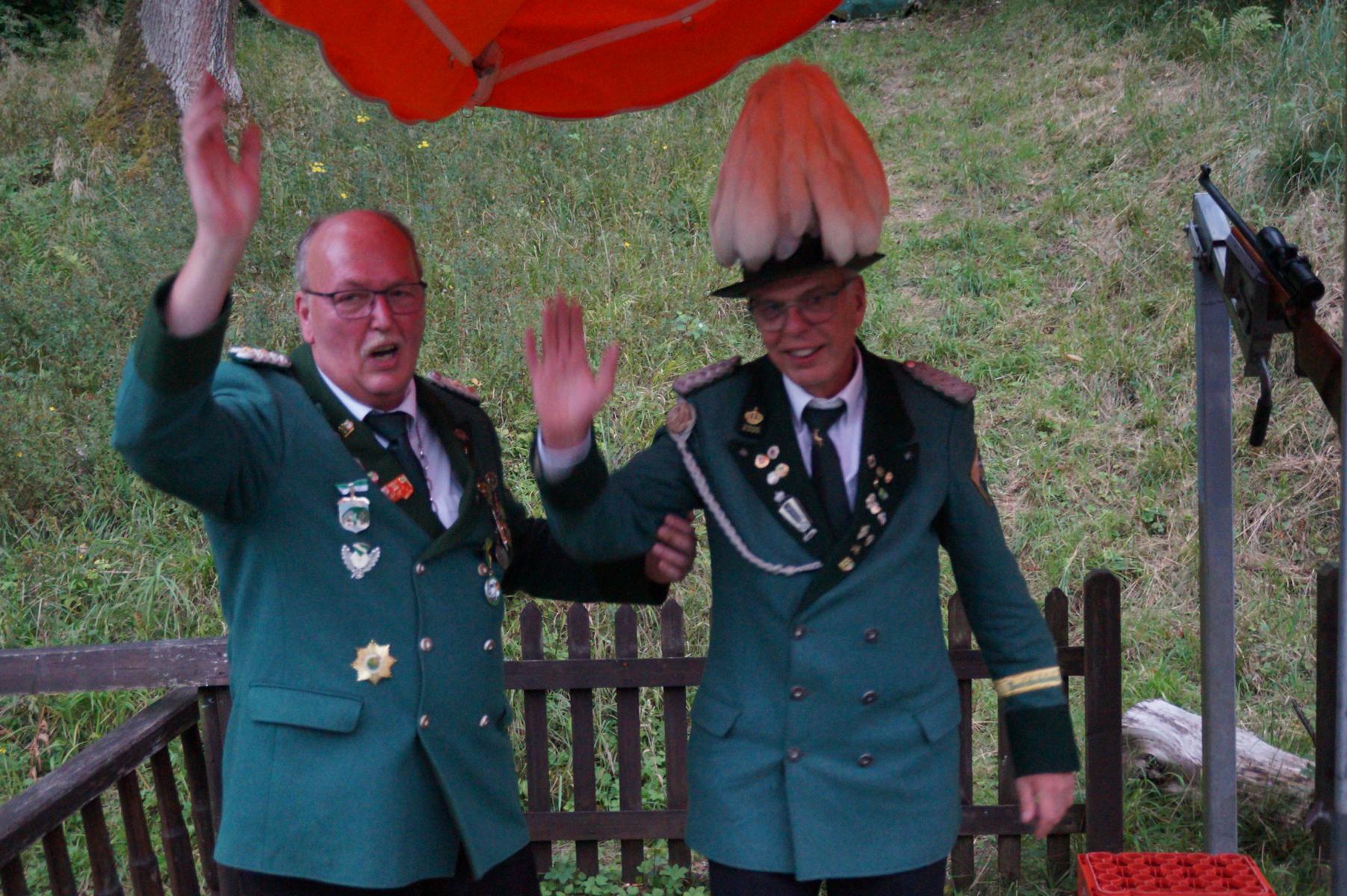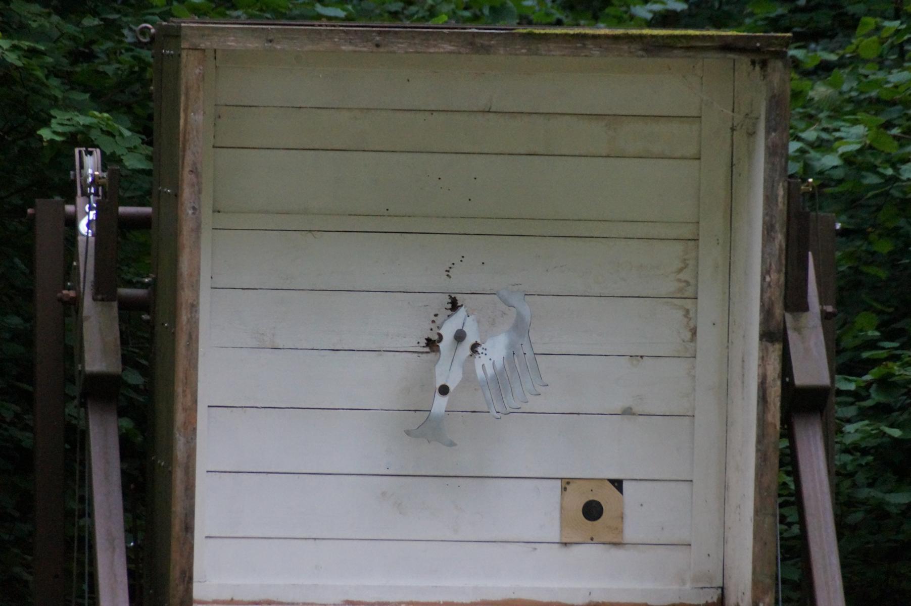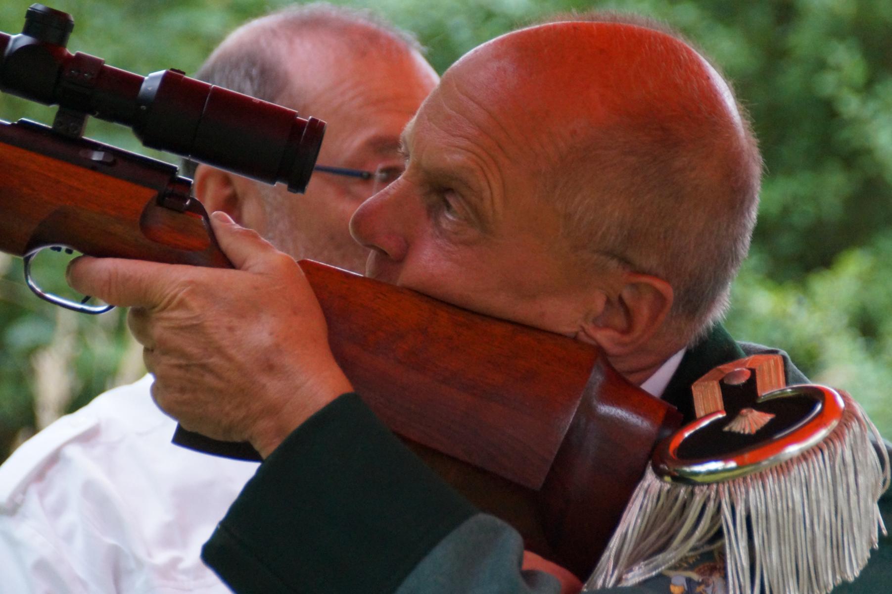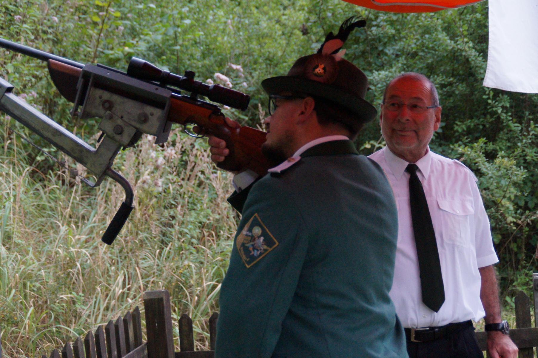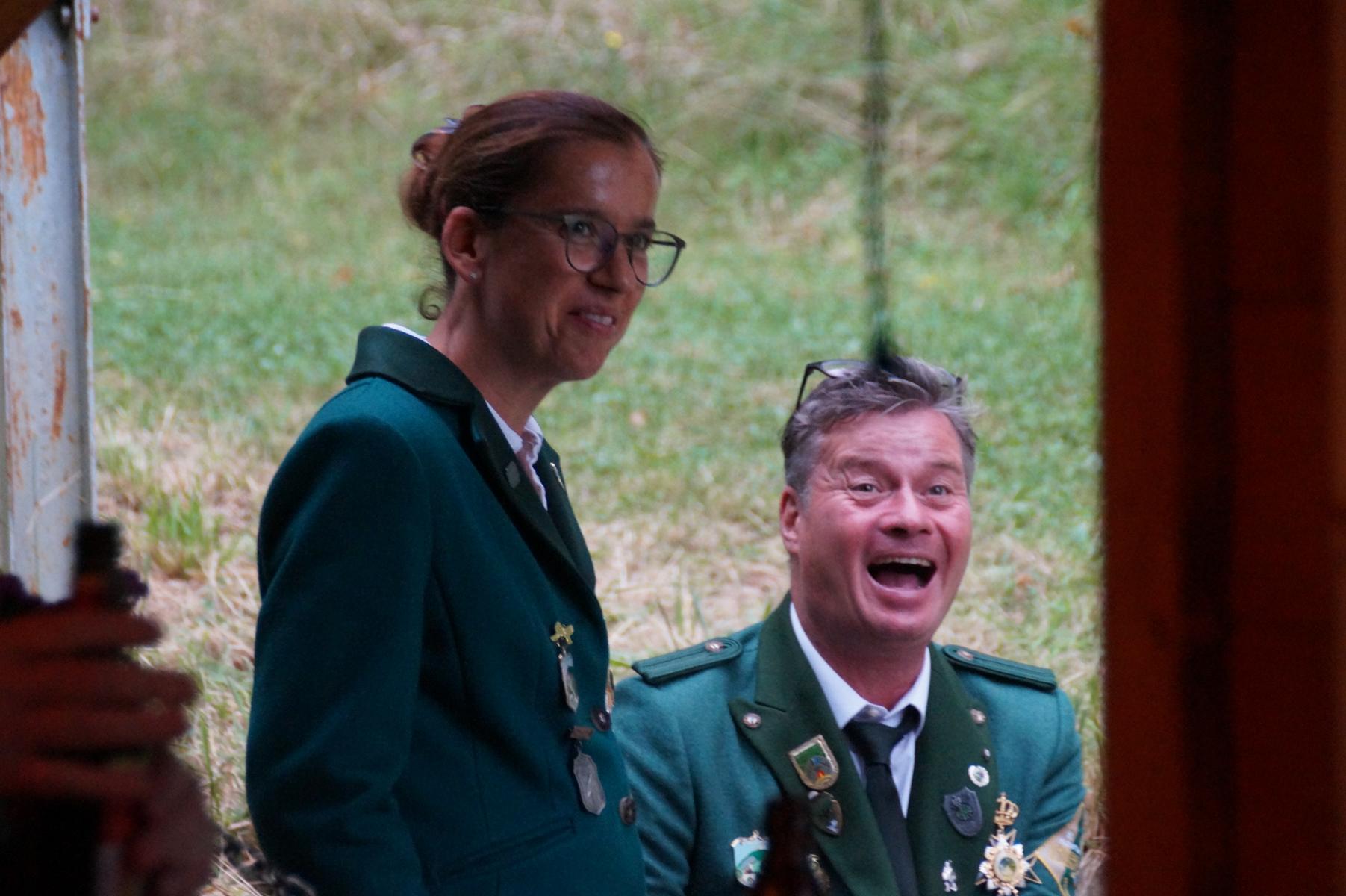 Für den finalen Teil des Wettbewerbs, das Schießen auf den Rumpf, traten nur noch zwei Schützen an: Niko Grebenar und Jürgen Kuhn. In einem intensiven Duell wechselten sich die beiden im Rundlauf ab. Jeder Treffer ließ den Rumpf weiter splittern, begleitet von gespannter Aufmerksamkeit und Raunen aus dem Publikum.