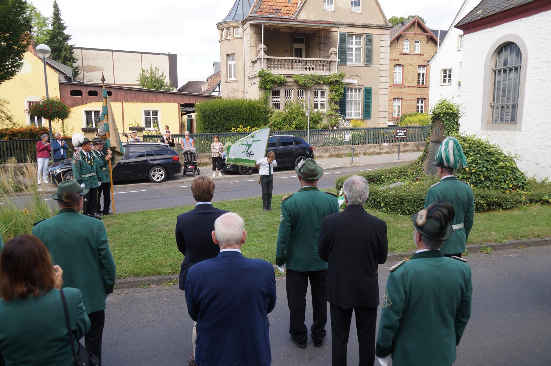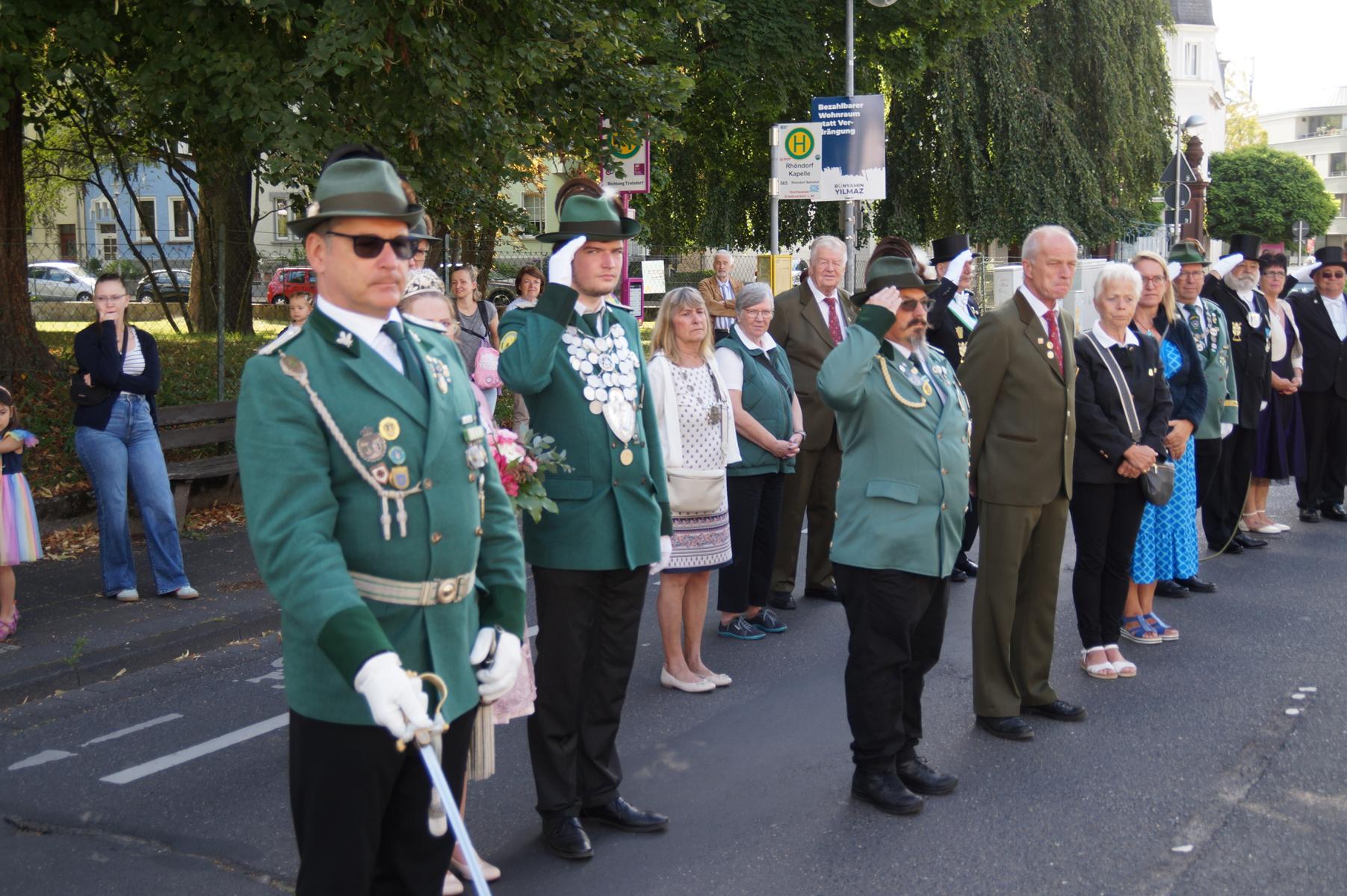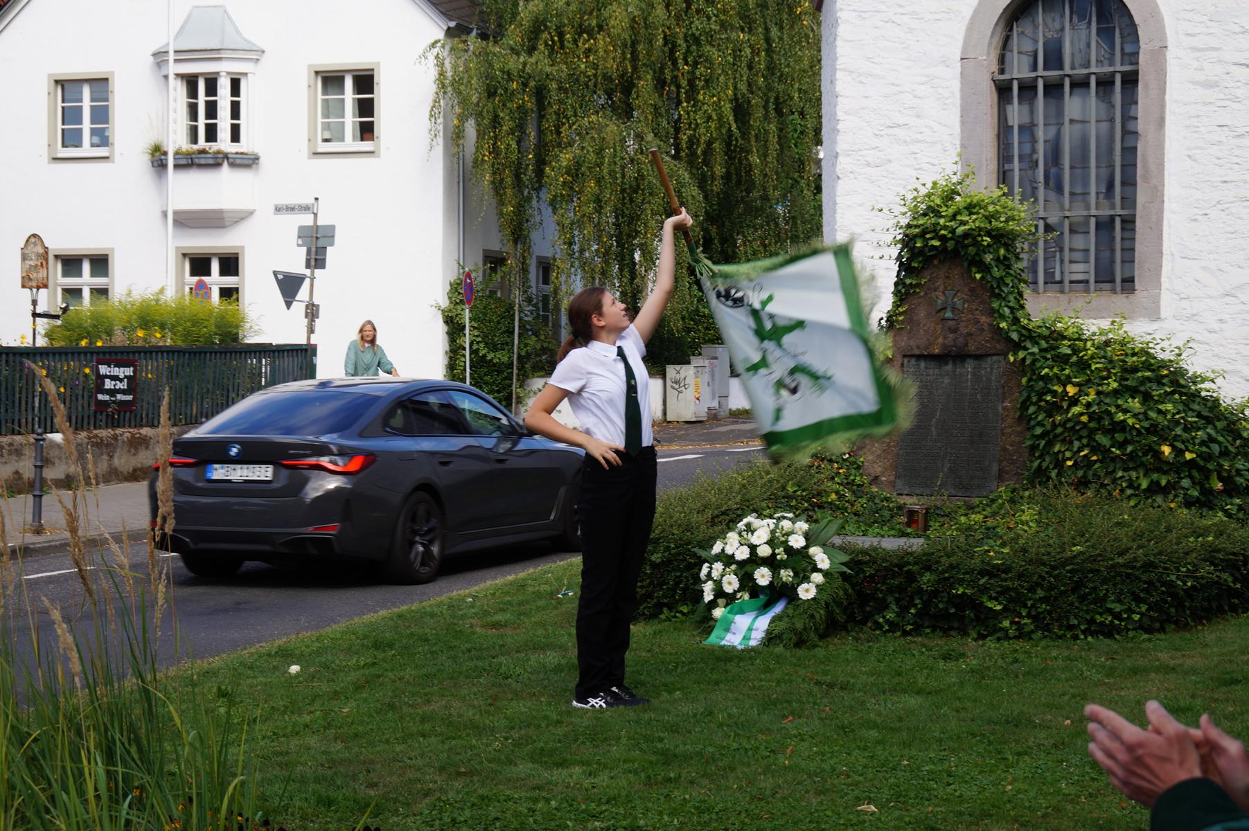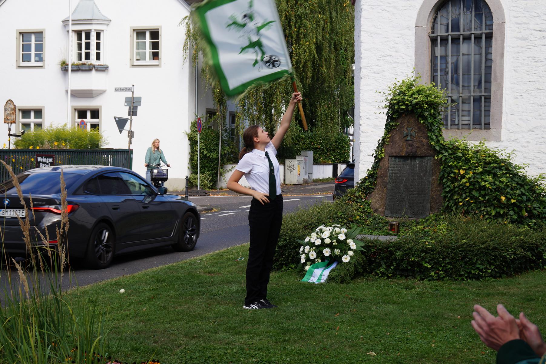 Der zweite Festtag des Rhöndorfer Schützen- und Bürgerfests begann feierlich mit einem Gottesdienst in der Kirche Mariä Heimsuchung. Im Anschluss versammelten sich die Teilnehmer zur Gefallenenehrung an der Marienkapelle, begleitet von jungen Fahnenschwingern aus der Region, die dem Moment einen würdigen Rahmen verliehen.
