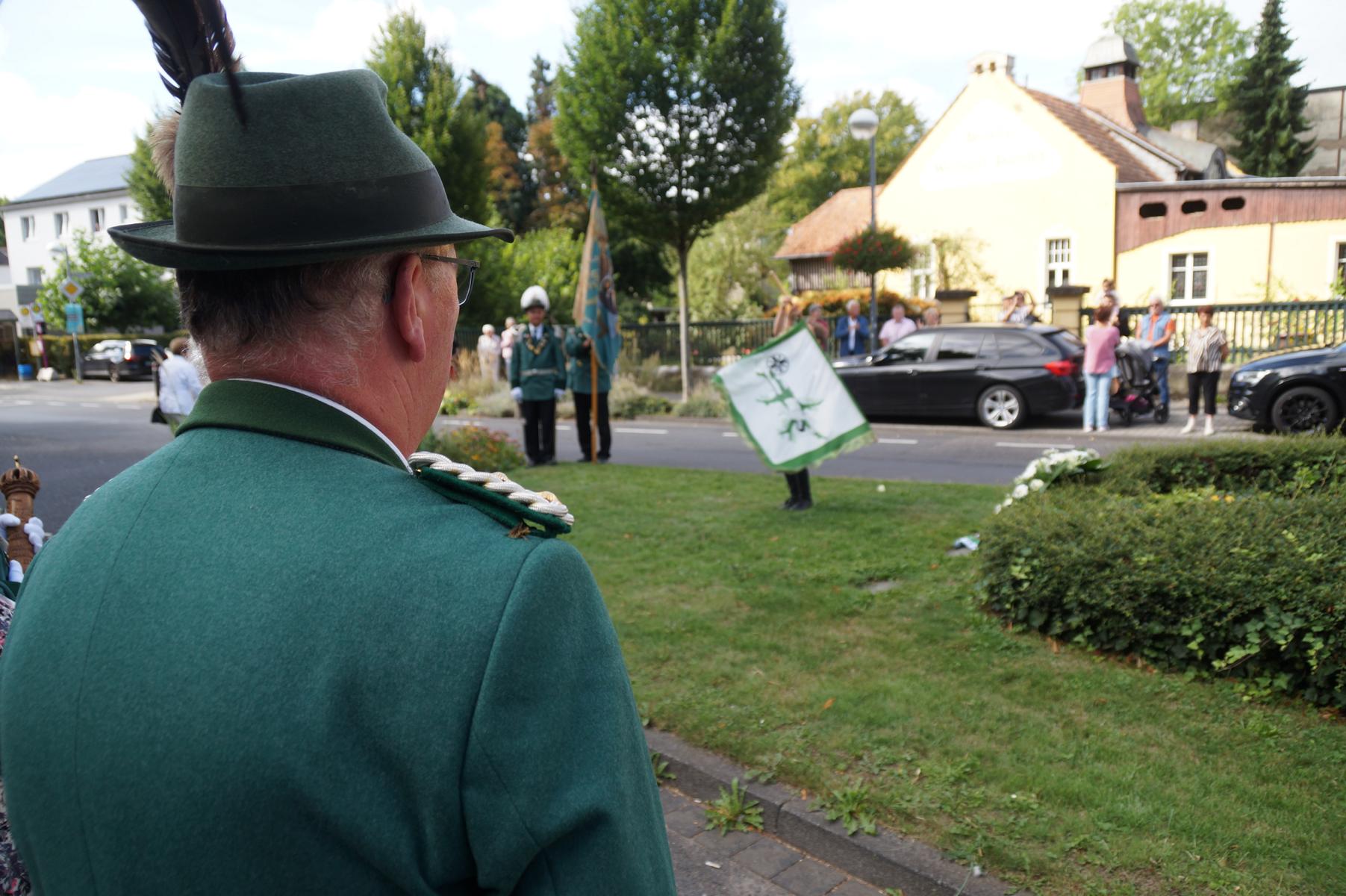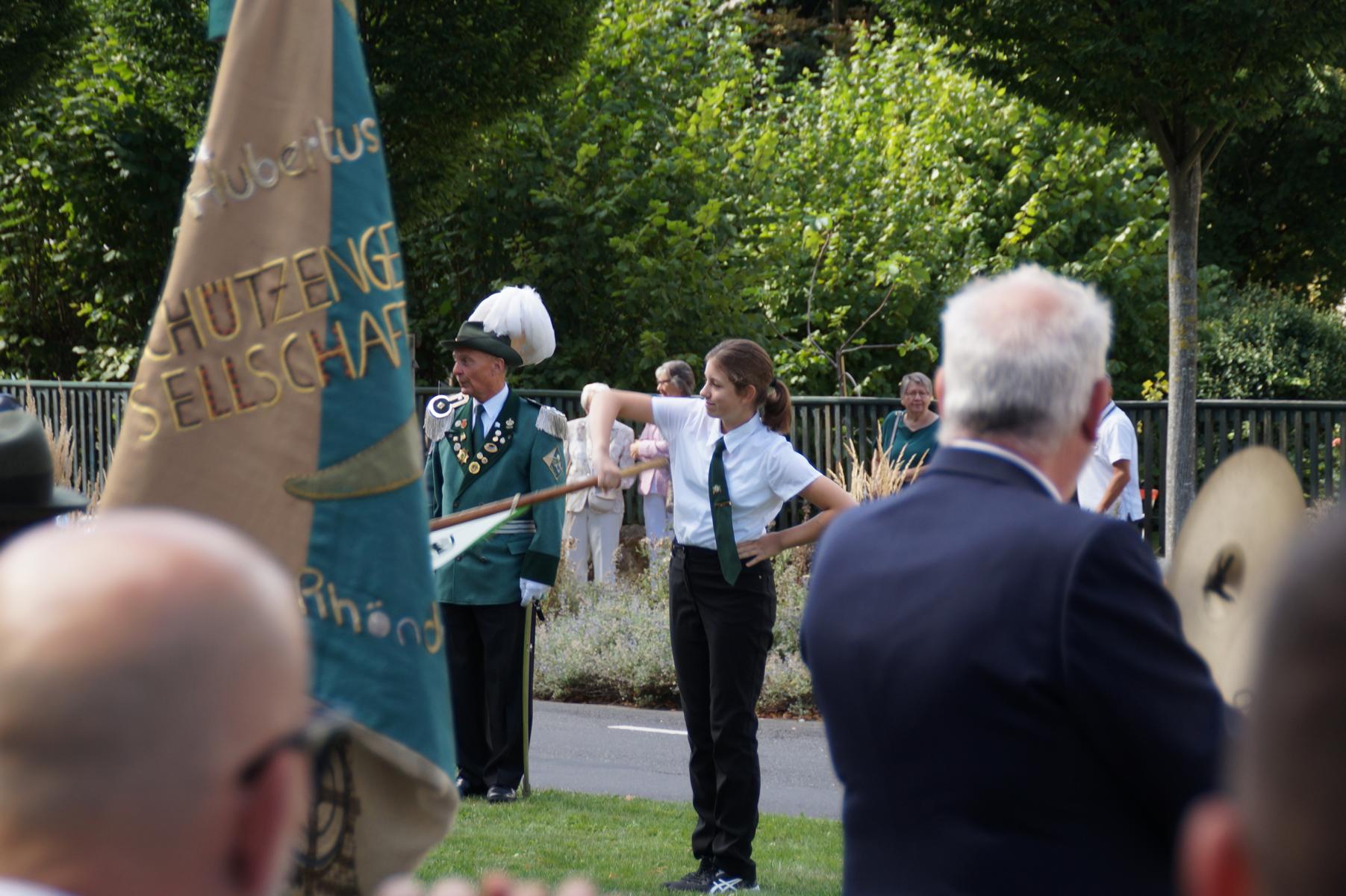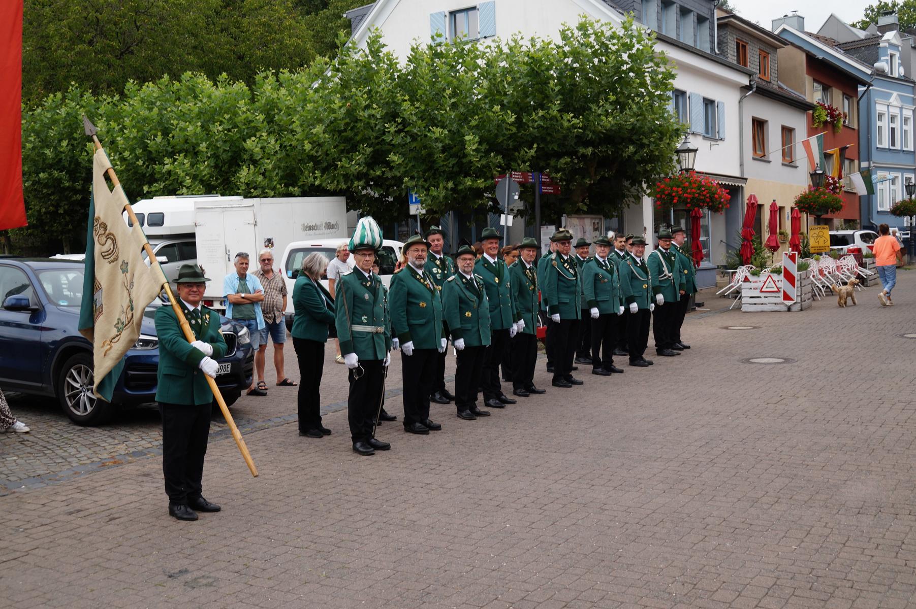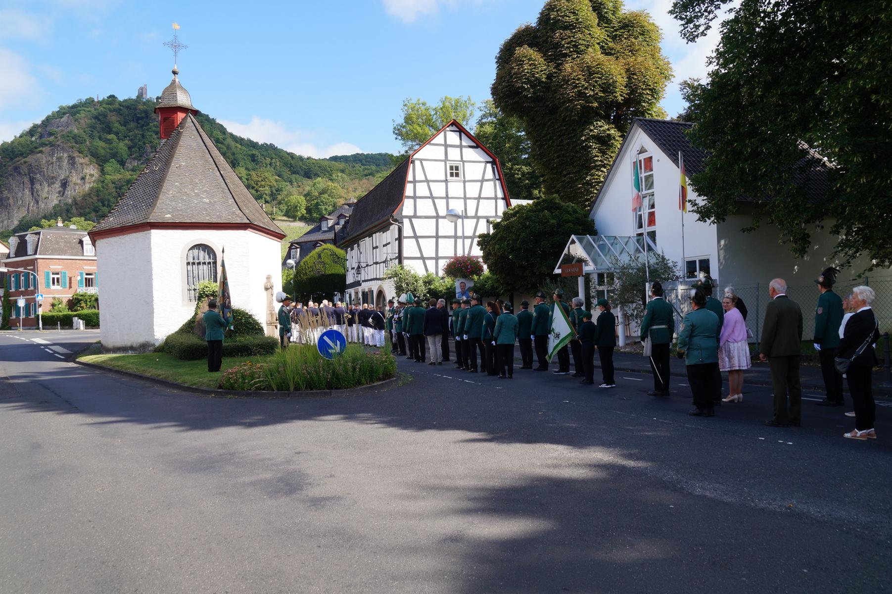 Der zweite Festtag des Rhöndorfer Schützen- und Bürgerfests begann feierlich mit einem Gottesdienst in der Kirche Mariä Heimsuchung. Im Anschluss versammelten sich die Teilnehmer zur Gefallenenehrung an der Marienkapelle, begleitet von jungen Fahnenschwingern aus der Region, die dem Moment einen würdigen Rahmen verliehen.