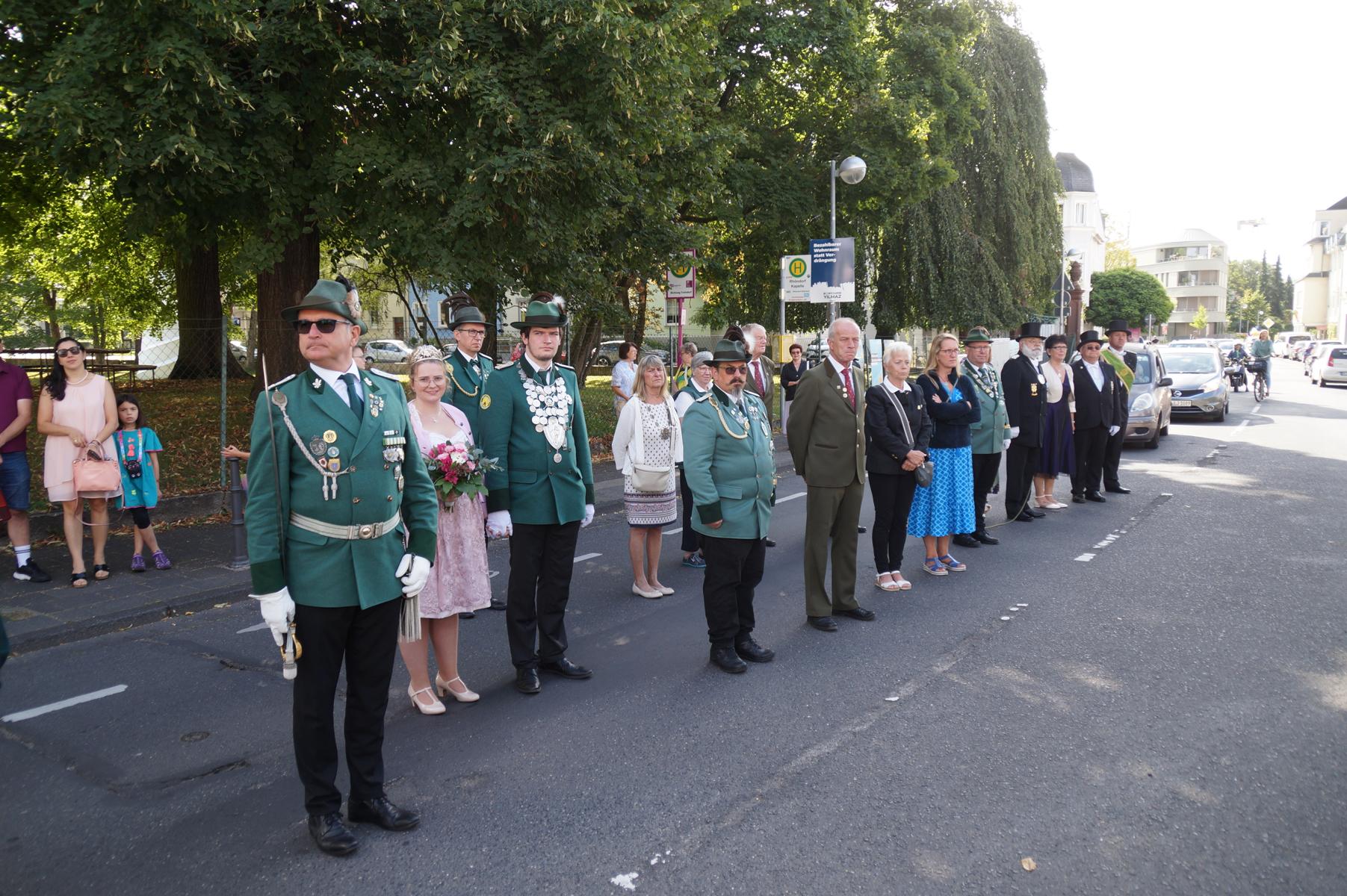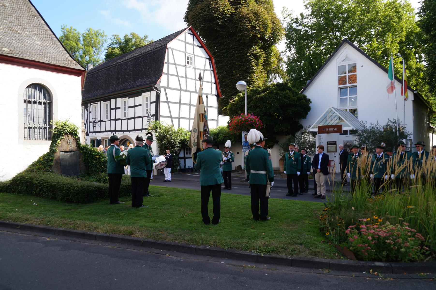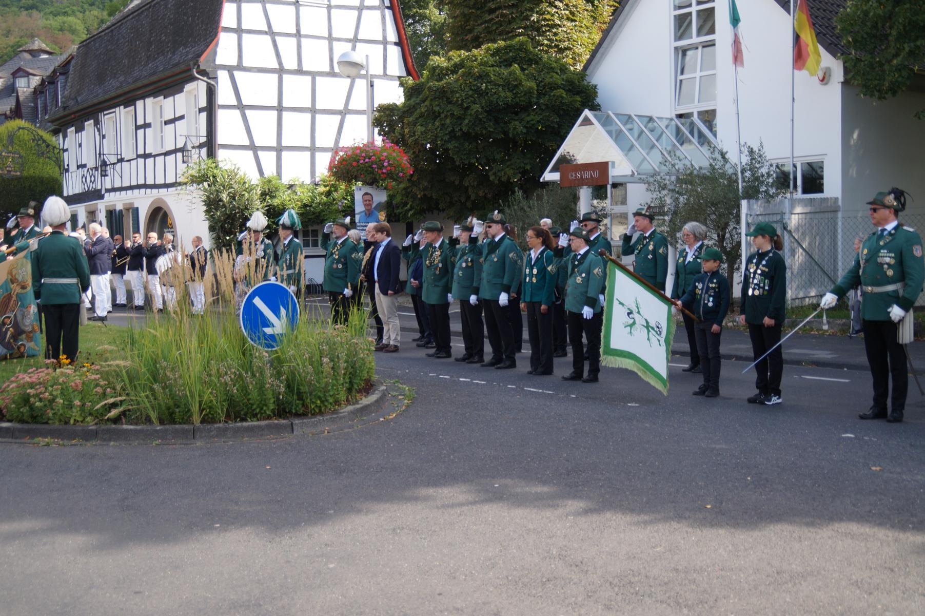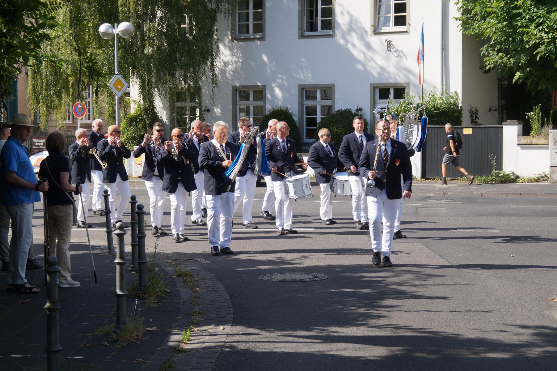 Der zweite Festtag des Rhöndorfer Schützen- und Bürgerfests begann feierlich mit einem Gottesdienst in der Kirche Mariä Heimsuchung. Im Anschluss versammelten sich die Teilnehmer zur Gefallenenehrung an der Marienkapelle, begleitet von jungen Fahnenschwingern aus der Region, die dem Moment einen würdigen Rahmen verliehen.