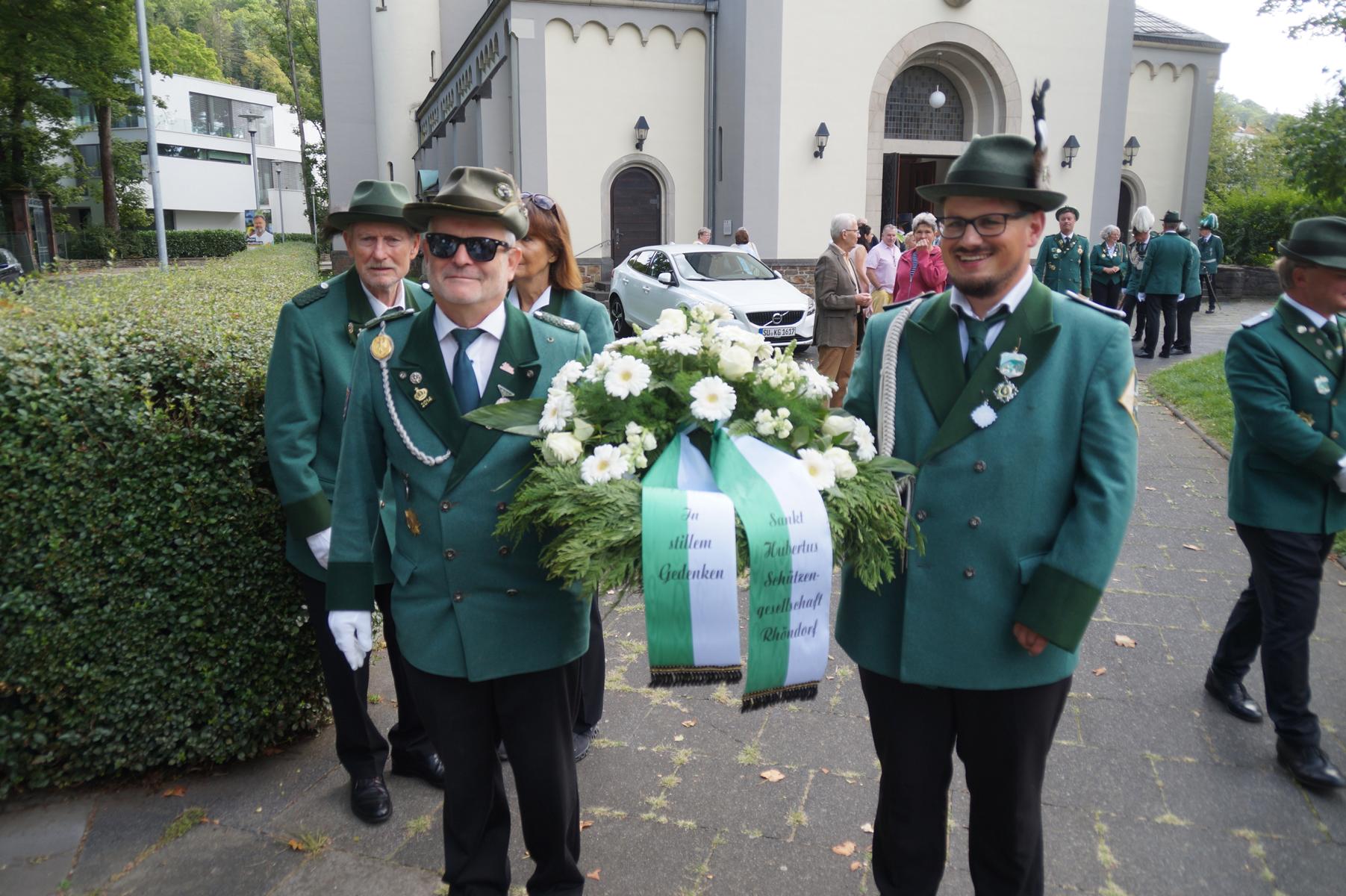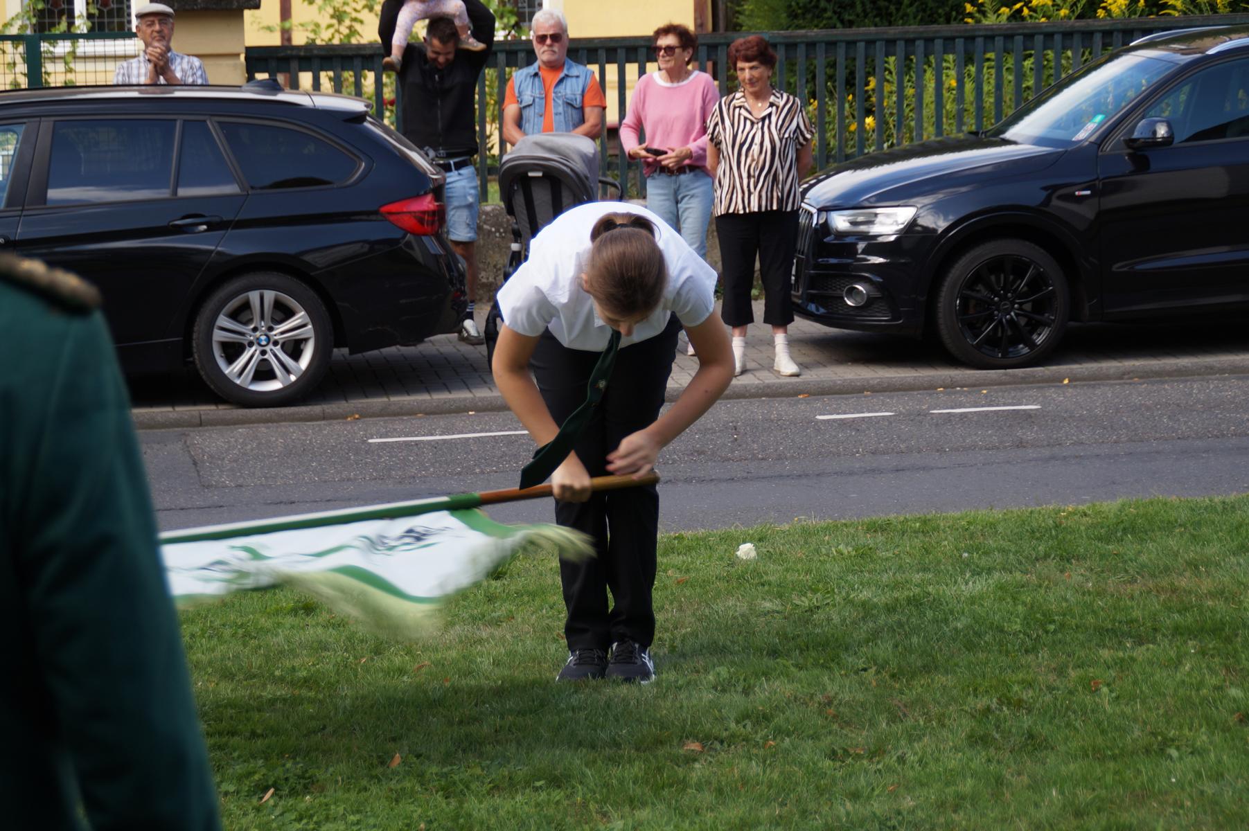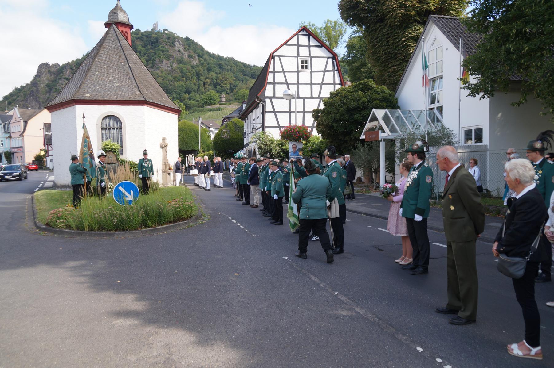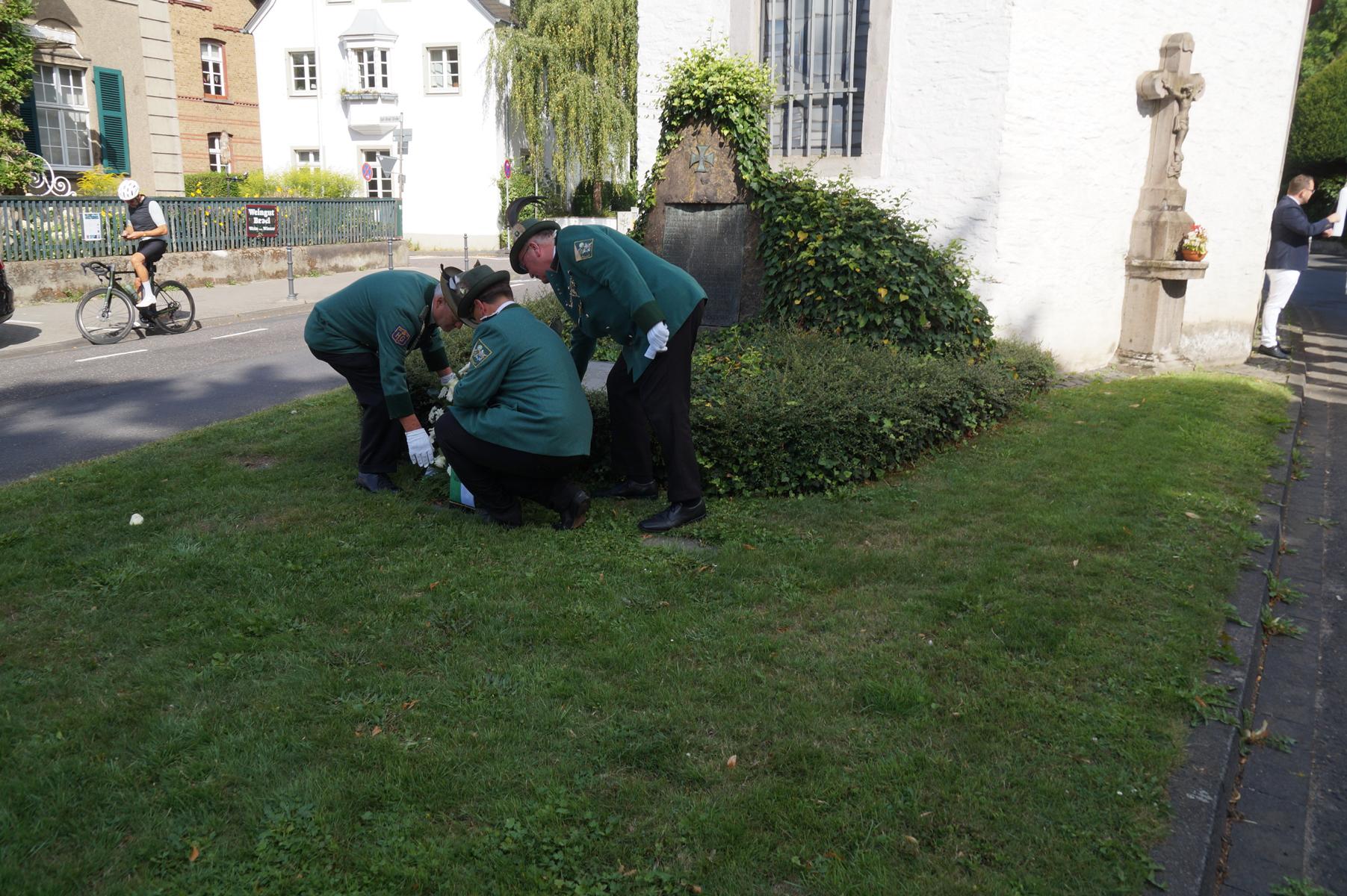 Der zweite Festtag des Rhöndorfer Schützen- und Bürgerfests begann feierlich mit einem Gottesdienst in der Kirche Mariä Heimsuchung. Im Anschluss versammelten sich die Teilnehmer zur Gefallenenehrung an der Marienkapelle, begleitet von jungen Fahnenschwingern aus der Region, die dem Moment einen würdigen Rahmen verliehen.