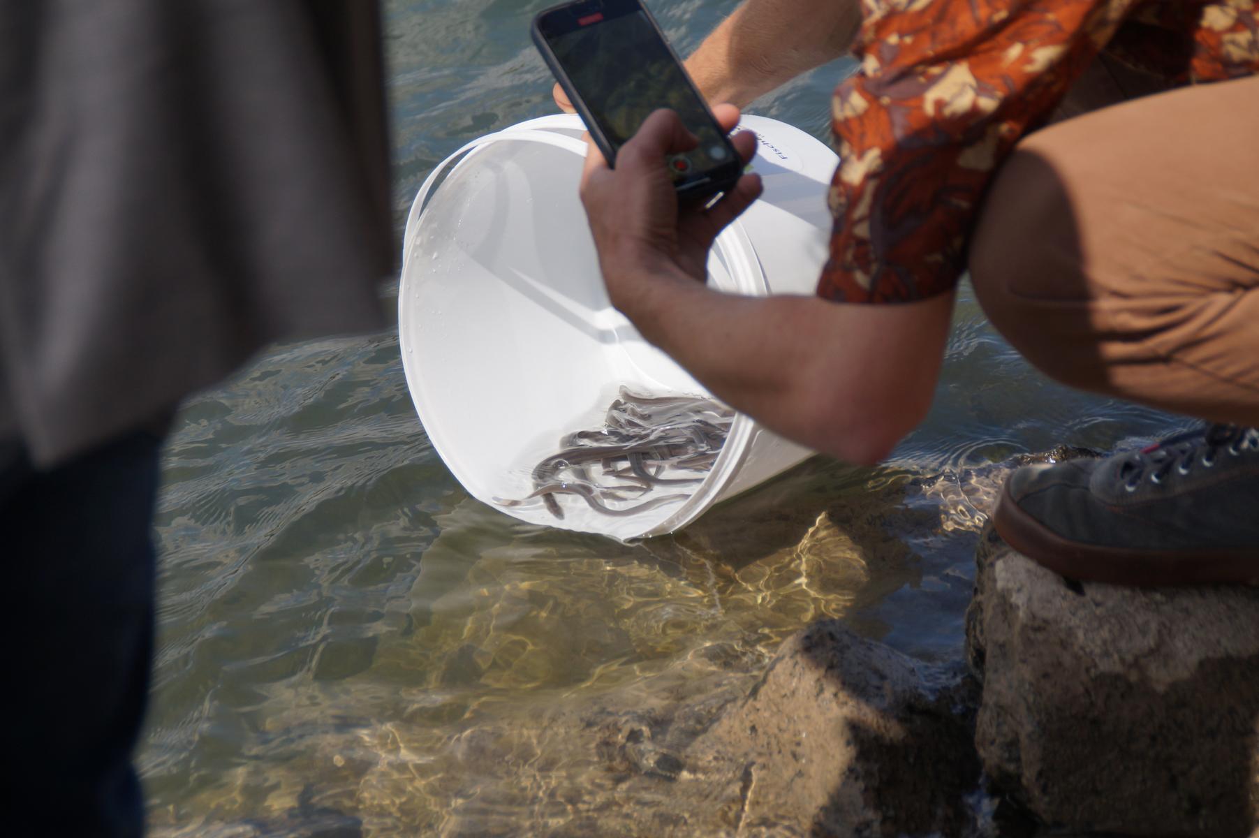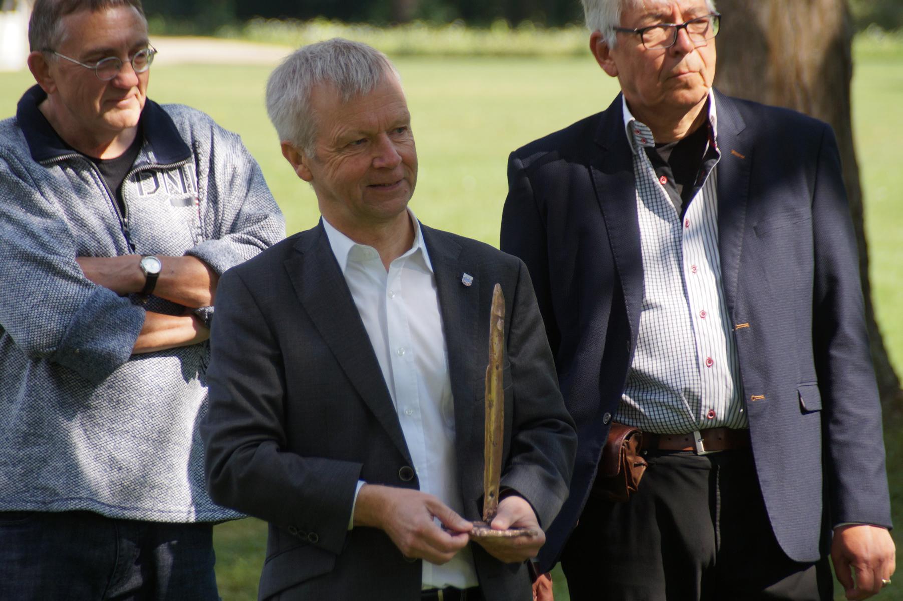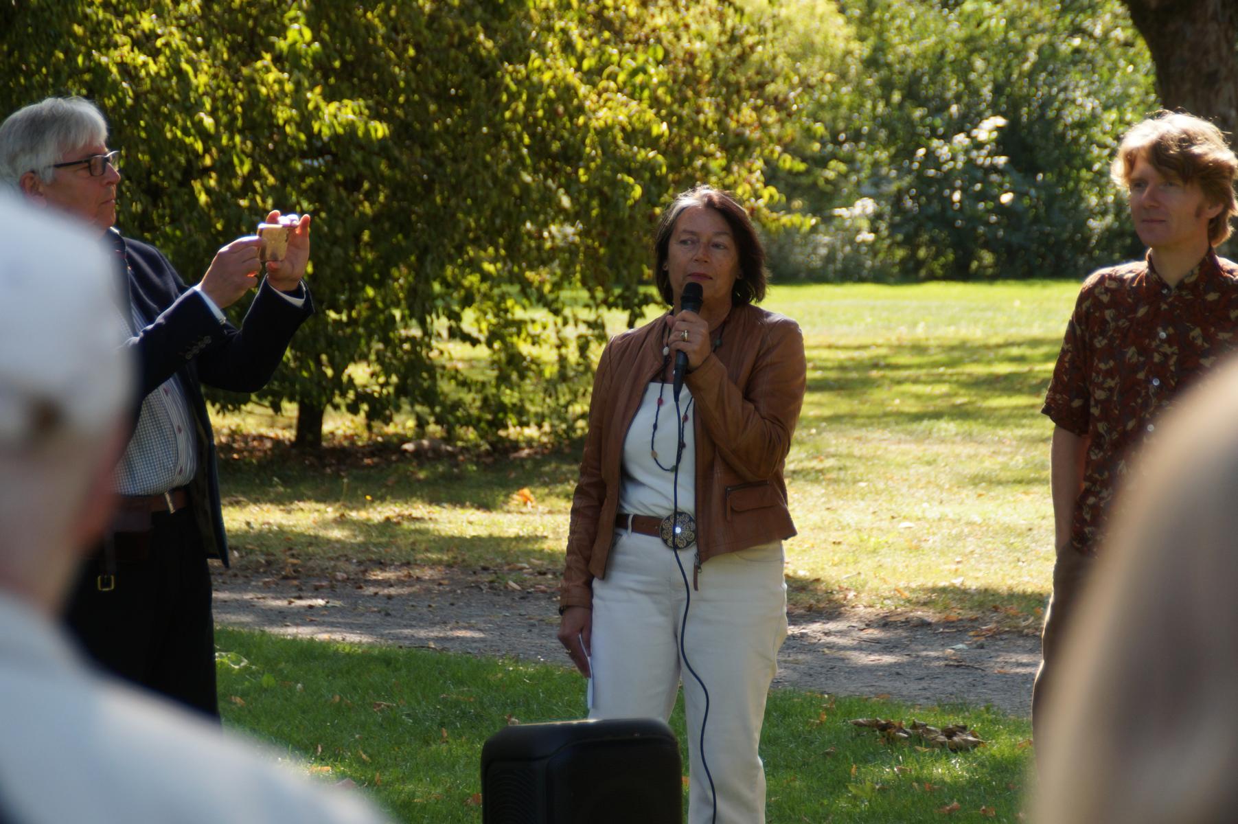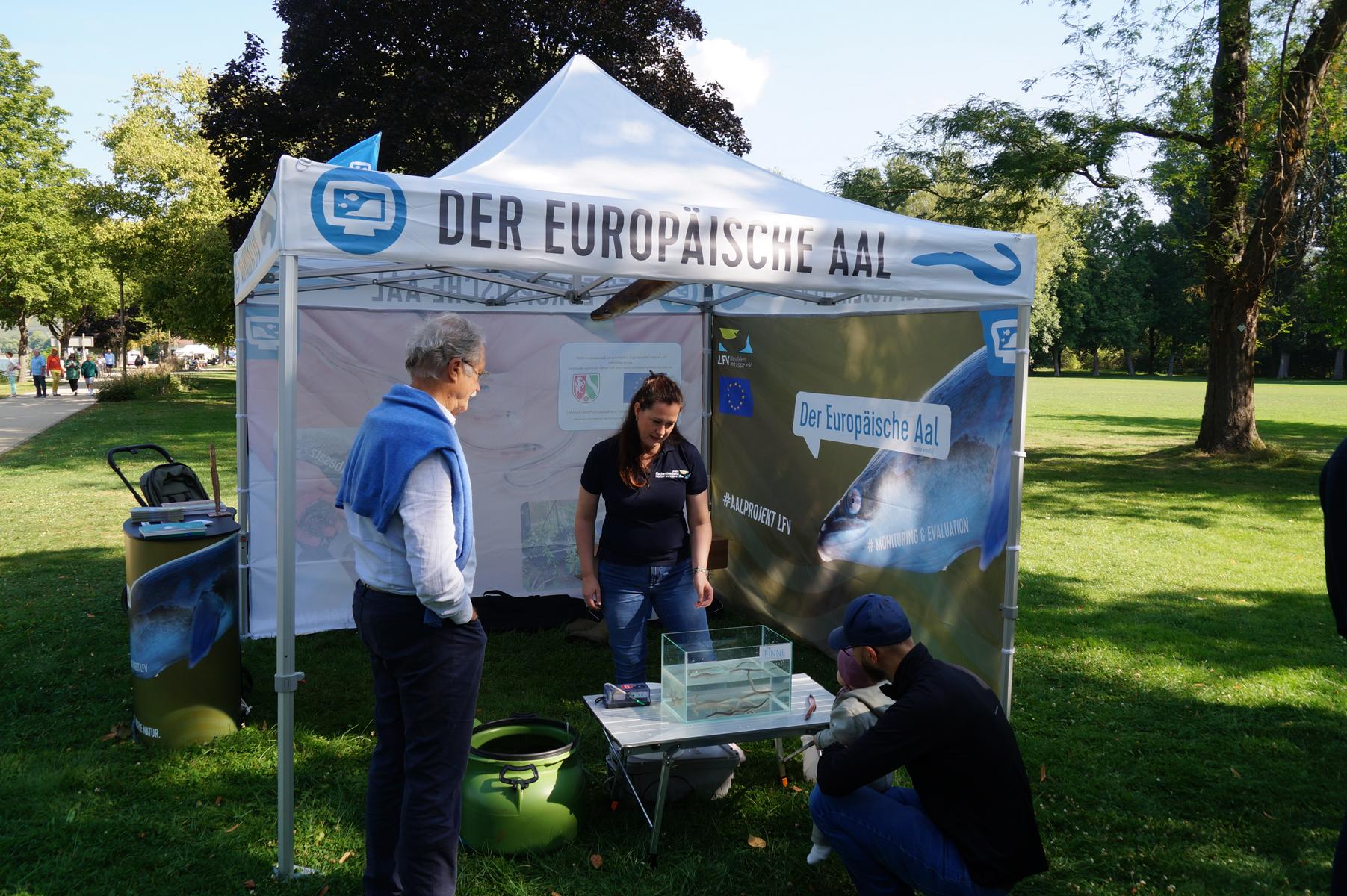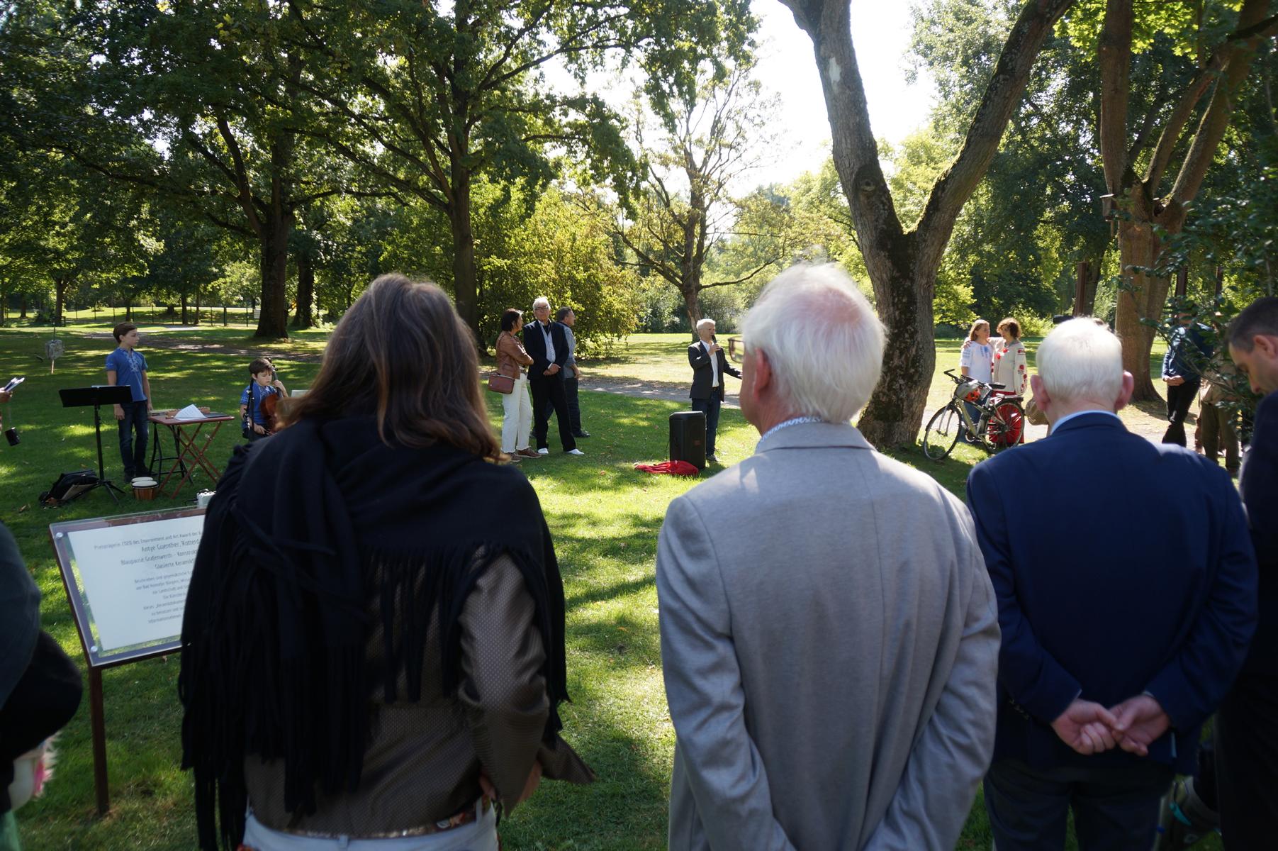 Der Umweltskulpturenpark auf der Insel Grafenwerth in Bad Honnef wächst. Am heutigen Sonntag wurde das 6. Kunstwerk der Öffentlichkeit übergeben. In Anwesenheit von zahlreichen Gästen aus der Kunstszene, der regionalen Politik und der Presse wurde der „Klima Aal“ von Markus Jeschaunig, österreichischer Künstler, präsentiert. Vorständin und Stifterin Dr. Beate Kummer würdigte das beeindruckende Werk mit folgenden Worten: „Die Aalskulptur passt hervorragend auf die Insel, weil damit nicht nur eine bedrohte Tierart besondere Aufmerksamkeit erlangt sondern auch auf den besonderen Bezug des Aals in Bad Honnef hingewiesen wird. Im Rhein ist der Bestand massiv zurück gegangen, deshalb freuen wir uns in besonderer Weise, dass Markus Jeschaunig mit seiner Arbeit dem Thema noch mehr Öffentlichkeit bietet.“ Die Prämierung wurde am vergangenem Sonntag (24.8.25) begleitet durch eine Aktion des Fischereiverbandes Westfalen-Lippe, die anwesenden Gäste konnten im Anschluss an das Kunstevent 600 lebende Aale in den Rhein aussetzen. Otto Neuhoff, Bürgermeister von Bad Honnef, ergänzte in seinem Grußwort seitens der Stadt: „Die ehrenamtlichen Klimainitiativen sind in nicht genug zu würdigen, denn ohne dieses Engagement würden Klima- und Umweltschutz nur schwer nahe an die Bürger herangetragen werden können.“