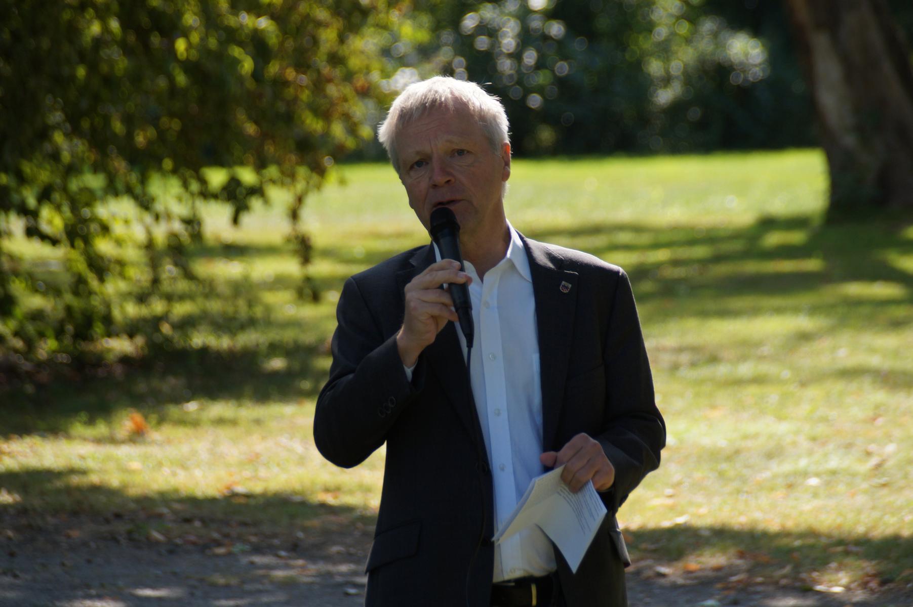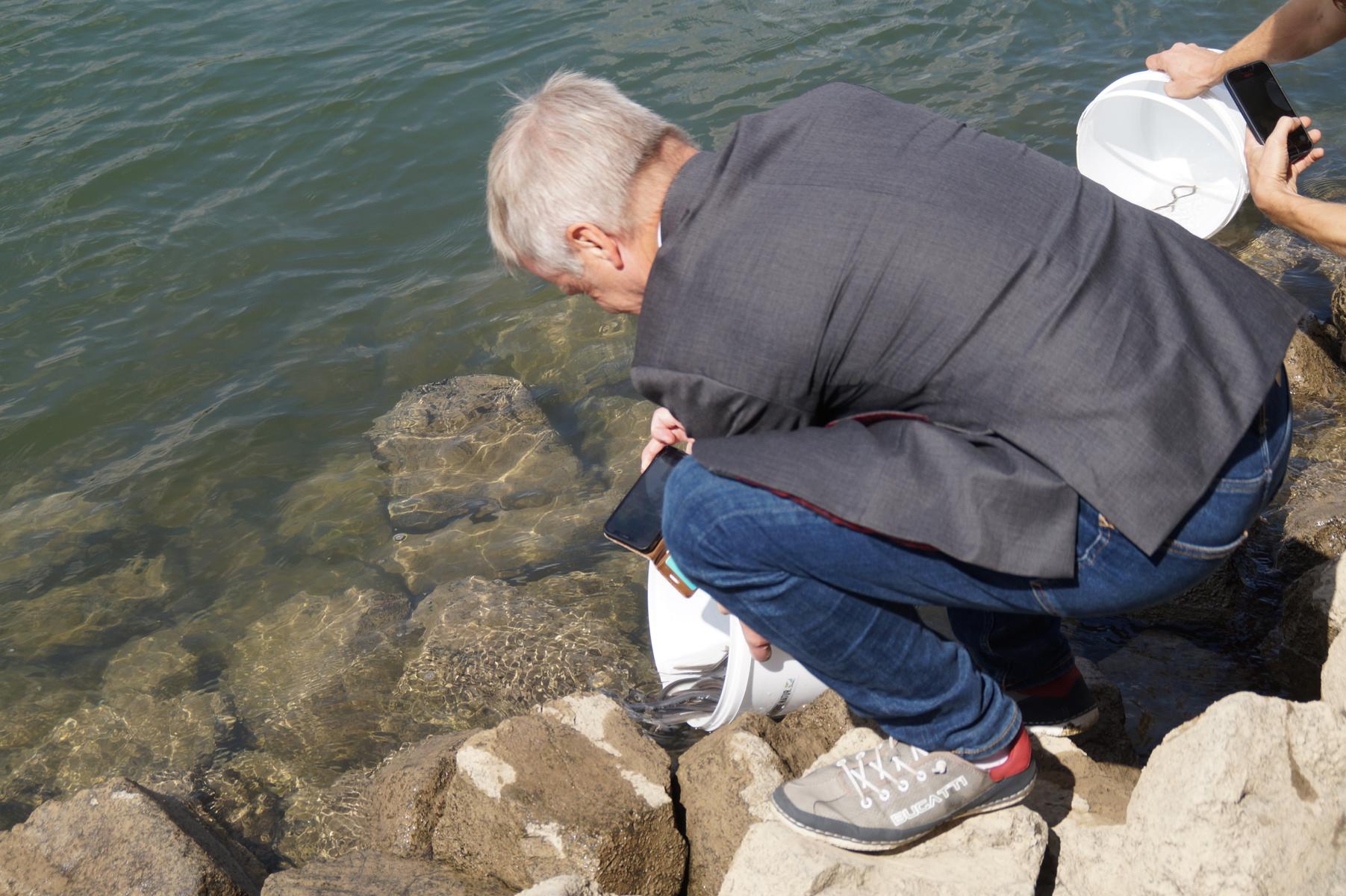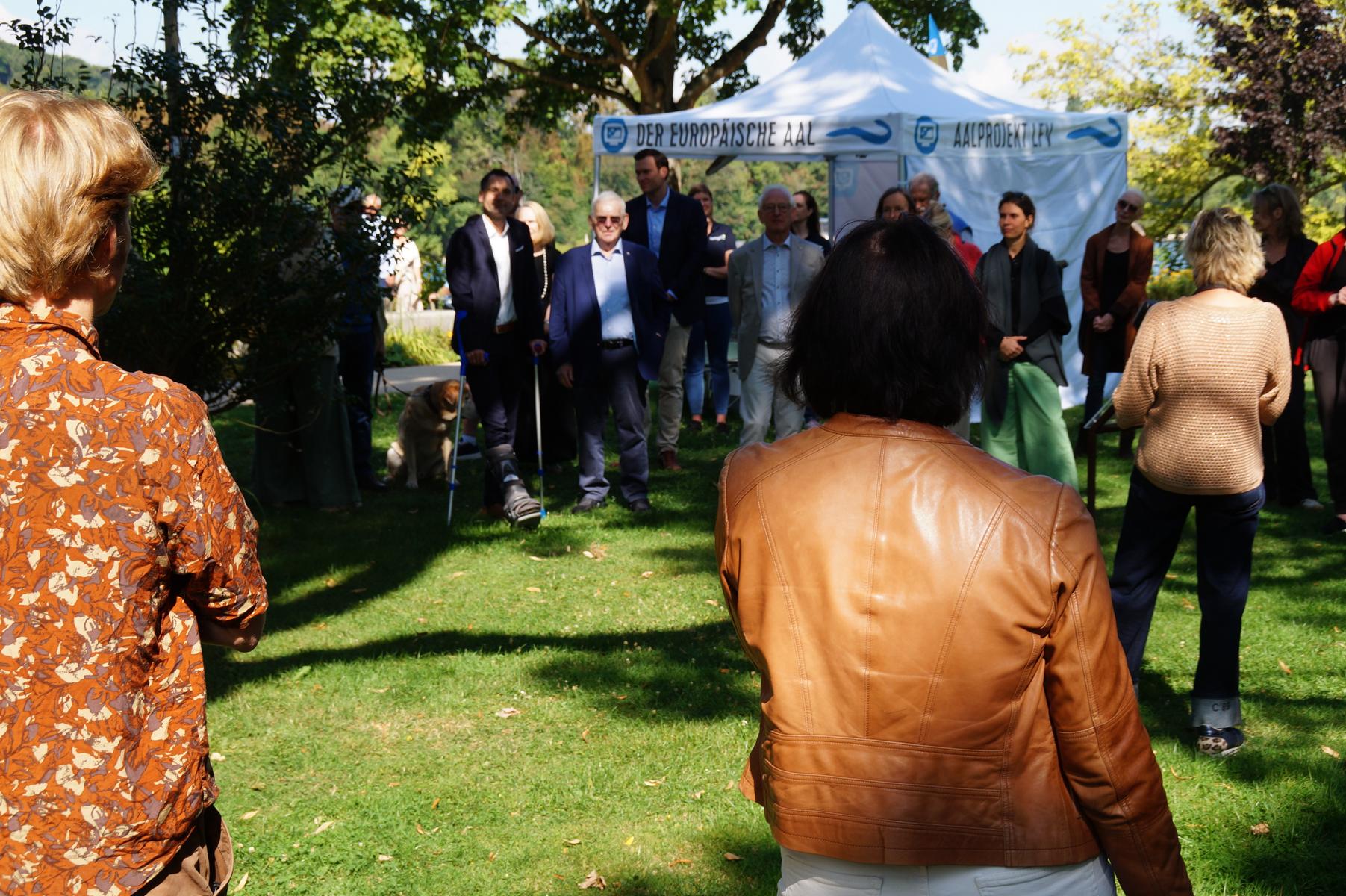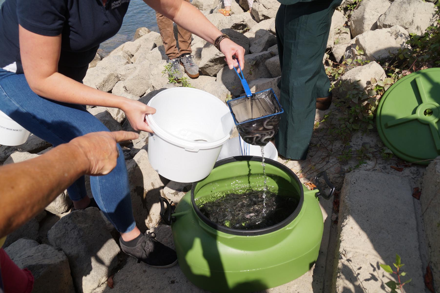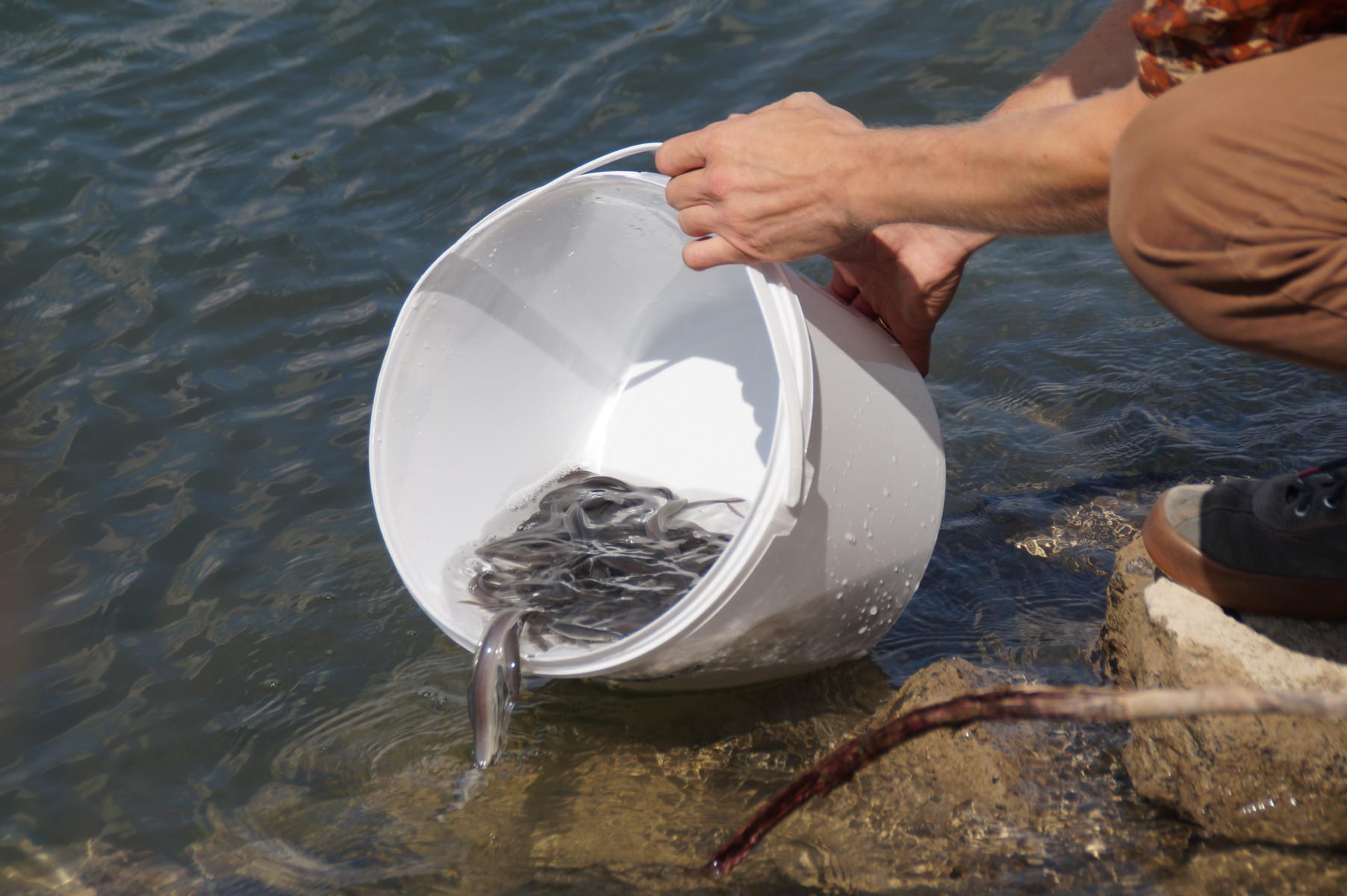 Der Umweltskulpturenpark auf der Insel Grafenwerth in Bad Honnef wächst. Am heutigen Sonntag wurde das 6. Kunstwerk der Öffentlichkeit übergeben. In Anwesenheit von zahlreichen Gästen aus der Kunstszene, der regionalen Politik und der Presse wurde der „Klima Aal“ von Markus Jeschaunig, österreichischer Künstler, präsentiert. Vorständin und Stifterin Dr. Beate Kummer würdigte das beeindruckende Werk mit folgenden Worten: „Die Aalskulptur passt hervorragend auf die Insel, weil damit nicht nur eine bedrohte Tierart besondere Aufmerksamkeit erlangt sondern auch auf den besonderen Bezug des Aals in Bad Honnef hingewiesen wird. Im Rhein ist der Bestand massiv zurück gegangen, deshalb freuen wir uns in besonderer Weise, dass Markus Jeschaunig mit seiner Arbeit dem Thema noch mehr Öffentlichkeit bietet.“ Die Prämierung wurde am vergangenem Sonntag (24.8.25) begleitet durch eine Aktion des Fischereiverbandes Westfalen-Lippe, die anwesenden Gäste konnten im Anschluss an das Kunstevent 600 lebende Aale in den Rhein aussetzen. Otto Neuhoff, Bürgermeister von Bad Honnef, ergänzte in seinem Grußwort seitens der Stadt: „Die ehrenamtlichen Klimainitiativen sind in nicht genug zu würdigen, denn ohne dieses Engagement würden Klima- und Umweltschutz nur schwer nahe an die Bürger herangetragen werden können.“