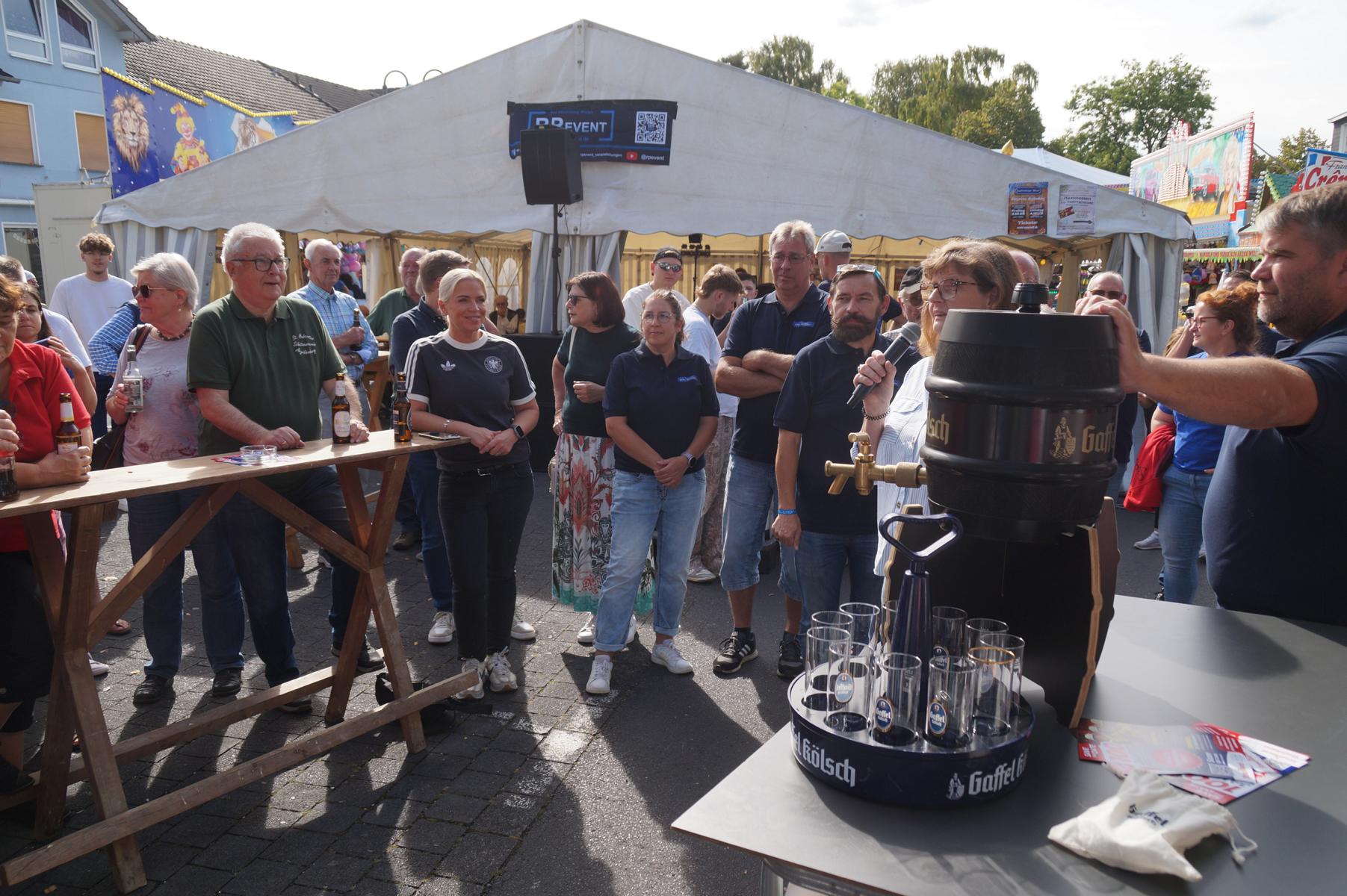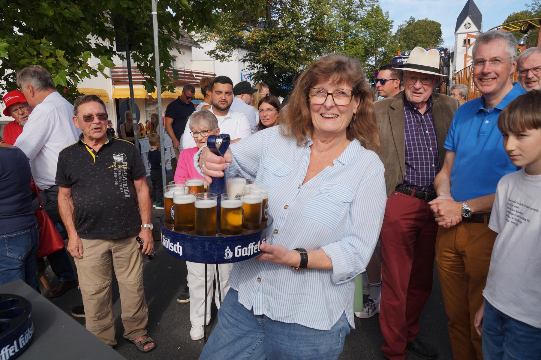 Den offiziellen Auftakt bildete am Samstagnachmittag der traditionelle Fassanstich, vorgenommen von Gabriele Clooth-Hoffmeister, die als stellvertretende Bürgermeisterin den verhinderten Bürgermeister Otto Neuhoff vertrat. In ihrer Rede gedachte sie der kürzlich verstorbenen Aegidienbergerin Helga Welter und würdigte deren langjähriges, vorbildliches Engagement für das Gemeinwohl. Auch der „neue“ Pfarrer Markus Hoitz war unter den Gästen und wurde herzlich in der Gemeinde willkommen geheißen.