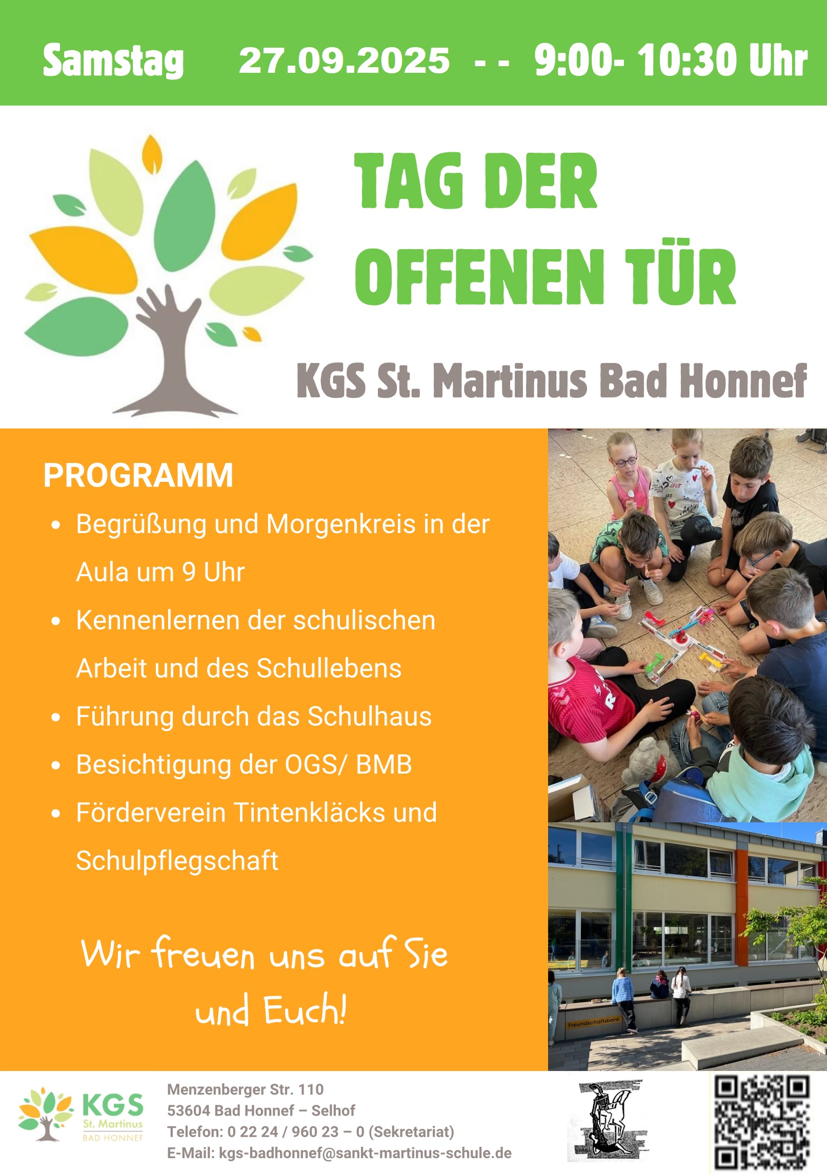 Am Samstag, dem 27. September 2025, lädt die KGS St. Martinus in Bad Honnef-Selhof alle interessierten Familien herzlich zum Tag der offenen Tür ein. Von 9:00 bis 10:30 Uhr haben Besucher die Möglichkeit, das Schulkonzept kennenzulernen und einen lebendigen Eindruck vom Alltag der Grundschule zu gewinnen.