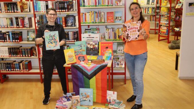 Zudem wurde gezielt queere Jugendliteratur in den Bestand der Stadtbücherei aufgenommen. Diese bildet vielfältige Lebensrealitäten von LSBTIAQ*-Jugendlichen ab und leistet so einen wichtigen Beitrag zur Sichtbarkeit und Akzeptanz geschlechtlicher und sexueller Vielfalt.
