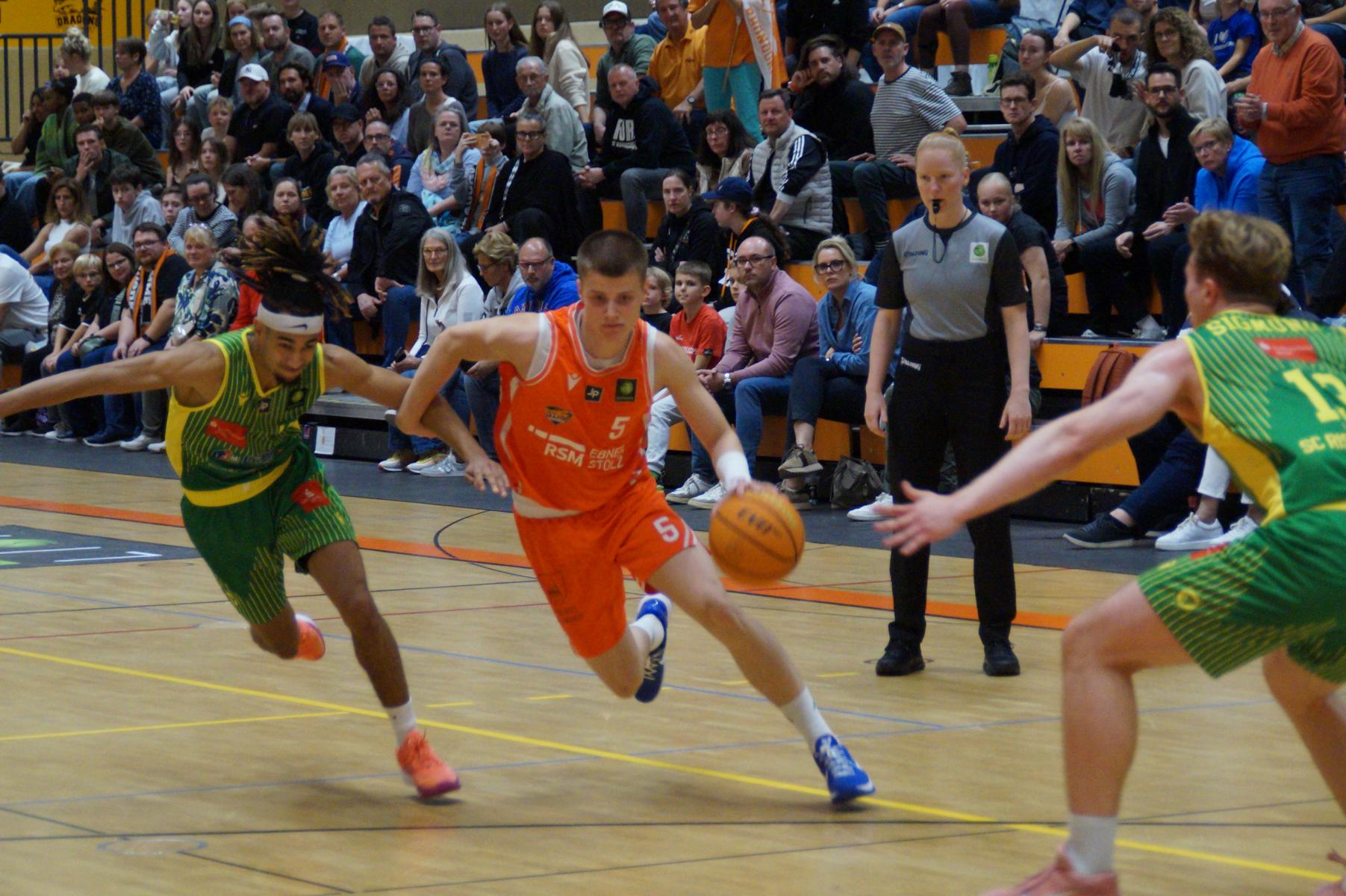 Vor dem Tip-Off war die Zuversicht beim Gros der Dragon-Fans noch verhalten. Zu tief steckte der Frust über die schwere Verletzung von Daniel Mayr. Zu allem Überfluss fehlte auch noch Jorge Mejias, der zeitgleich beim Kooperationspartner Telekom Baskets Bonn gegen die First Fitness Würzburg Baskets in der BBL ran durfte. Ohne zwei designierte Leistungsträger schien ein Sieg außer Reichweite. Allerdings musste bei den Gästen Ex-Drache Janne Müller aufgrund von Krankheit passen. Und am Ende hatten alle Zweifler die Rechnung ohne ein junges Team gemacht, dass nicht zuletzt für „Daniel Mayr alles raushauen wollte“, wie Kenan Reinhart unmittelbar nach dem Spiel sagte.