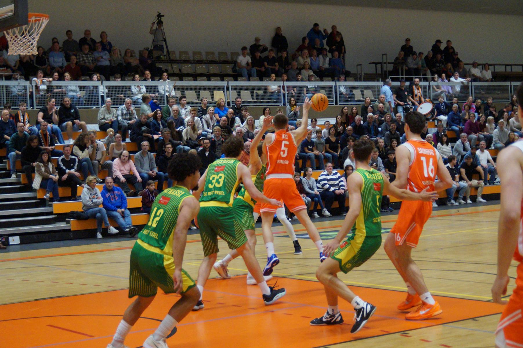 Nach der Schlusssirene zollten die rund 600 Fans im DragonDome ihrer Mannschaft Standing Ovation. Rhöndorf überzeugte als Team gegen SC Rist Wedel und siegte vollkommen verdient mit 82:67 (38:31). Weil die Rheinländer über die gesamte Spielzeit kämpften und rackerten, aber auch spielerisch überzeugten. Unter dem Strich betrieben die Hausherren beste Werbung in eigener Sache.
