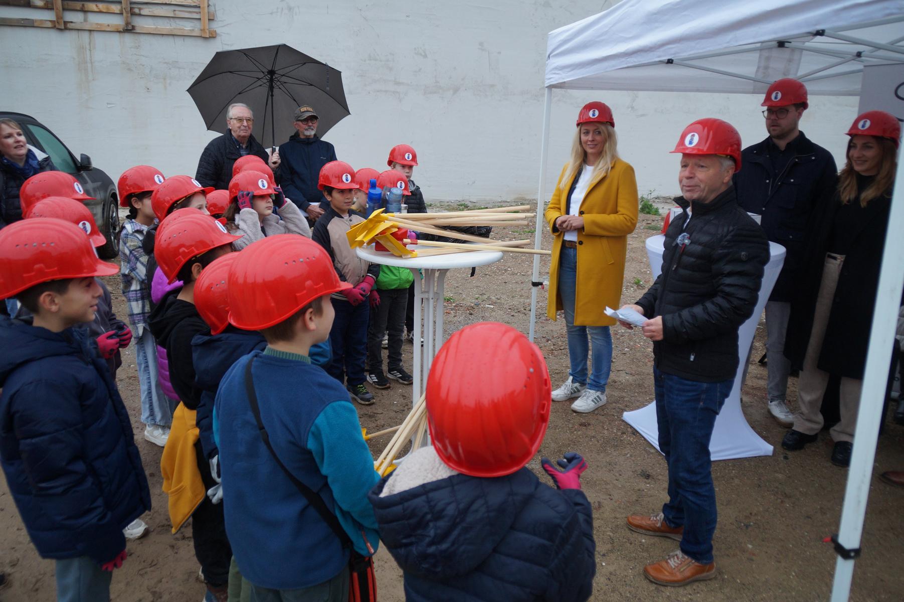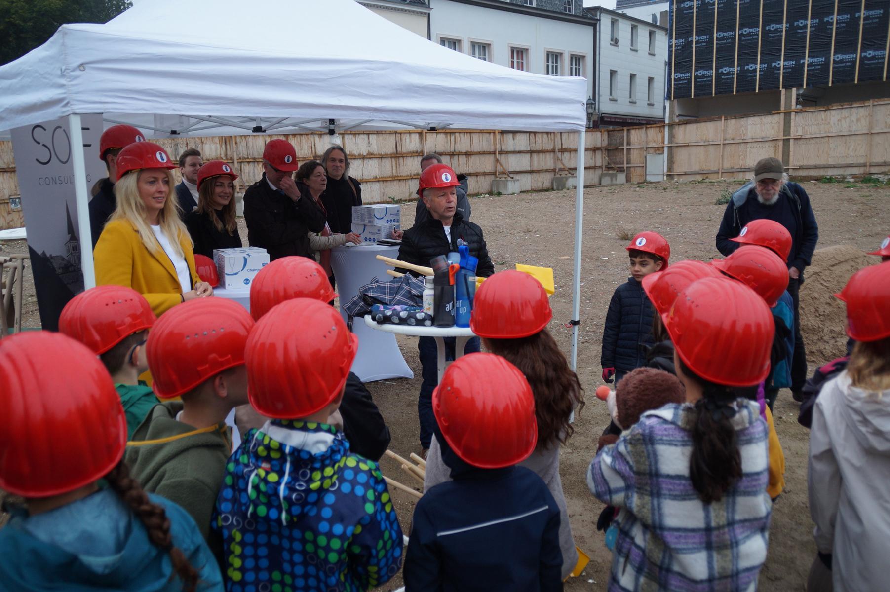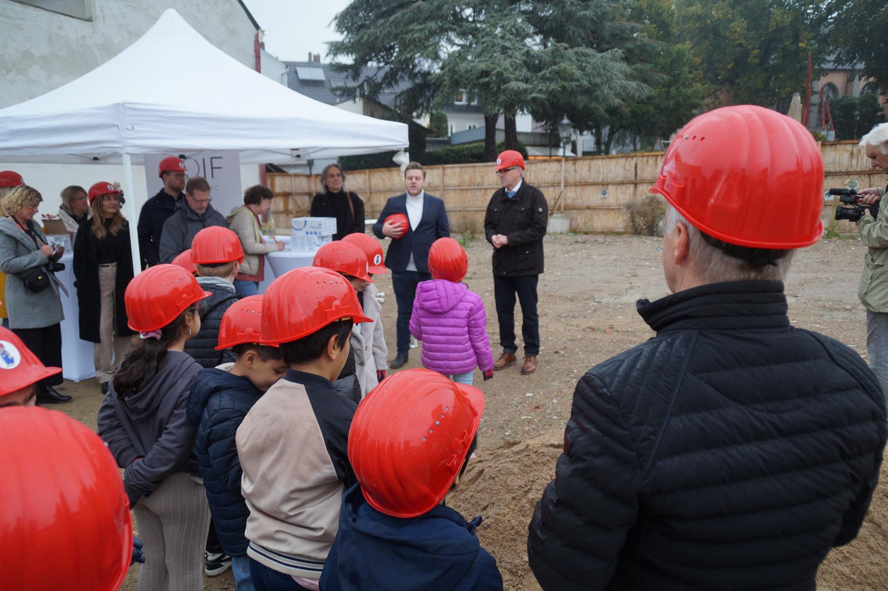 Beim Spatenstich waren auch Kinder der St. Martinus-Grundschule beteiligt, die das Baustellenmaskottchen „Grabbi“ erfunden haben – eine Idee aus der damaligen Klasse 2b. AusBadHonnef.de berichtete am 21.3.2025 , Die jungen Gäste durften selbst mit anpacken und erhielten Helme und Handschuhe als Andenken. Ebenfalls vor Ort war Ludwig Geerling, dessen Familie früher an dieser Stelle zwei Geschäfte betrieb.