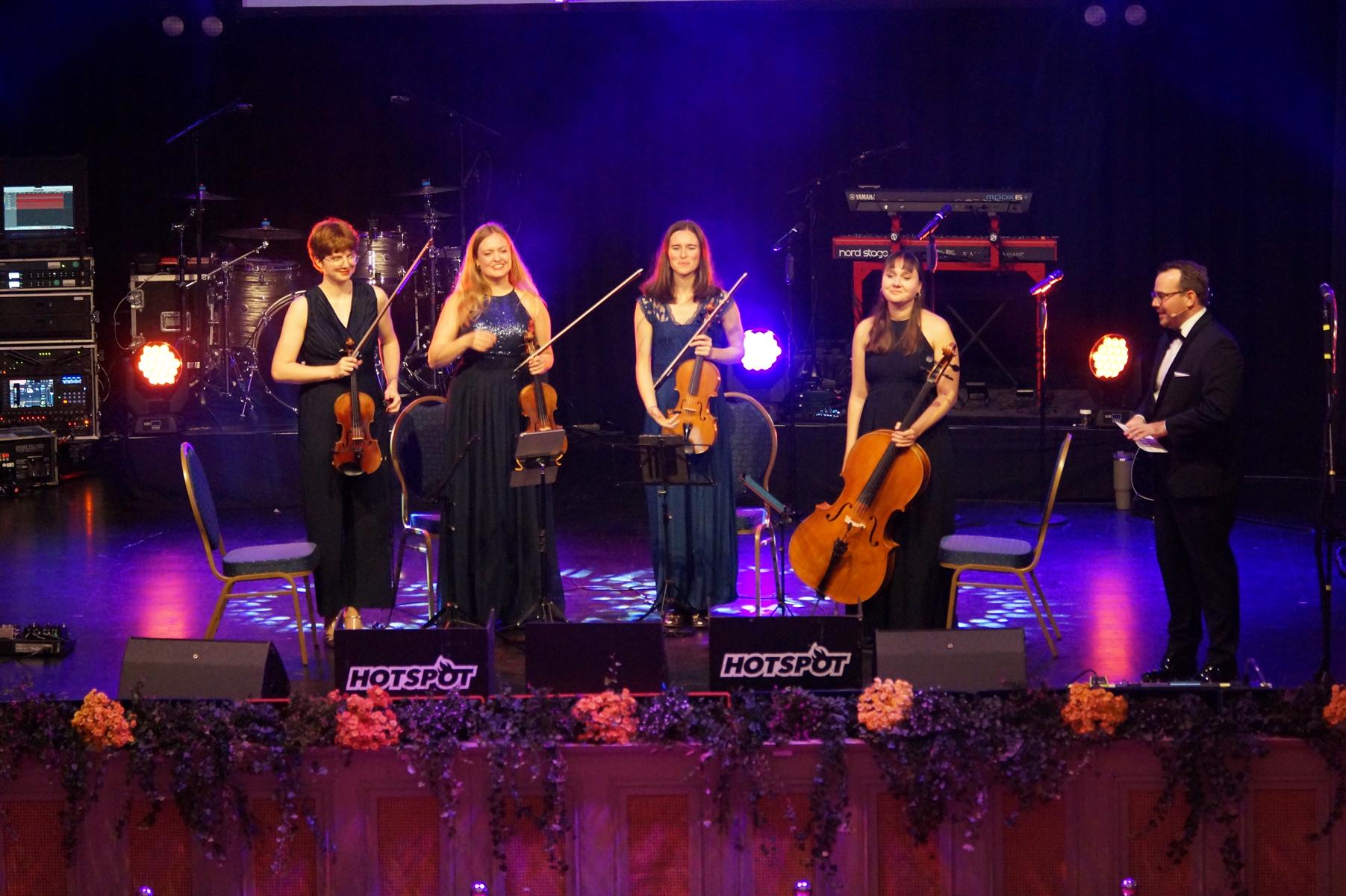 Der Spielmannszug des TV Eiche Bad Honnef und die Burgbläser Rheinbreitbach verliehen dem Einmarsch einen klangvollen Rahmen, während die Streicherinnen von „Kwartett Latäng” das Publikum mit rheinischer Lebensfreude und stilvoller Klangkunst verzauberten.