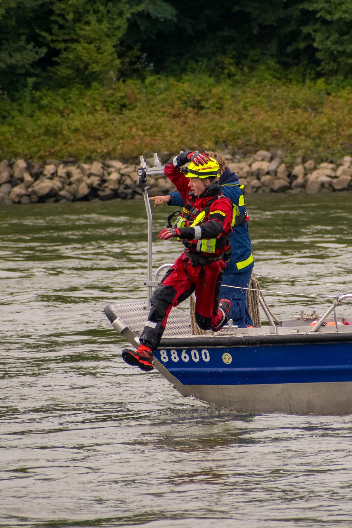 Übung 2025 - THW übt zusammen mit dem DLRG auf dem Rhein - Foto:© THW