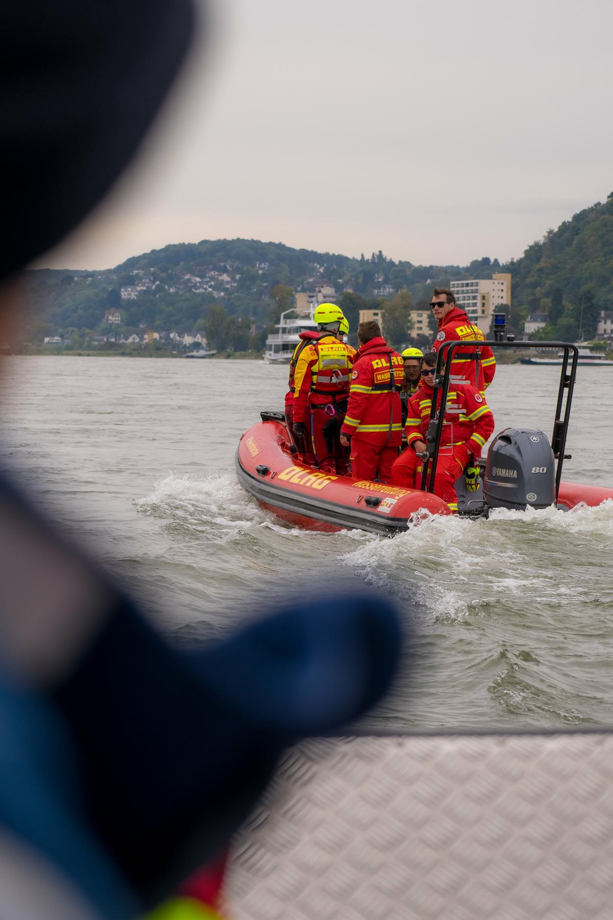 Treffpunkt am frühen Morgen war der Wassersportplatz in Bad Honnef. Trotz des anfangs typisch kalten, nassen und windigen Wetters waren alle Einsatzkräfte hochmotiviert.