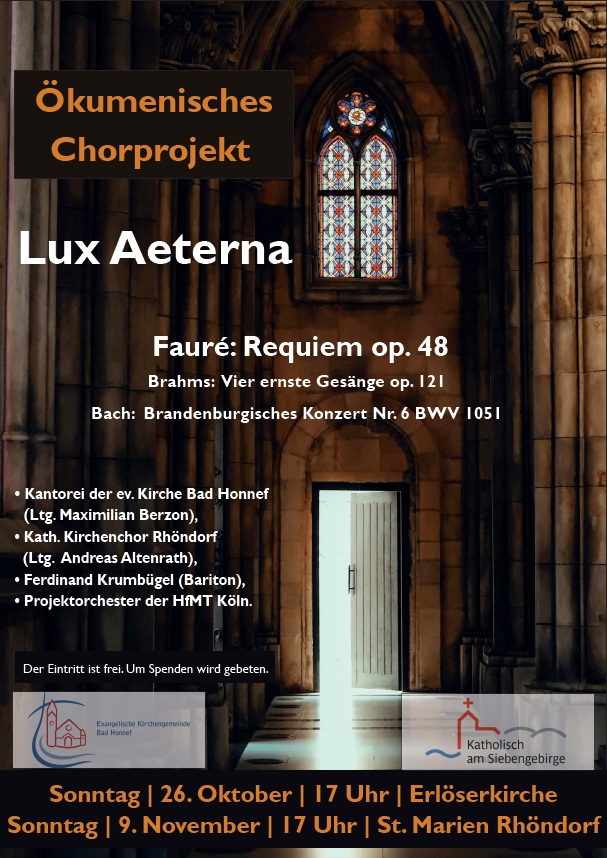 Im Mittelpunkt stehen Teile aus dem Requiem op. 194 in d-Moll von Josef Gabriel Rheinberger. Das Werk des romantischen Komponisten beeindruckt durch seine tiefe Ausdruckskraft und die Verbindung von ernster Thematik mit hoffnungsvollen Klangfarben. Ergänzend erklingen doppelchörige Motetten von Johann Pachelbel, Adam Gumpelzhaimer, Felix Mendelssohn Bartholdy und Max Reger, die mit ihrem vielstimmigen Reichtum ein breites Spektrum geistlicher Chormusik entfalten – von der Renaissance bis zur Romantik.