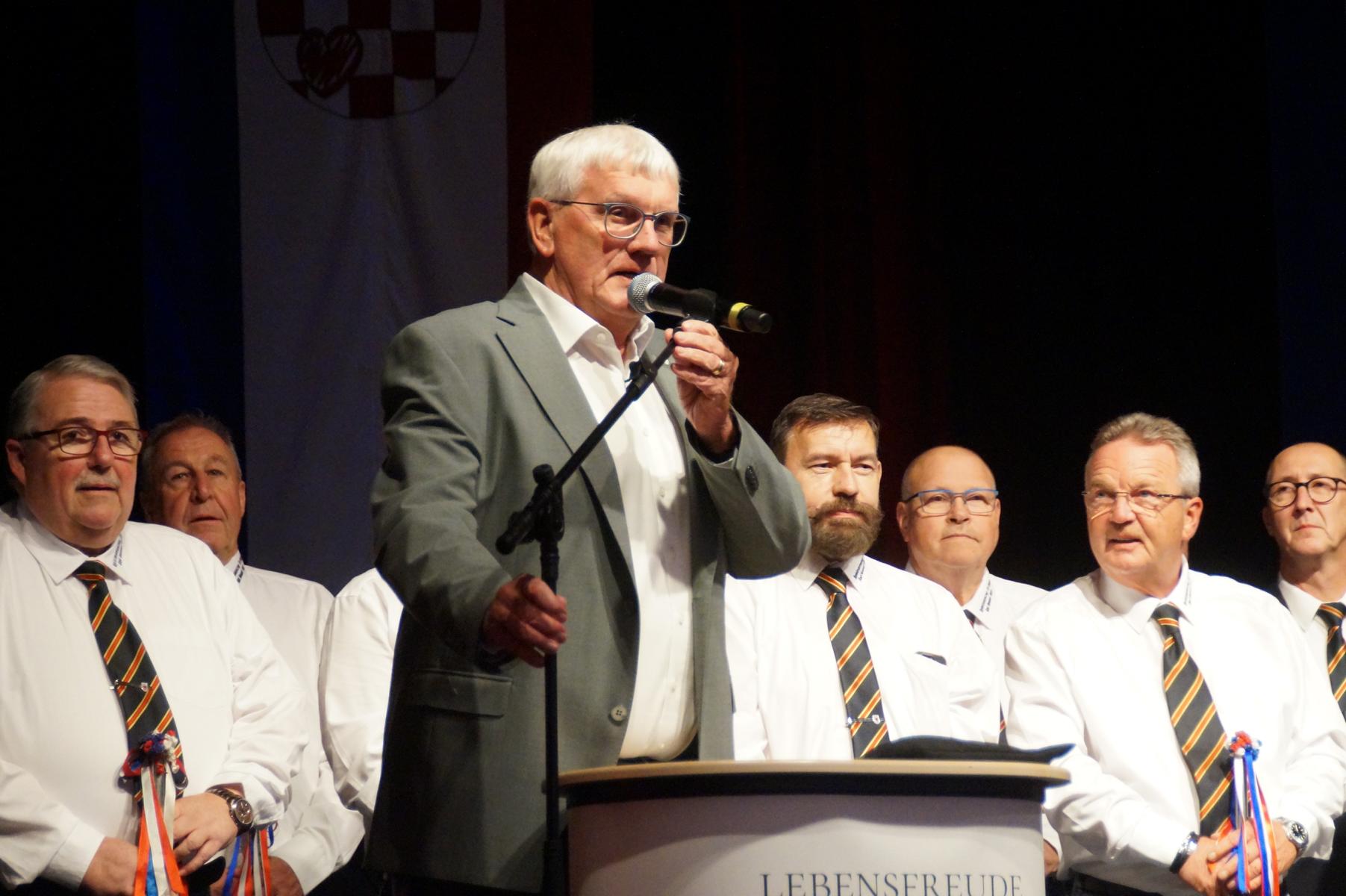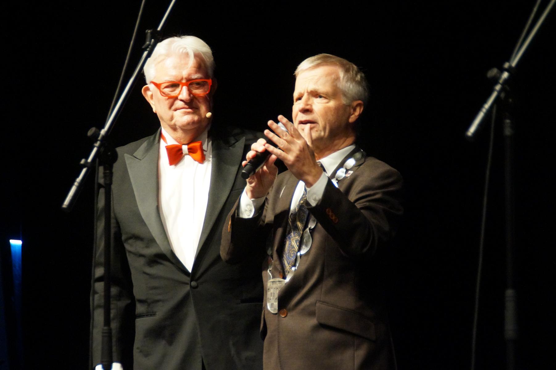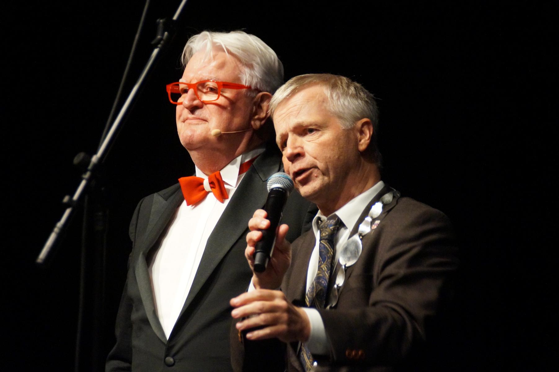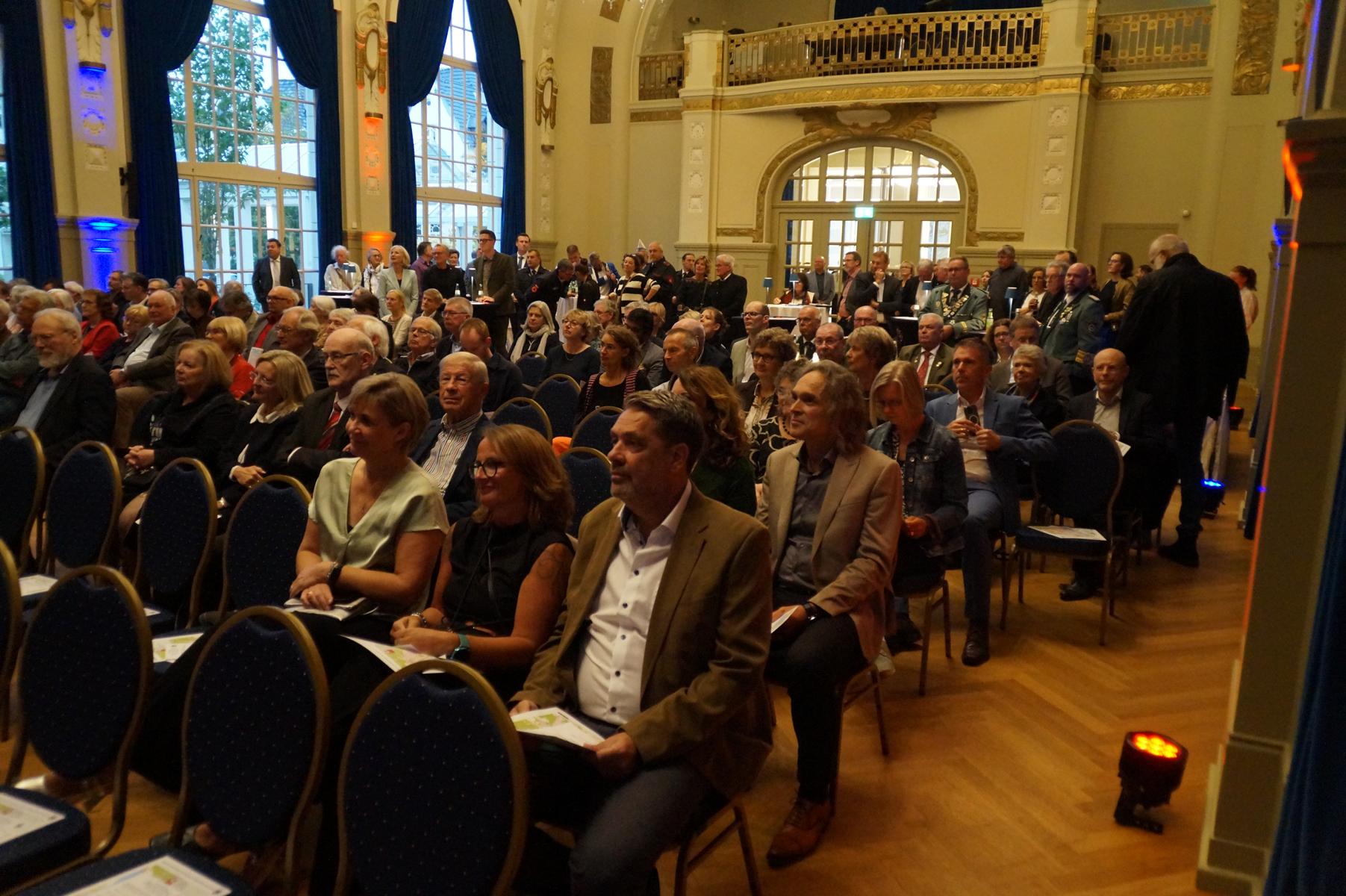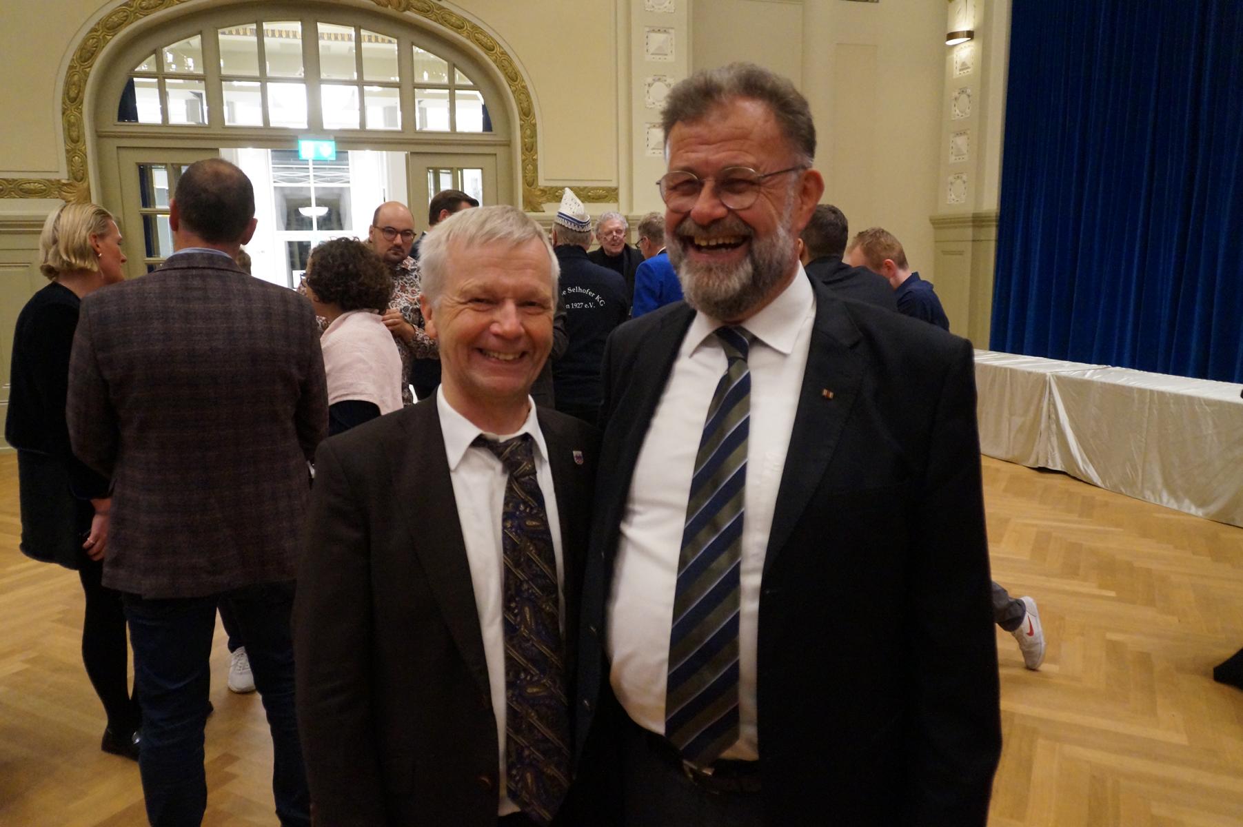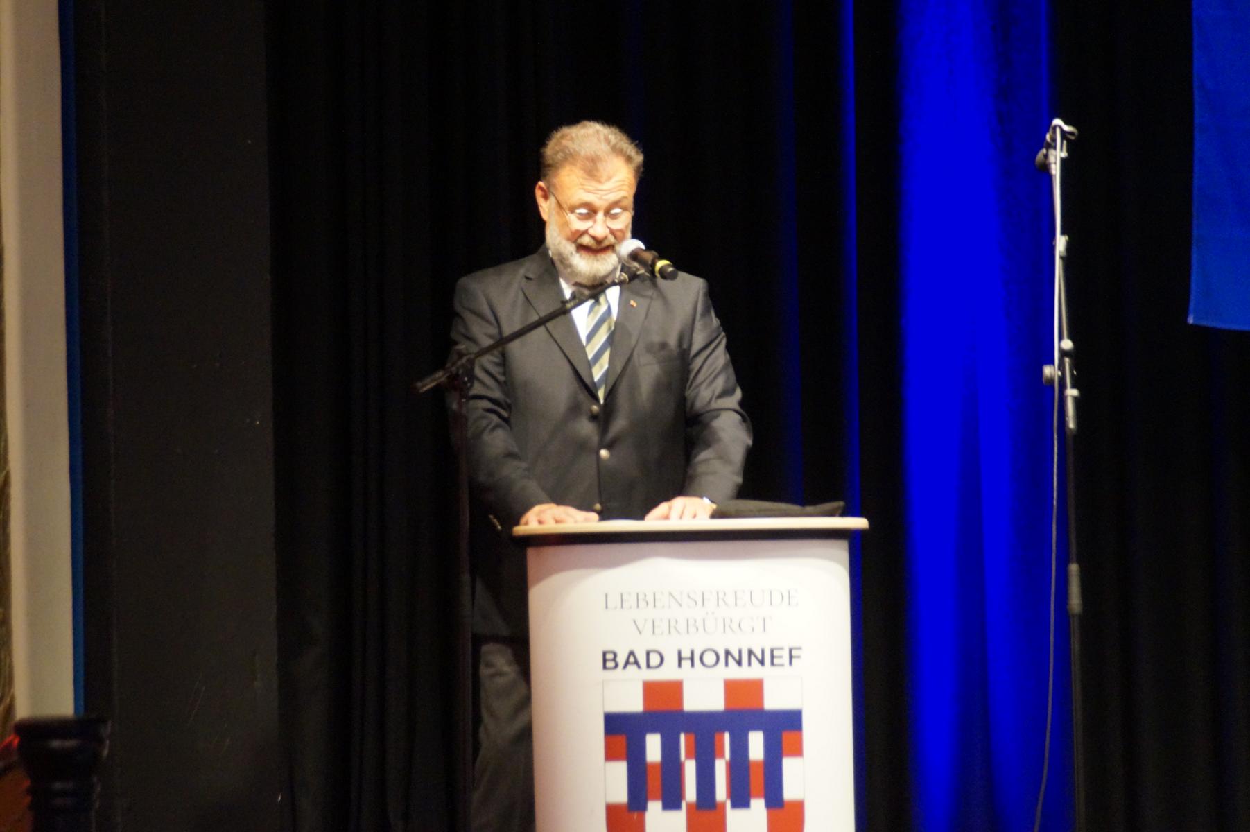 Der festlich geschmückte Kursaal bot den würdigen Rahmen für die Veranstaltung. Vertreter aus Politik, Verwaltung, Vereinen und Bürgerschaft waren gekommen, um Otto Neuhoff zu ehren. Die Moderation übernahmen Thomas Heyer und Peter Hurrelmann, die mit Charme und Witz durch den Abend führten. Sie erinnerten augenzwinkernd daran, dass Neuhoff „elf Jahre und 111 Tage“ im Amt war – eine Zahl, die im Rheinland nicht zufällig gewählt schien.