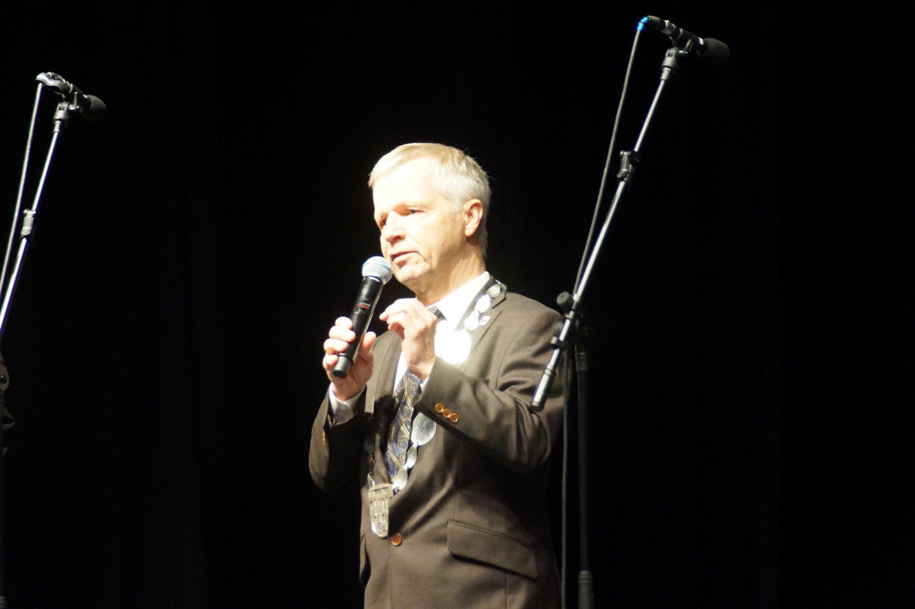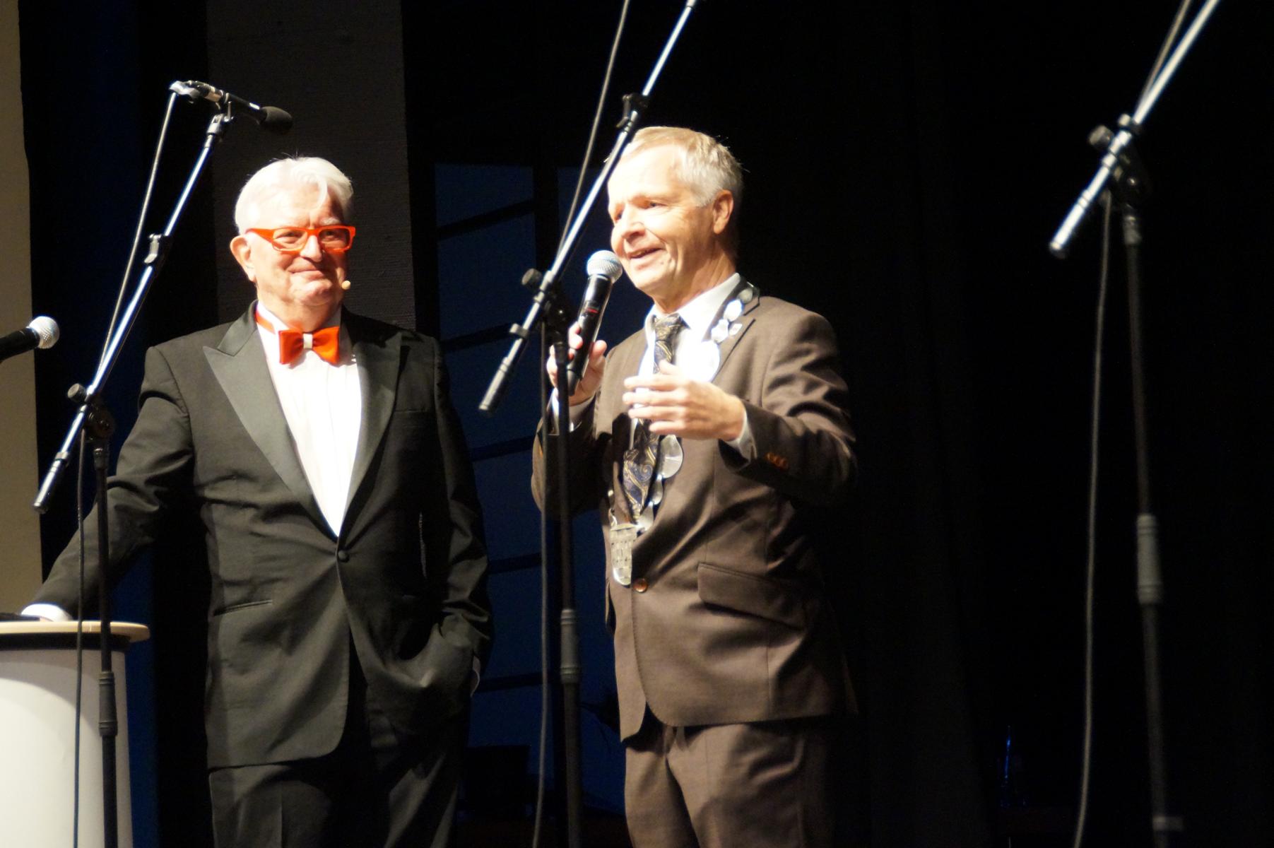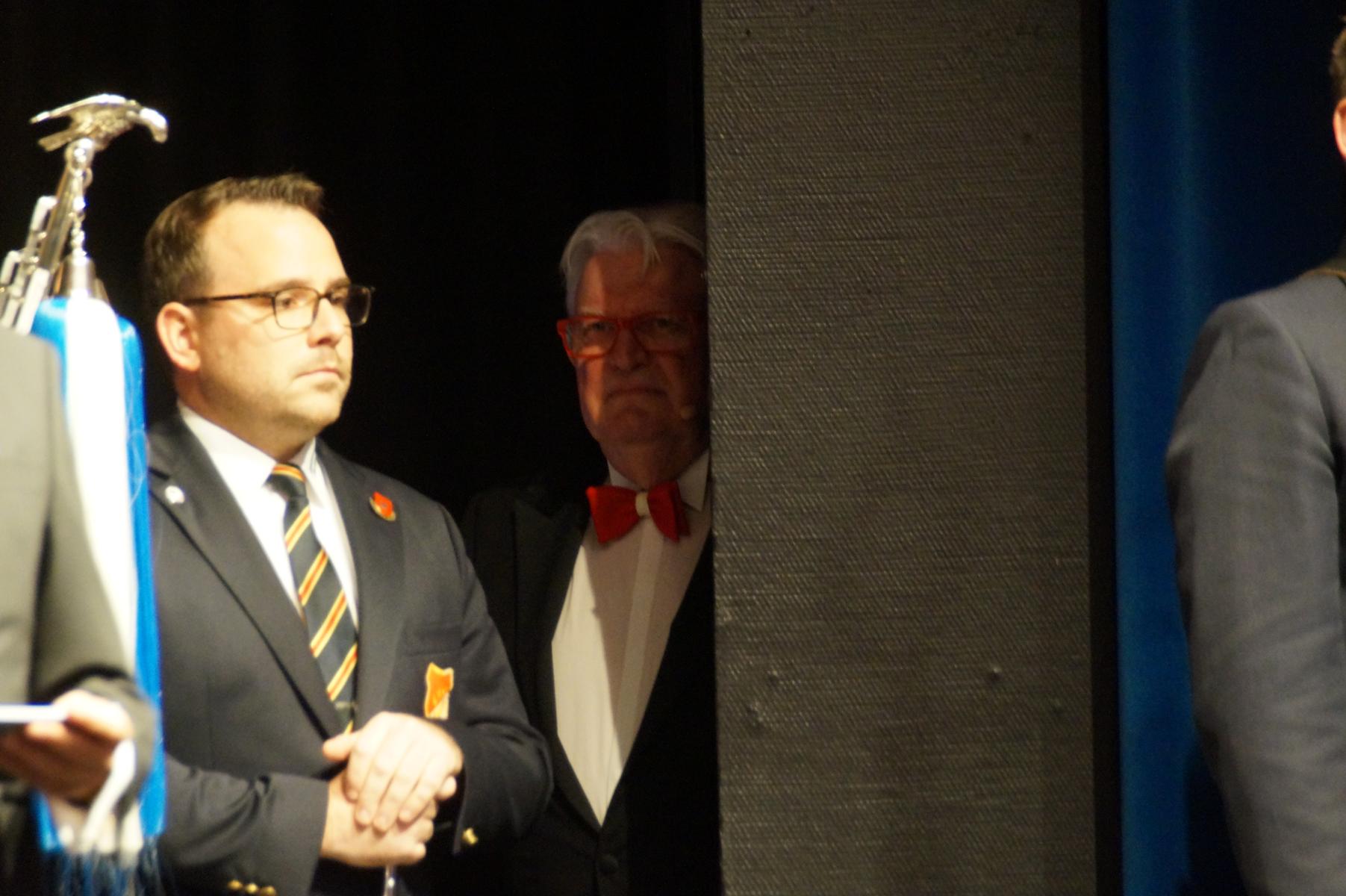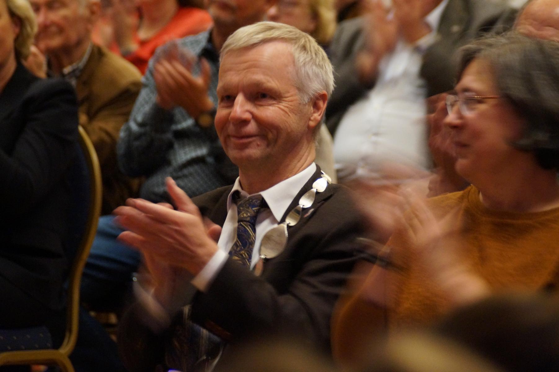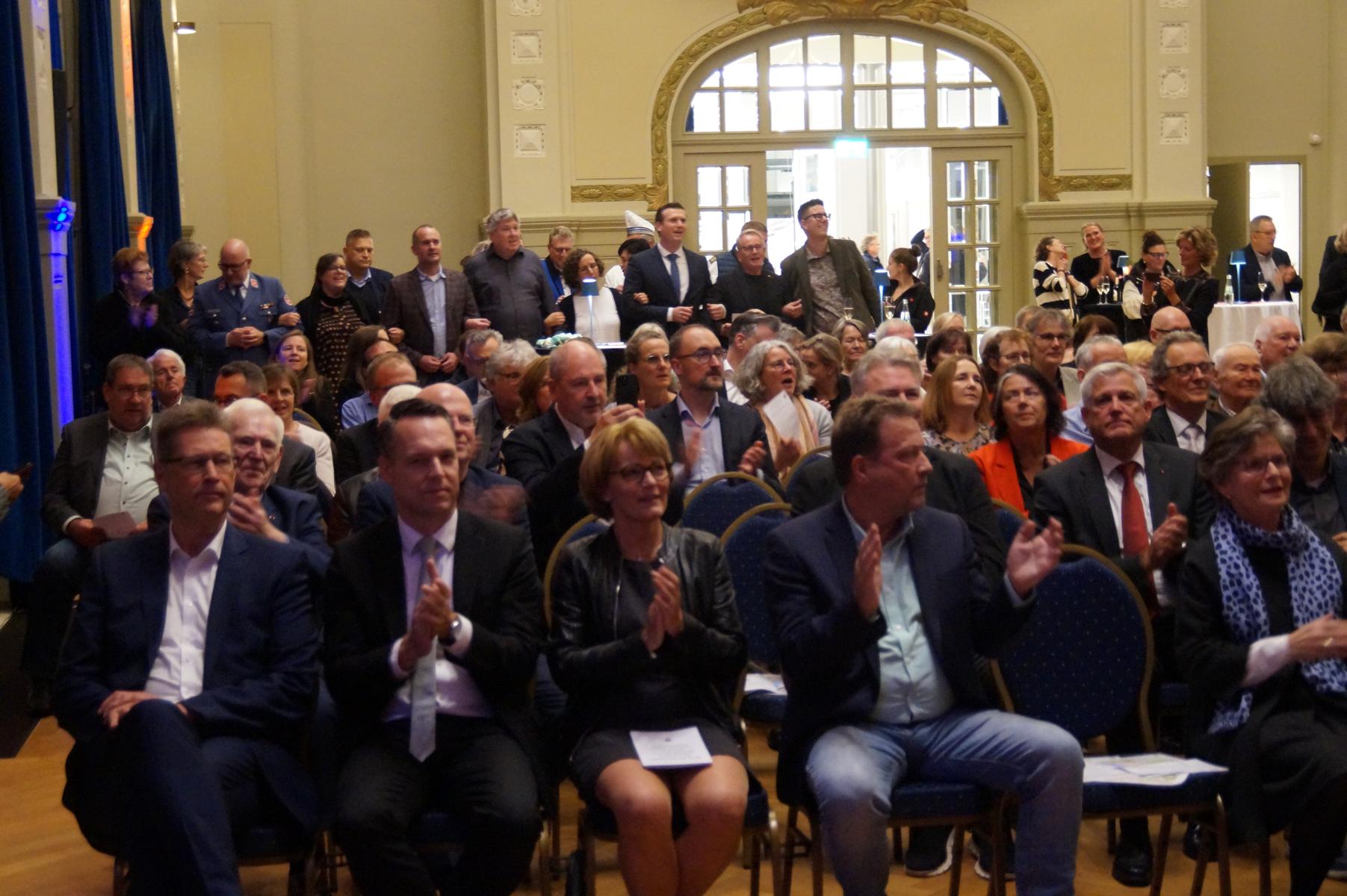 Der festlich geschmückte Kursaal bot den würdigen Rahmen für die Veranstaltung. Vertreter aus Politik, Verwaltung, Vereinen und Bürgerschaft waren gekommen, um Otto Neuhoff zu ehren. Die Moderation übernahmen Thomas Heyer und Peter Hurrelmann, die mit Charme und Witz durch den Abend führten. Sie erinnerten augenzwinkernd daran, dass Neuhoff „elf Jahre und 111 Tage“ im Amt war – eine Zahl, die im Rheinland nicht zufällig gewählt schien.