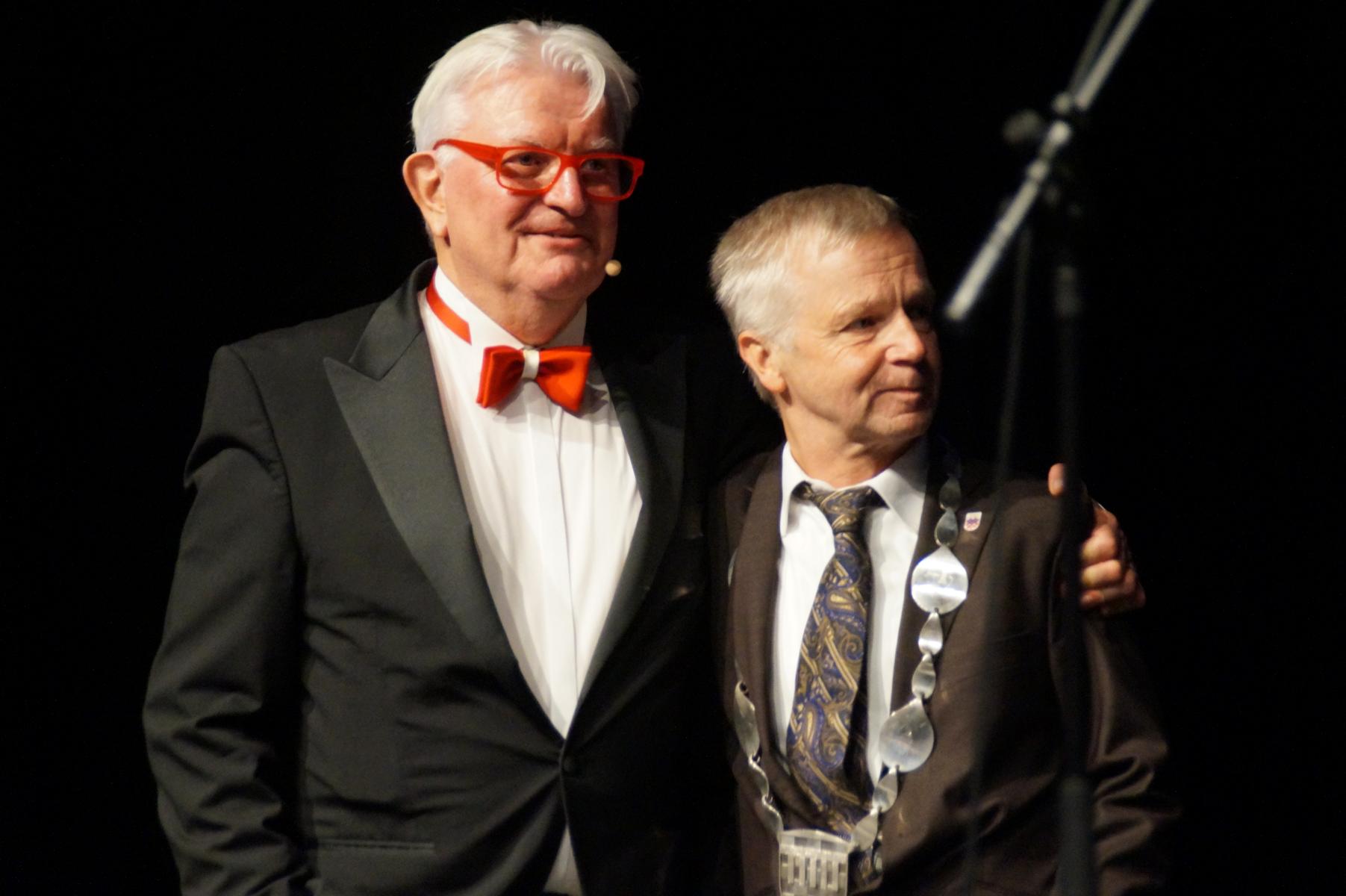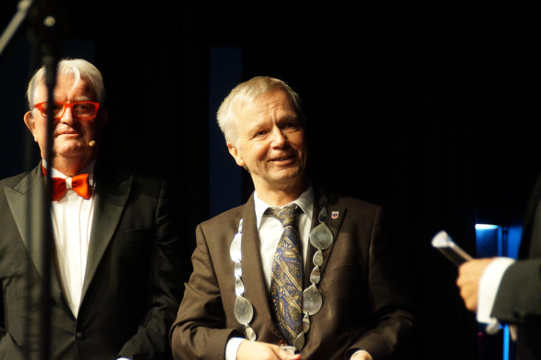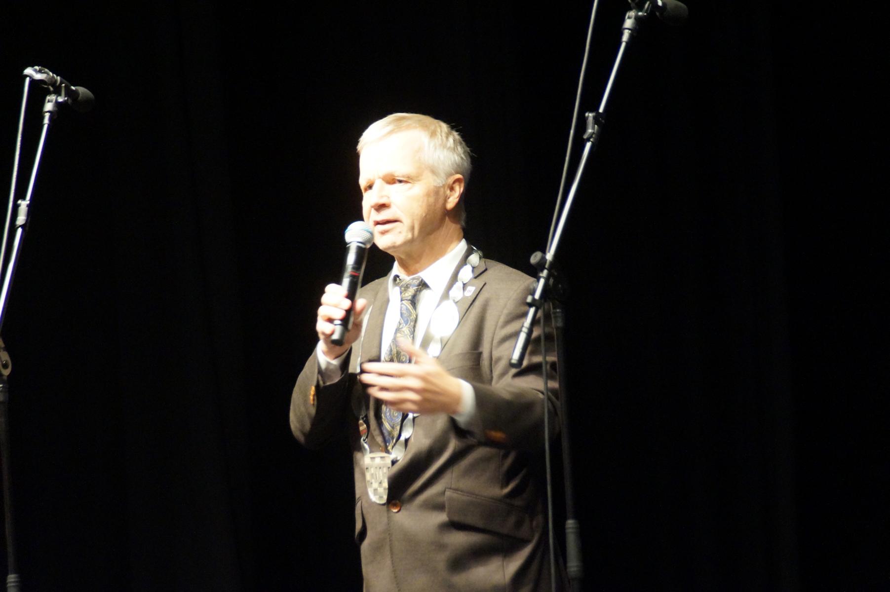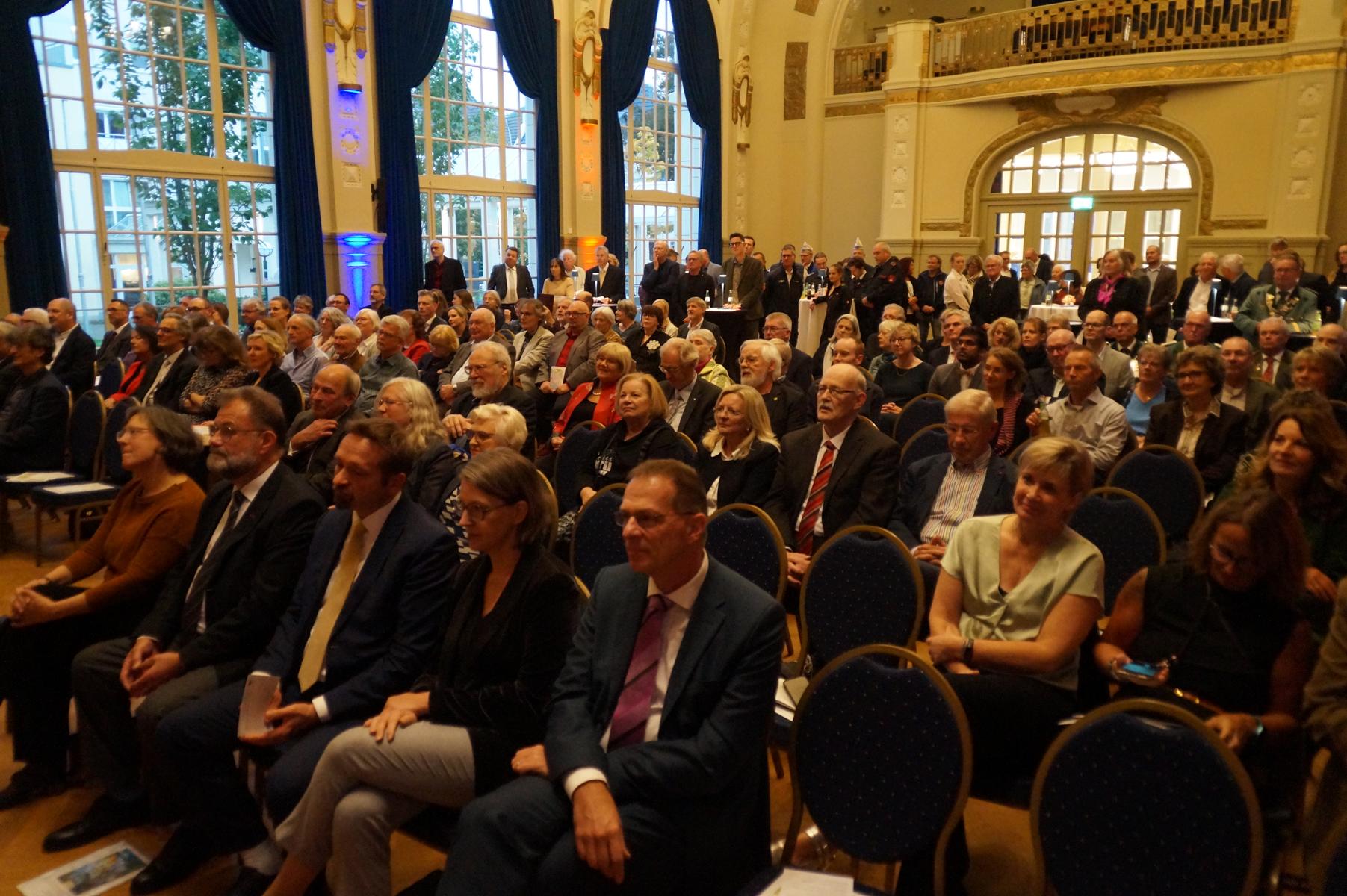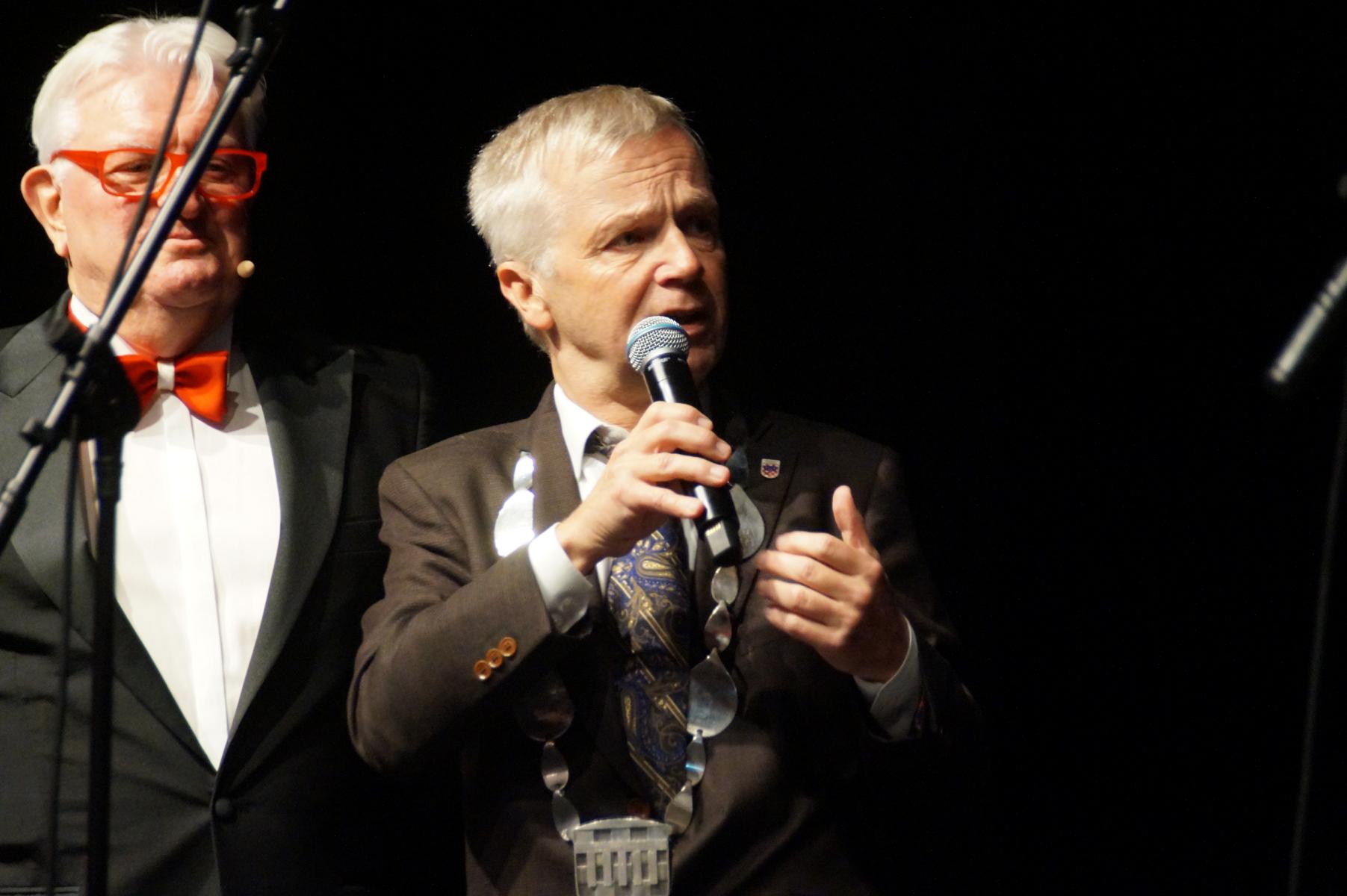 Der festlich geschmückte Kursaal bot den würdigen Rahmen für die Veranstaltung. Vertreter aus Politik, Verwaltung, Vereinen und Bürgerschaft waren gekommen, um Otto Neuhoff zu ehren. Die Moderation übernahmen Thomas Heyer und Peter Hurrelmann, die mit Charme und Witz durch den Abend führten. Sie erinnerten augenzwinkernd daran, dass Neuhoff „elf Jahre und 111 Tage“ im Amt war – eine Zahl, die im Rheinland nicht zufällig gewählt schien.