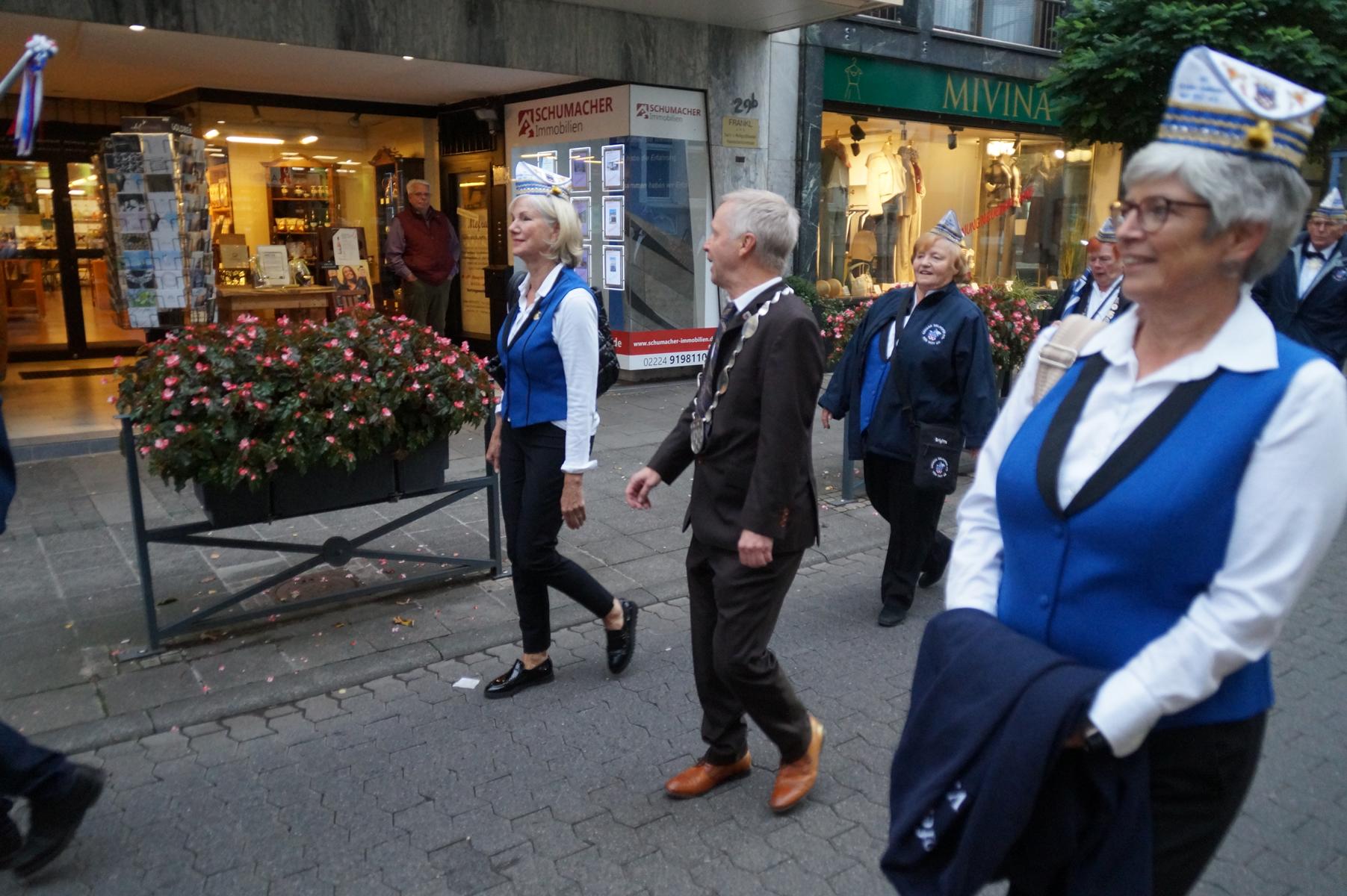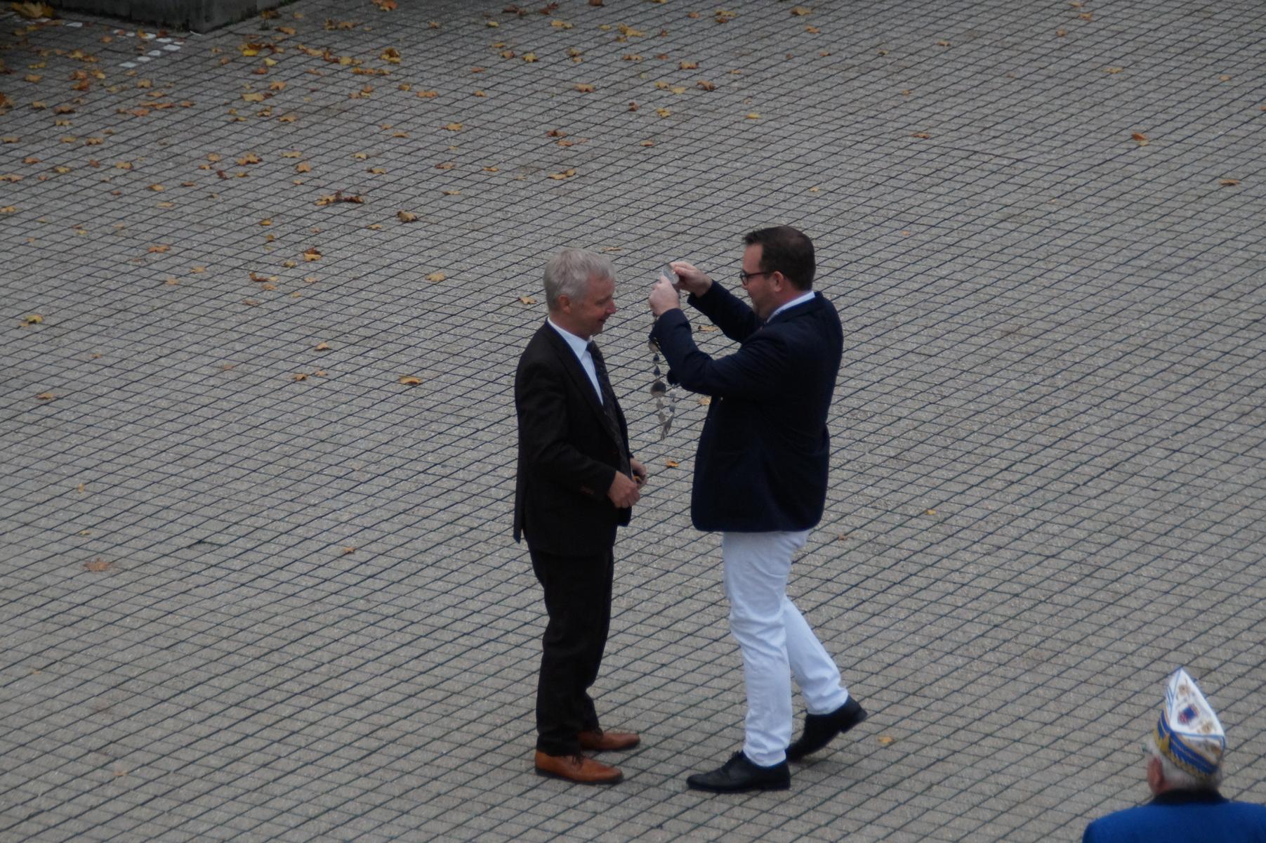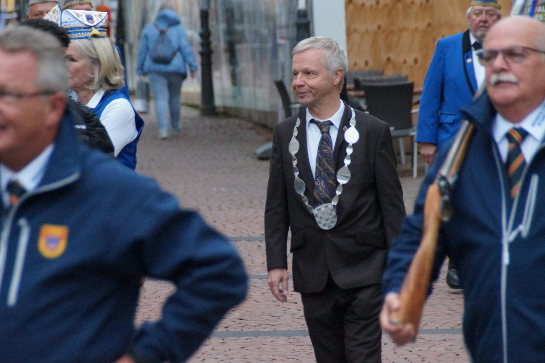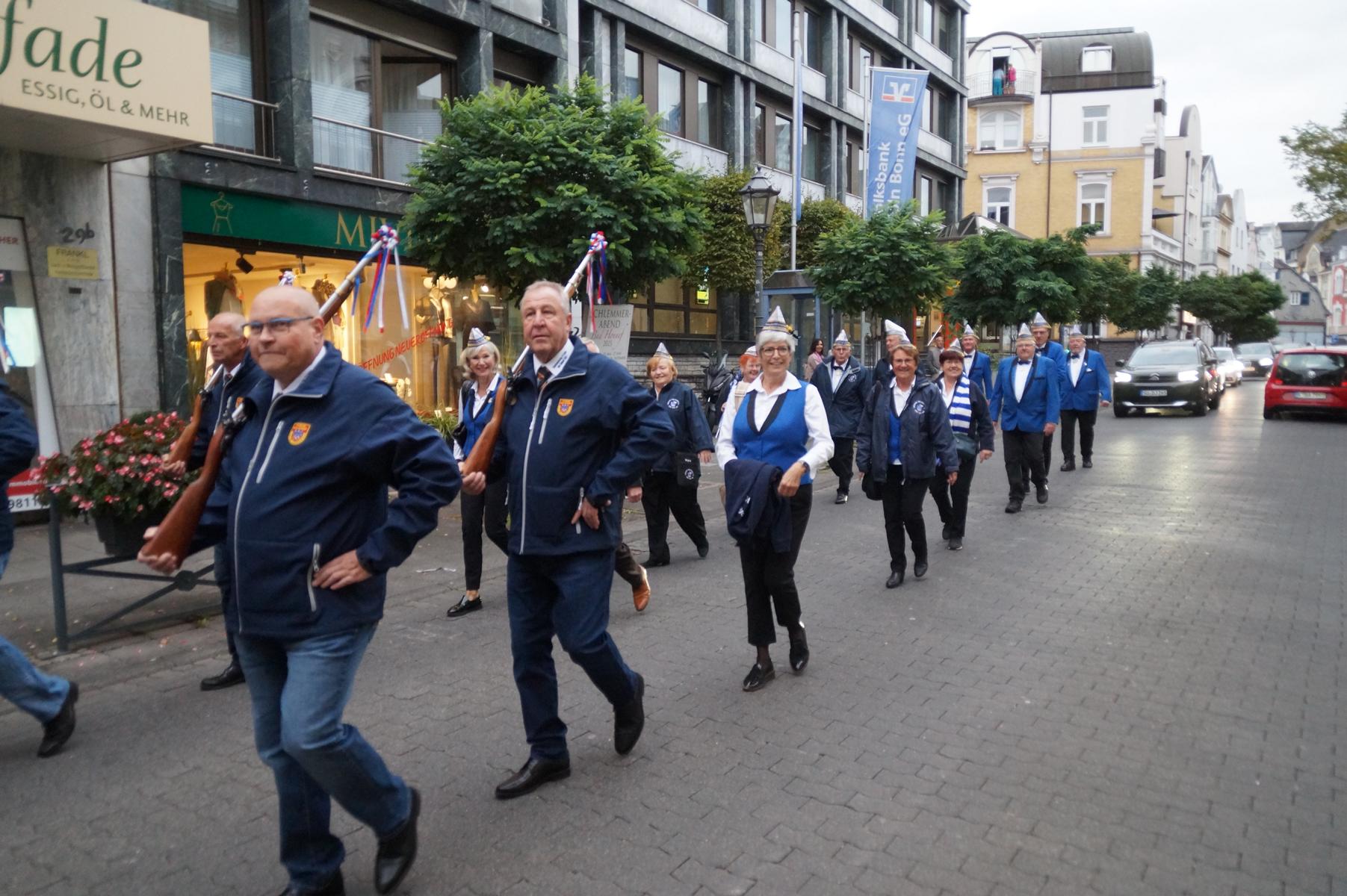 Der Abschied begann bereits am 9. Oktober 2025 am Rathaus: Otto Neuhoff wurde dort feierlich abgeholt, begleitet von den Bad Honnefer Stadtsoldaten und den Senatoren der KG Blau-Weiß Selhof, bei denen Otto Neuhoff selbst Senator ist. In einem festlichen Zug ging es gemeinsam durch die Fußgängerzone bis zum Kurhaus, wo die offizielle Verabschiedung stattfand.