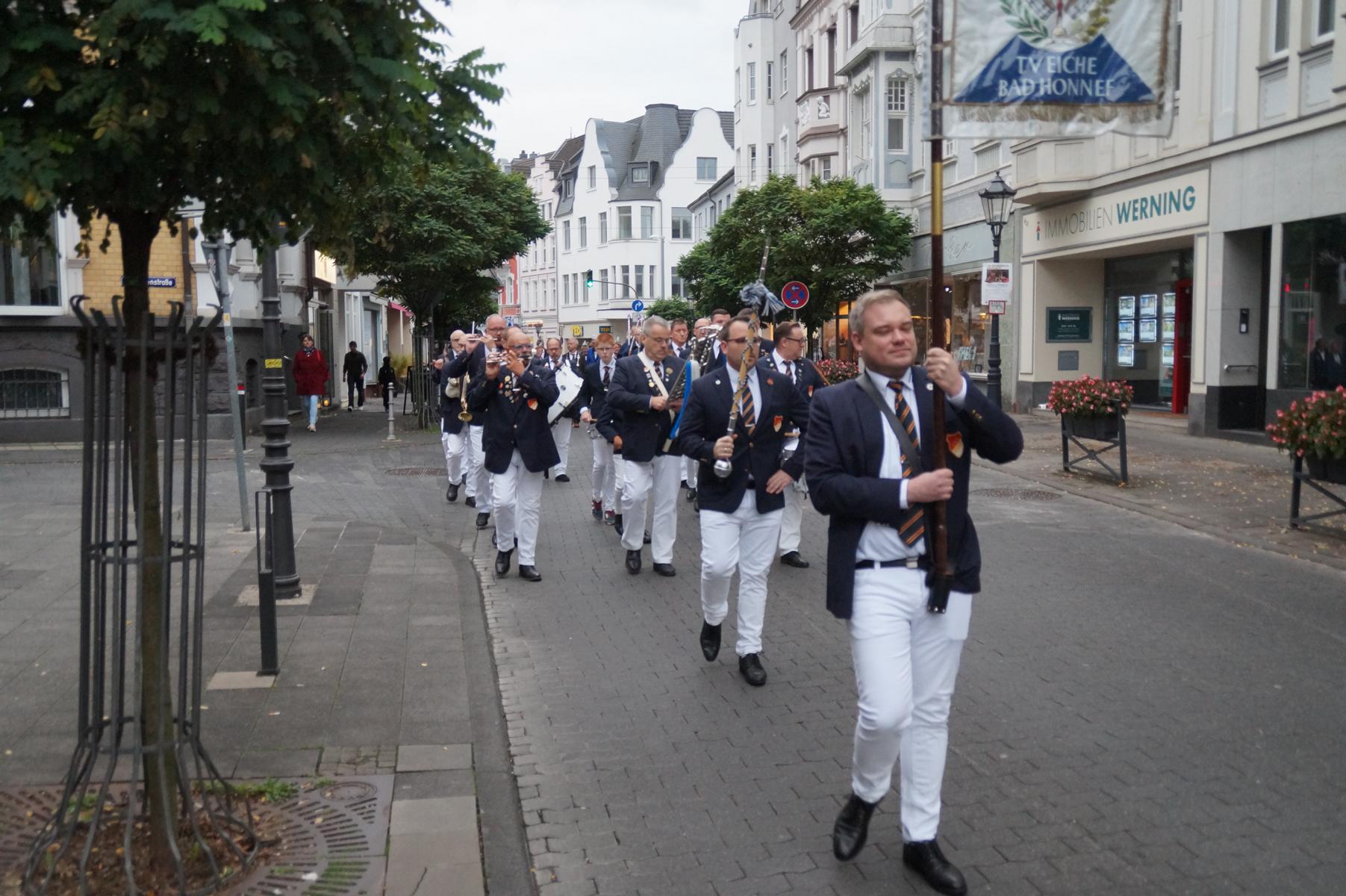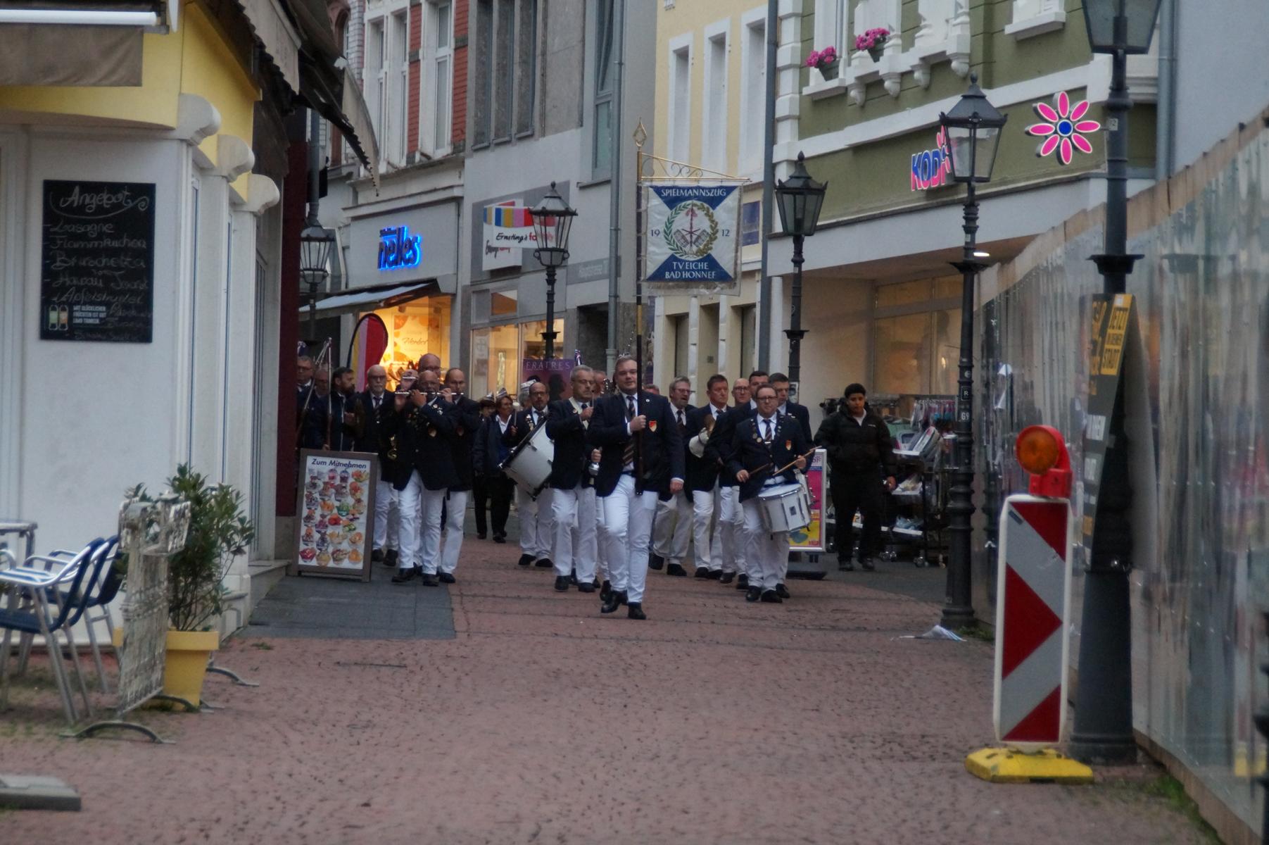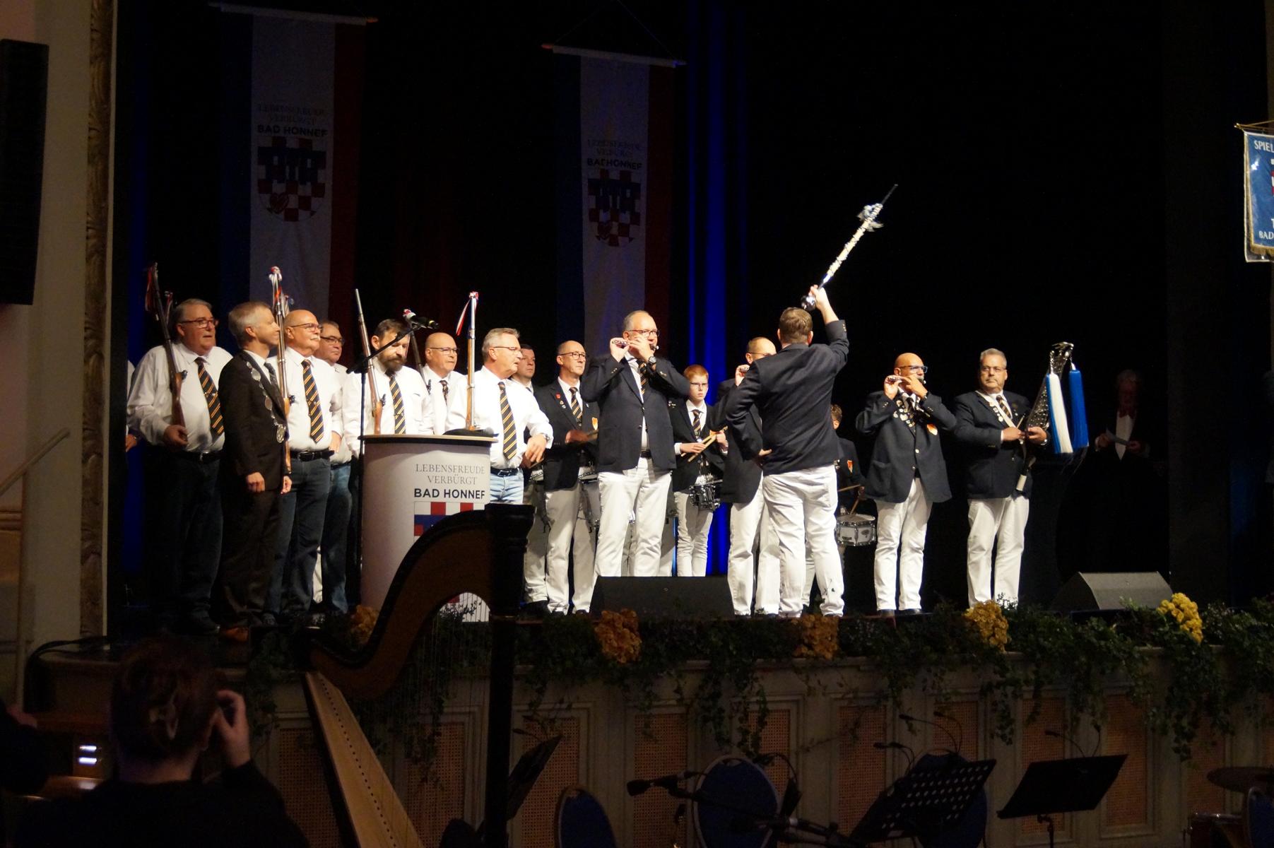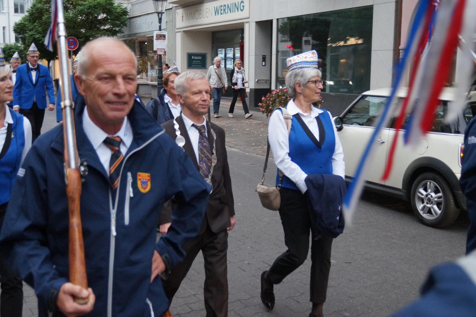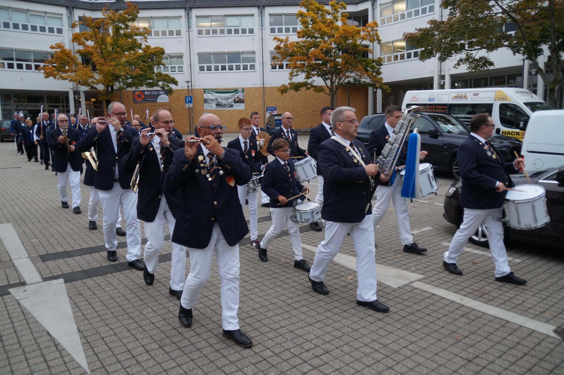 Der Abschied begann bereits am 9. Oktober 2025 am Rathaus: Otto Neuhoff wurde dort feierlich abgeholt, begleitet von den Bad Honnefer Stadtsoldaten und den Senatoren der KG Blau-Weiß Selhof, bei denen Otto Neuhoff selbst Senator ist. In einem festlichen Zug ging es gemeinsam durch die Fußgängerzone bis zum Kurhaus, wo die offizielle Verabschiedung stattfand.