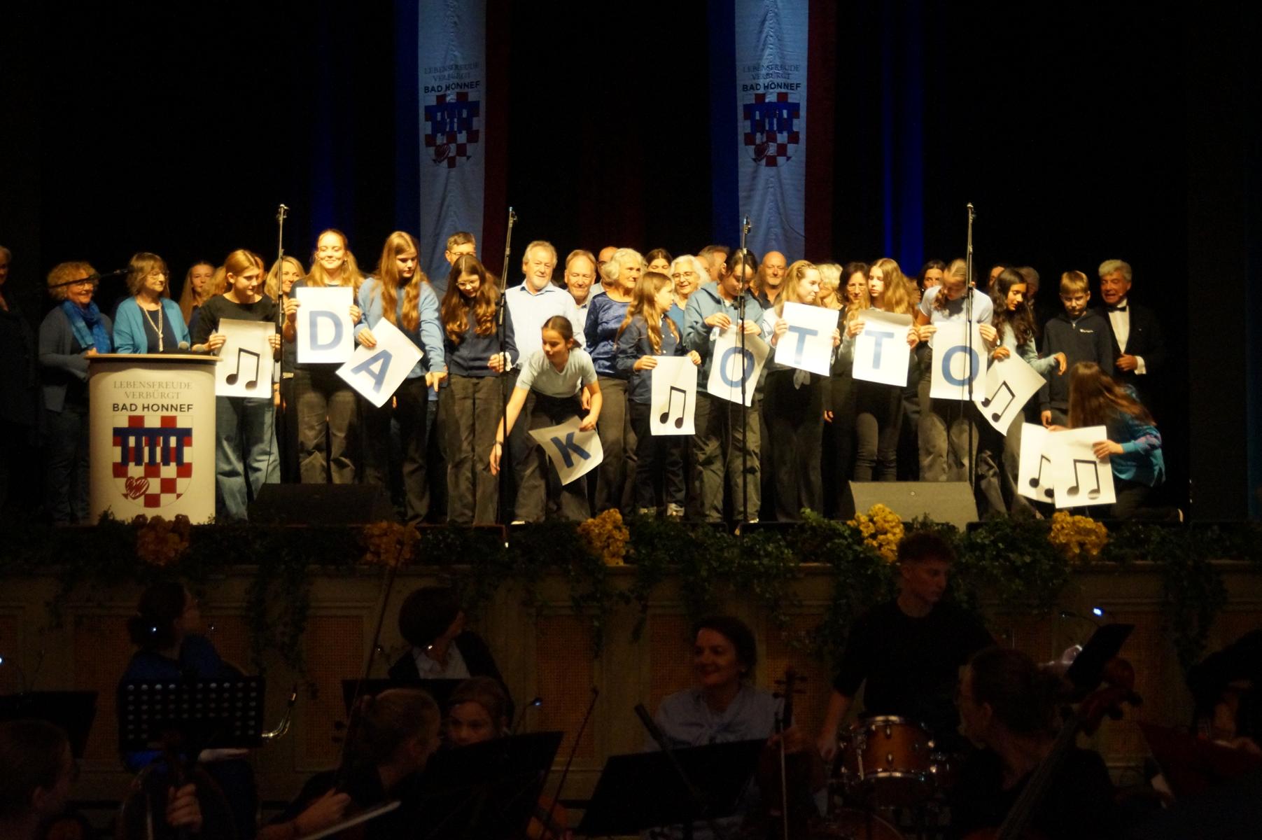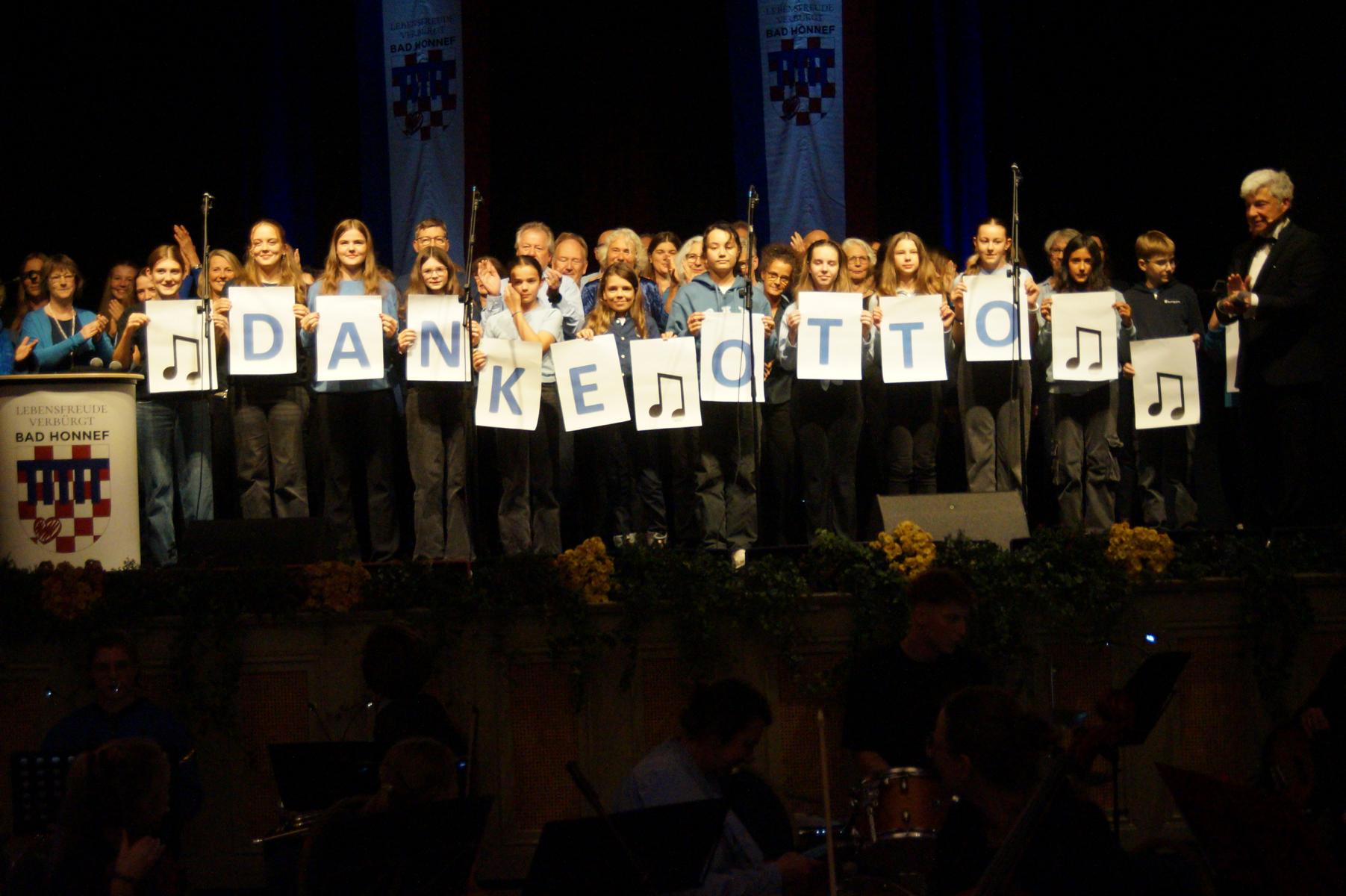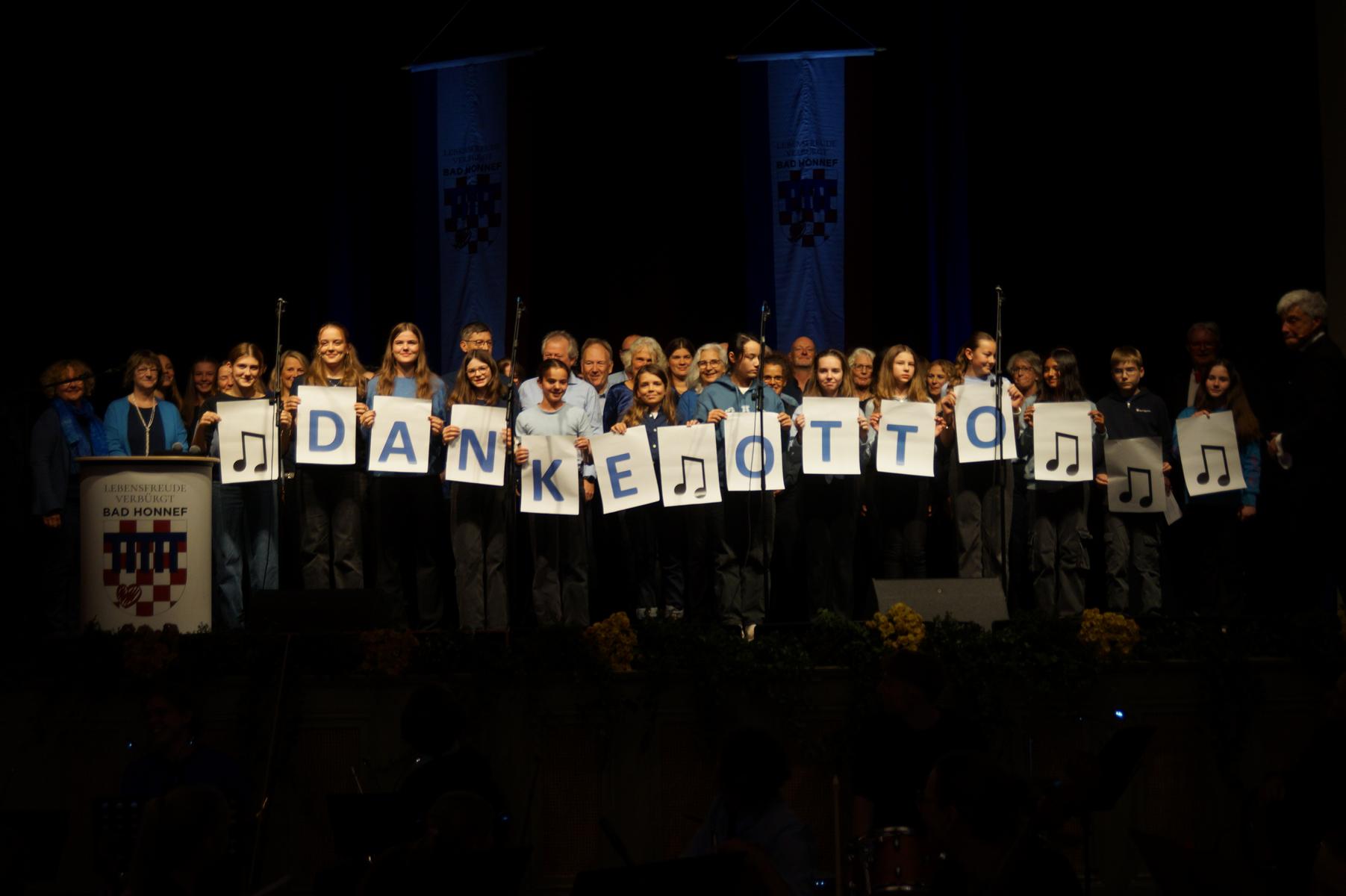 Der musikalische Teil endete mit einem bewegenden Moment: Ein großes Spruchband, auf dem in kräftigen Lettern „DANKE!! OTTO!“ stand ,wurde auf der Bühne hochgehalten. Dies wurde von stehenden Ovationen und langanhaltendem Applaus begleitet.