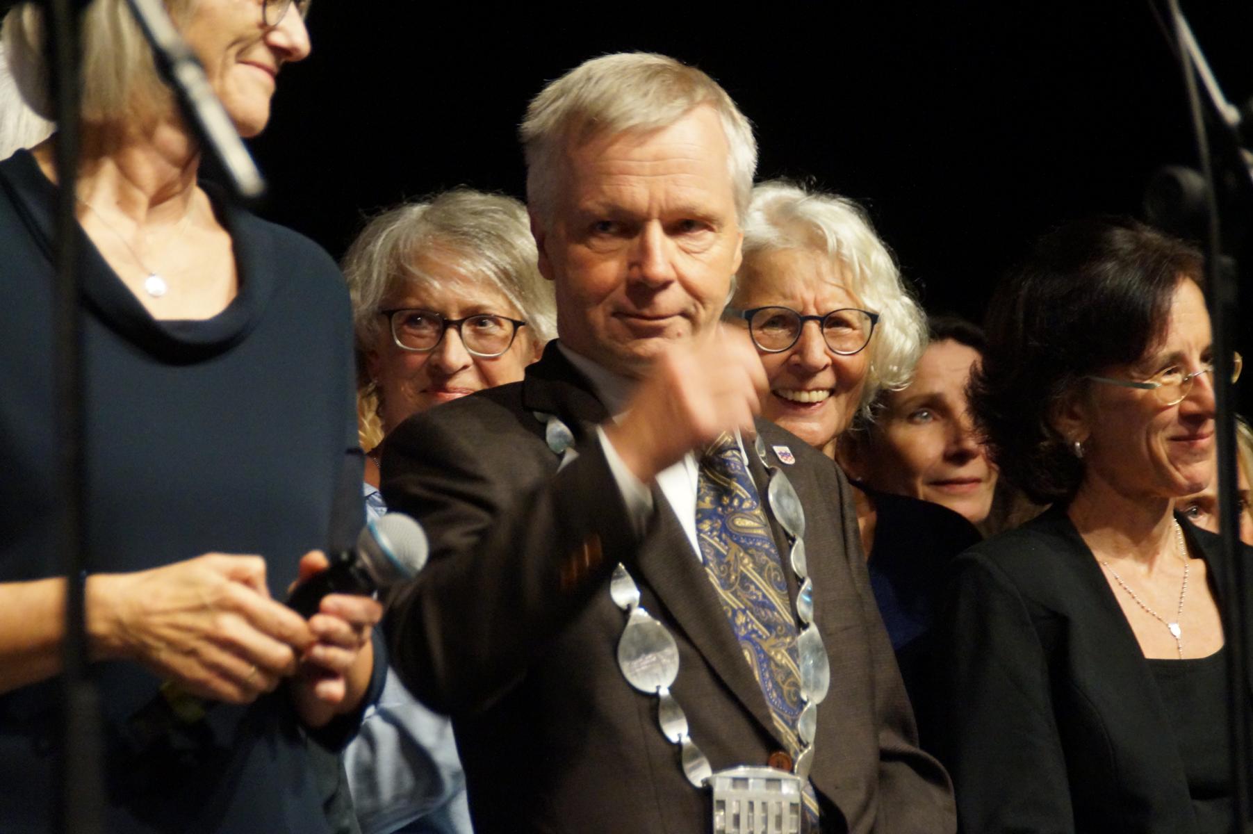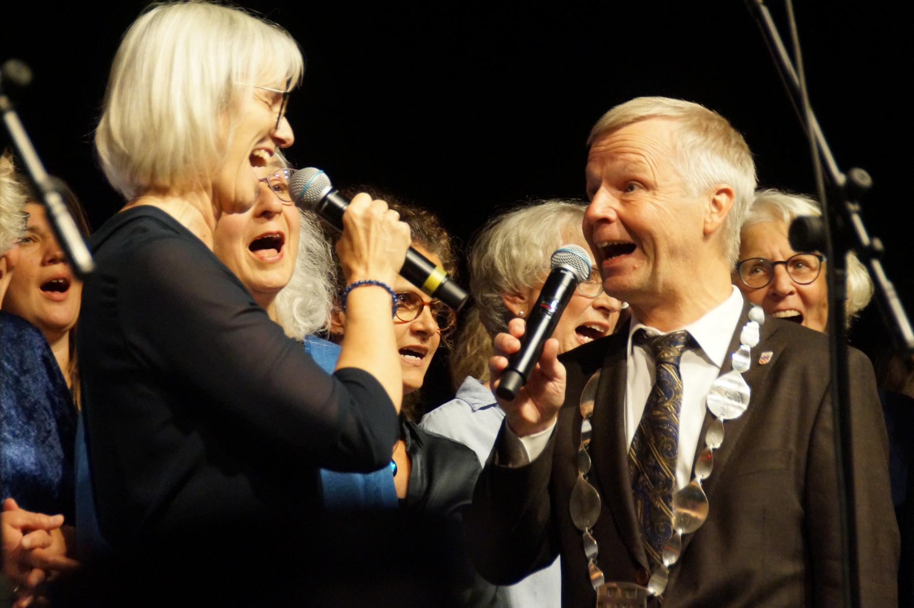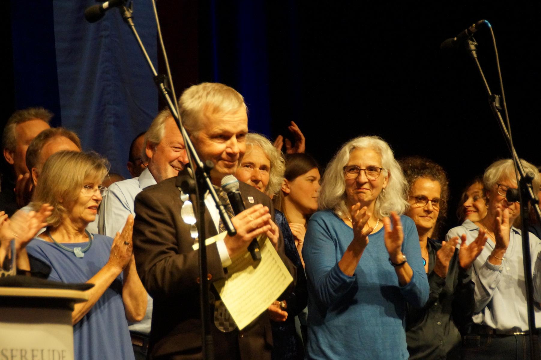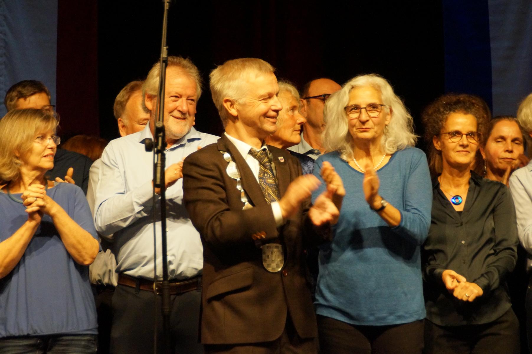 Der musikalische Teil endete mit einem bewegenden Moment: Ein großes Spruchband, auf dem in kräftigen Lettern „DANKE!! OTTO!“ stand ,wurde auf der Bühne hochgehalten. Dies wurde von stehenden Ovationen und langanhaltendem Applaus begleitet.