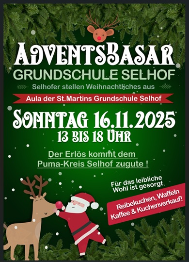 Am Sonntag, den 16. November 2025, laden die ehrenamtlich Engagierten aus Selhof und Bad Honnef herzlich zum stimmungsvollen Adventsbasar in die Aula der St. Martins Grundschule Selhof ein. Von 13 bis 18 Uhr erwartet die Besucher ein liebevoll gestalteter Weihnachtsmarkt mit handgefertigten Geschenkideen und festlicher Dekoration.
