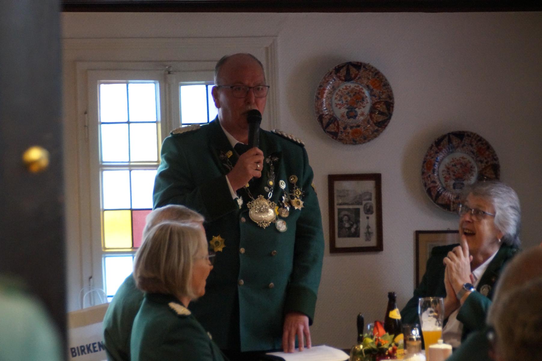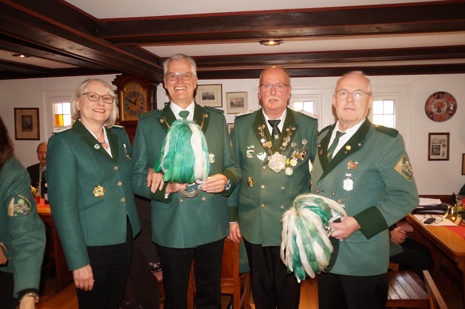 Nach seinen Grußworten ließ Ralf Wagner die Ereignisse des zurückliegenden Jahres Revue passieren. Nach einer längeren Vakanz konnten die Vorstandsposten nun wieder vollständig besetzt werden. Er gab die Wahl zur Vizepräsidentin von Angela Stang sowie die Wahl des 1. Fähnrichs Manfred Heints und des 2. Fähnrichs Andreas Friedrichs bekannt, die ihre Rangabzeichen überreicht bekamen.