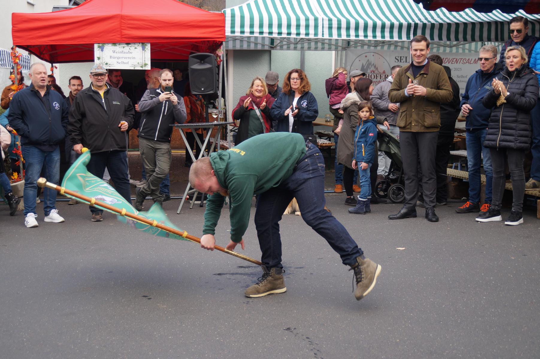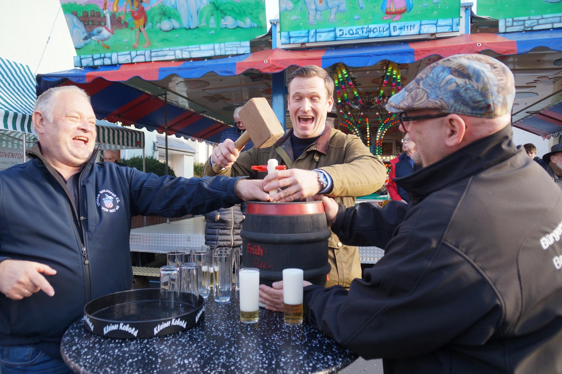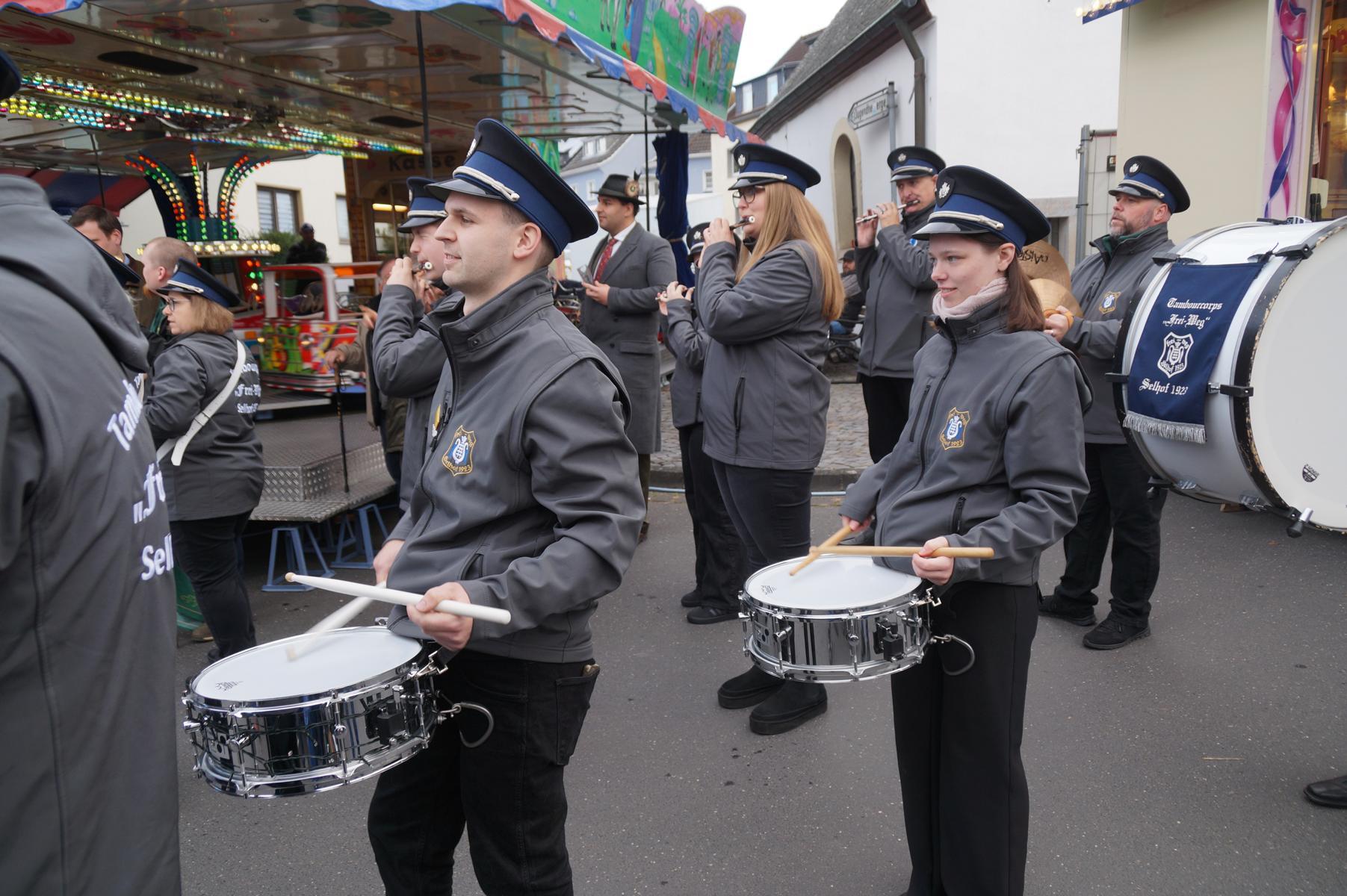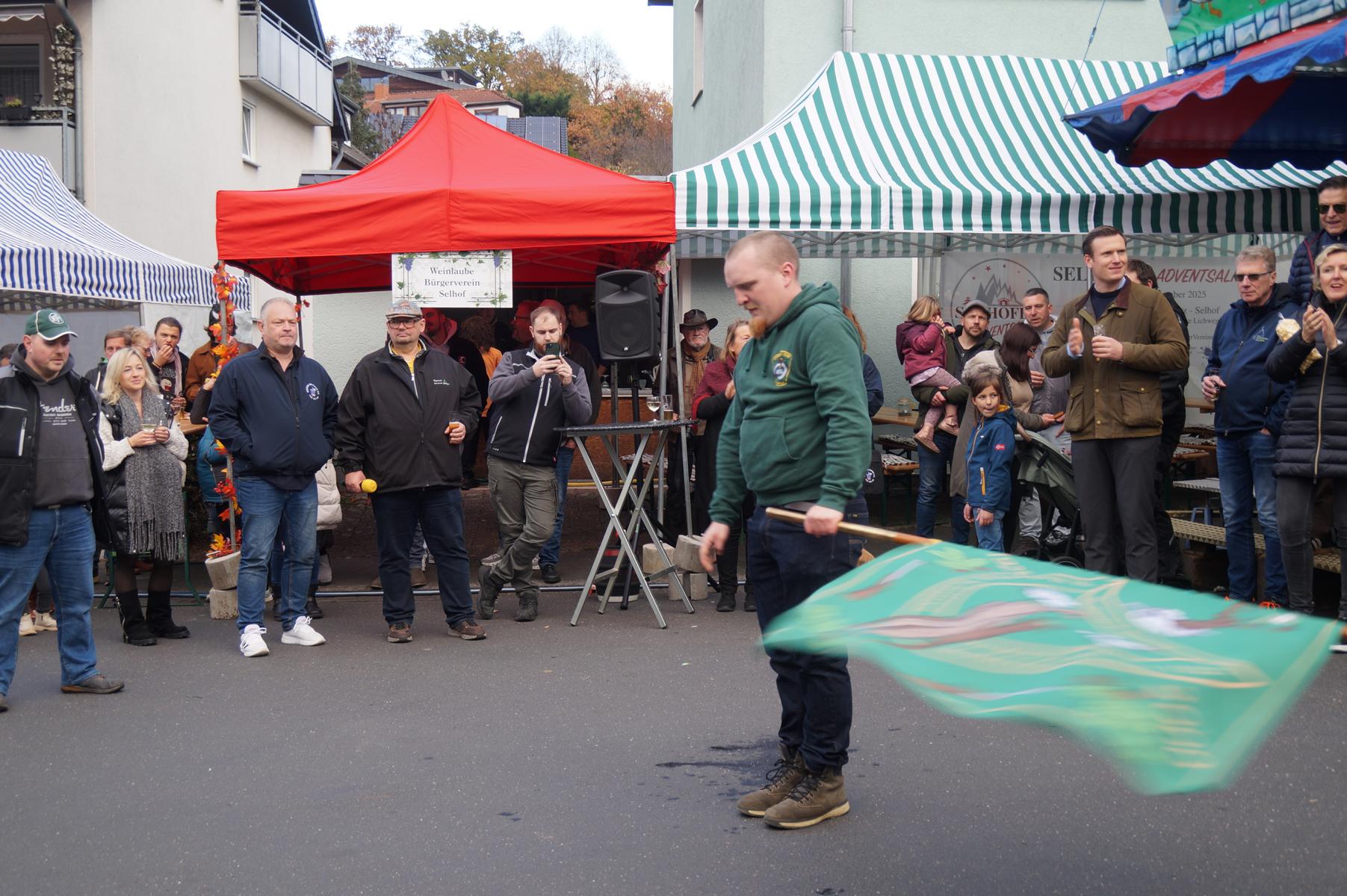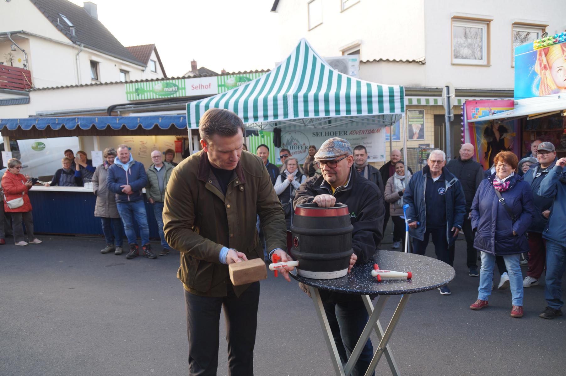 Die Selhofer Kirmes begann am Samstag, dem 8. November 2025, um 14 Uhr. Bürgermeister Philipp Herzog eröffnete das Fest mit seinem ersten Fassanstich im Amt. Mit drei gezielten Schlägen brachte er das Kirmesfässchen zum Fließen – damit war die Kirmes offiziell eröffnet. Feierlich begleitet wurde der Fassanstich vom Tambourcorps „Frei Weg“ Selhof, das mit schwungvollen Klängen für die passende musikalische Untermalung sorgte.