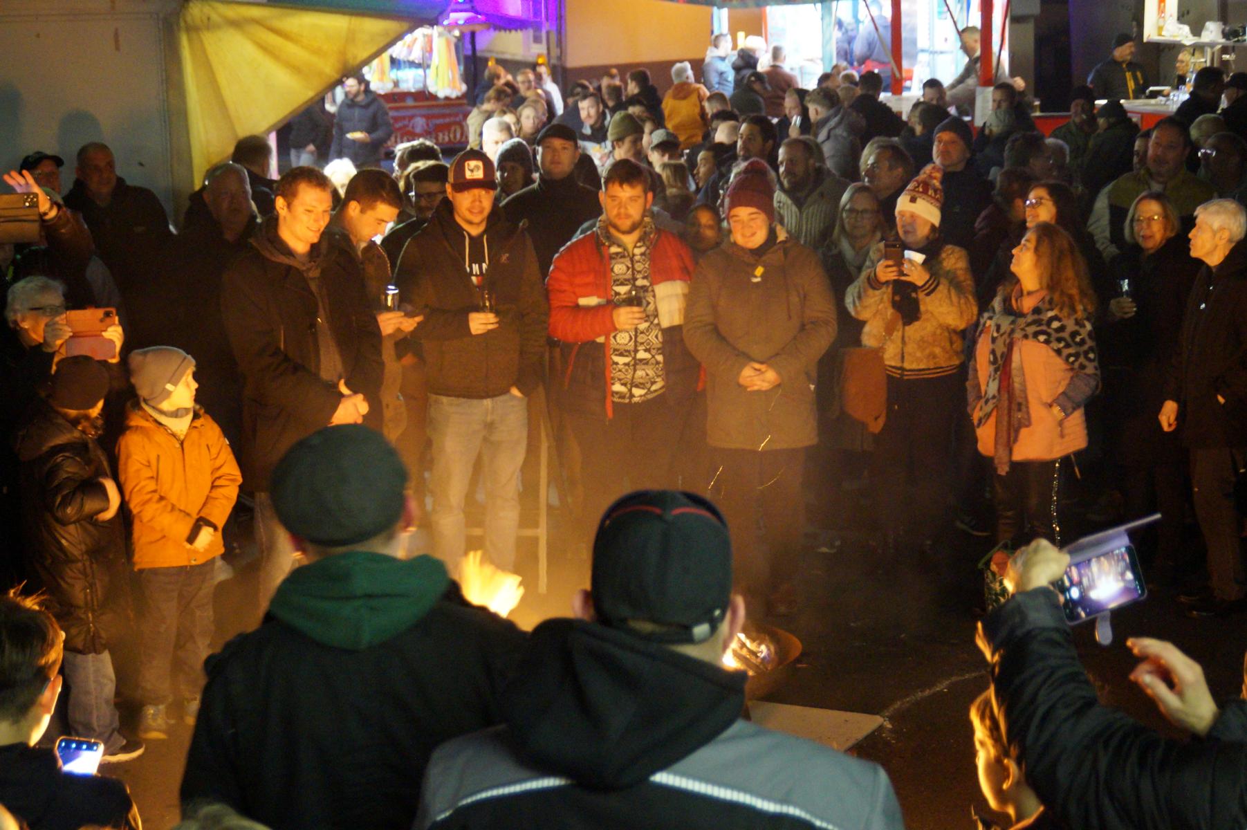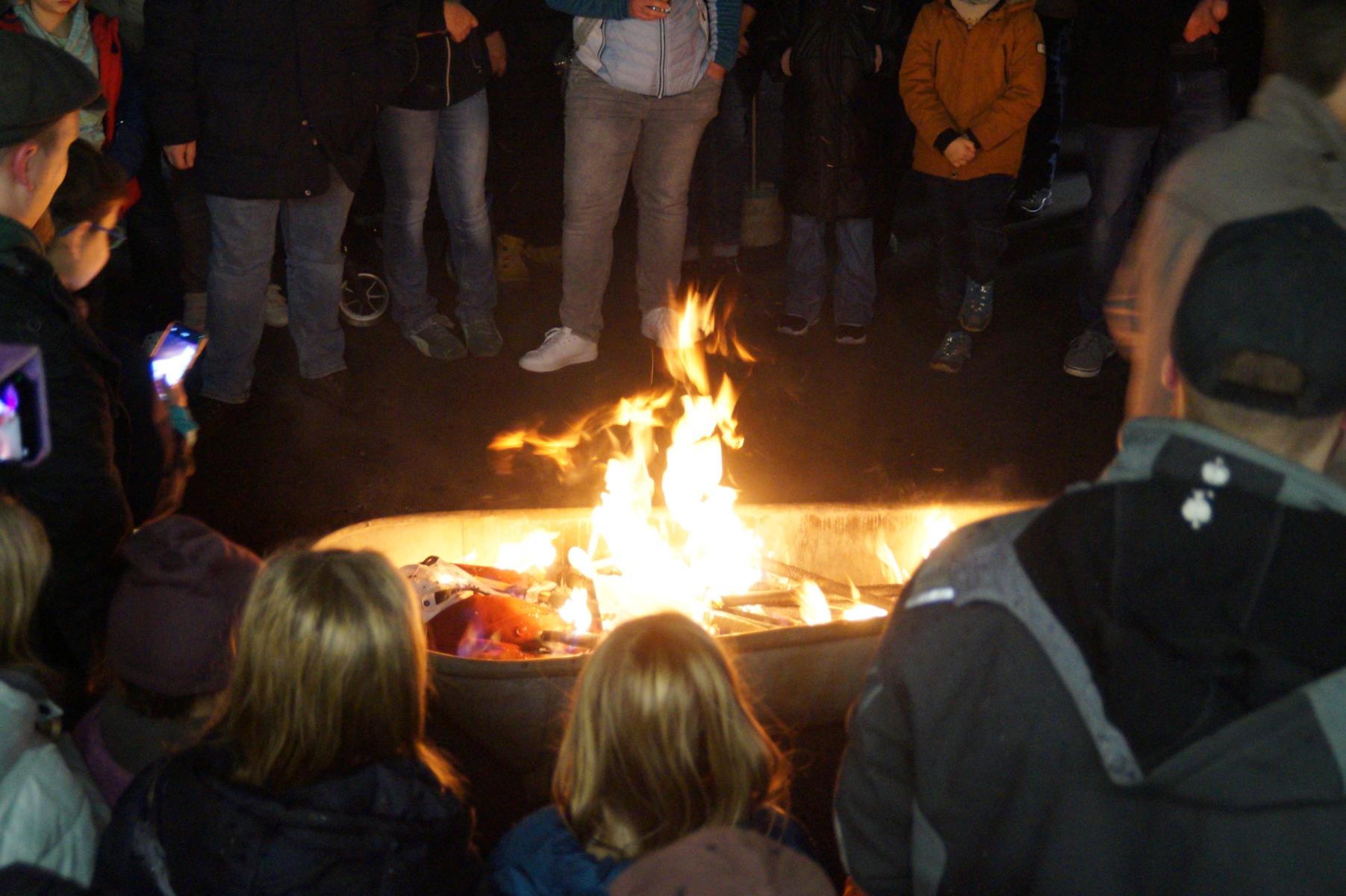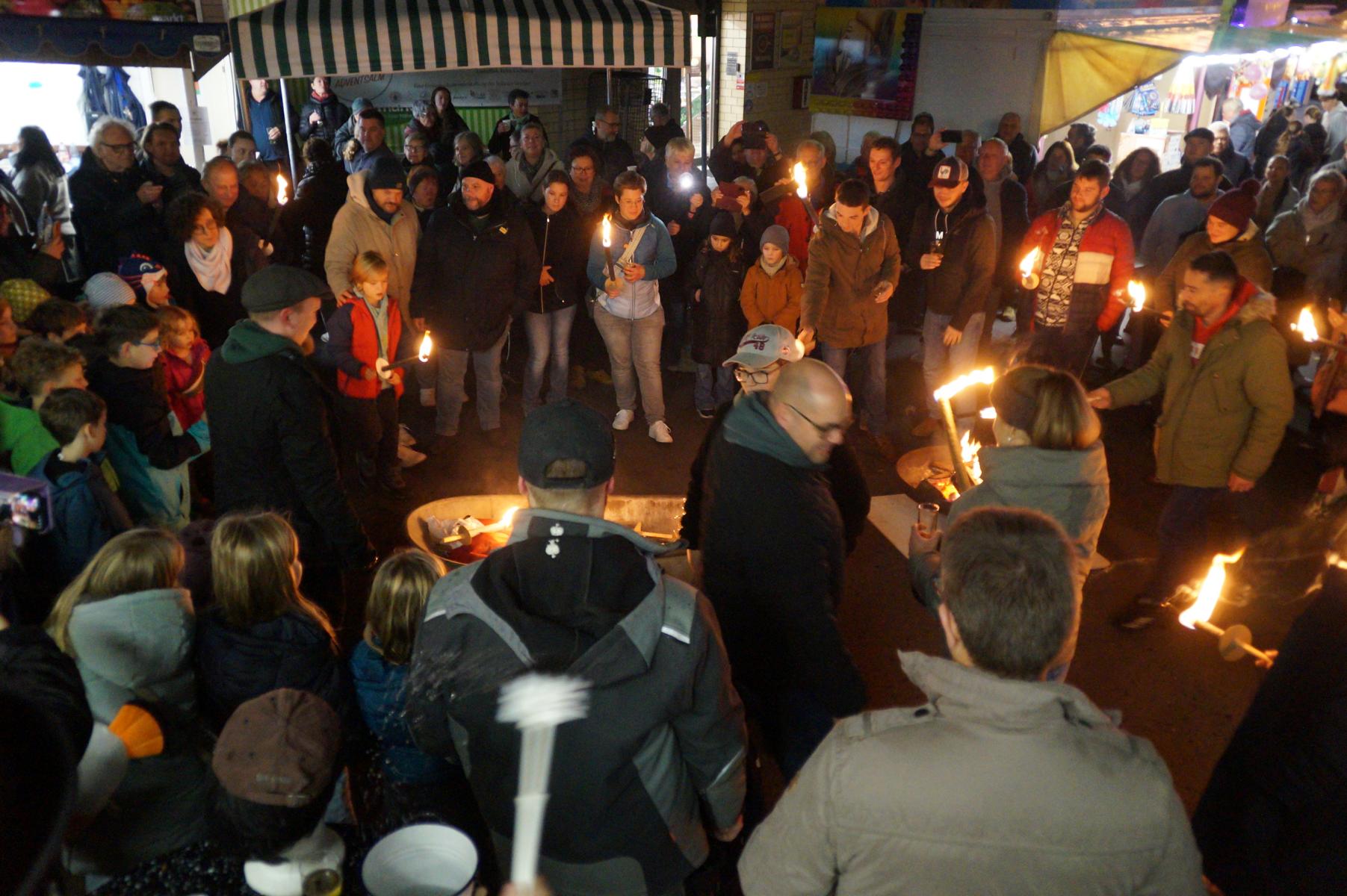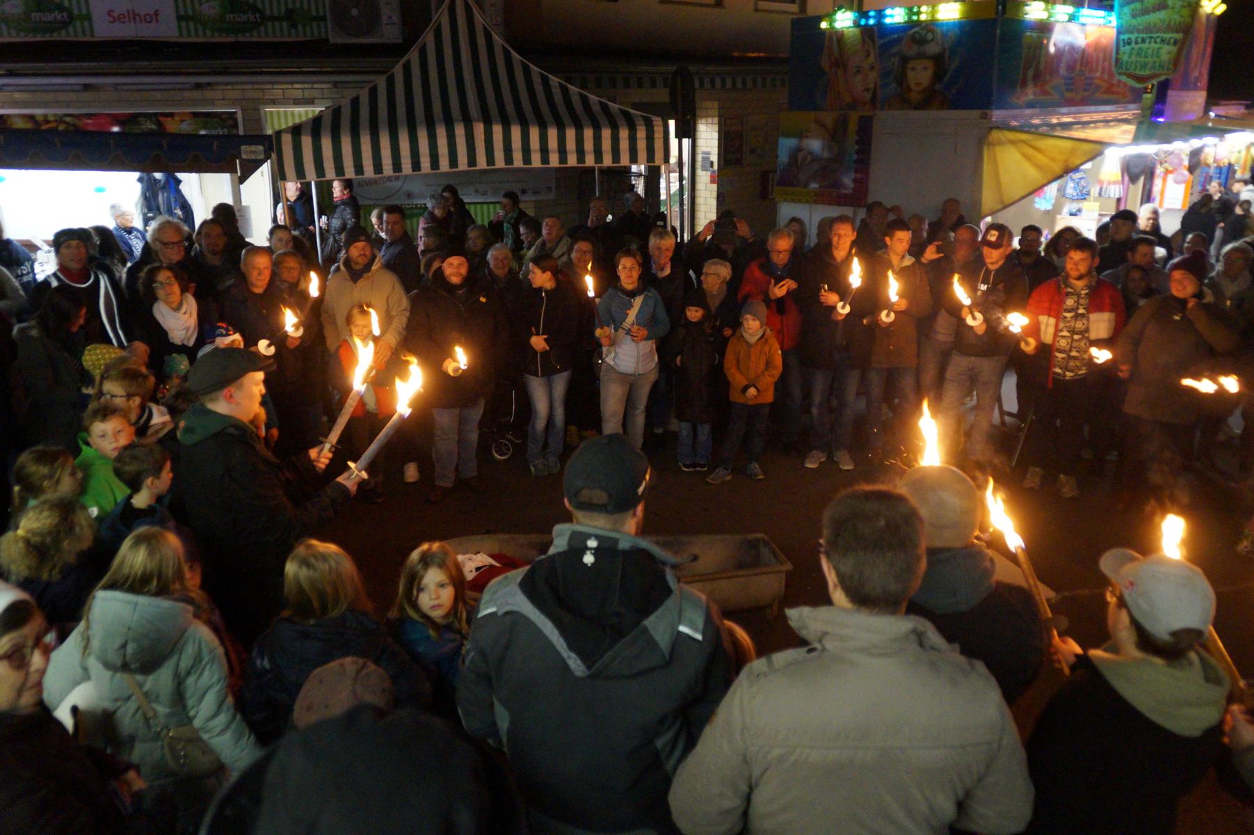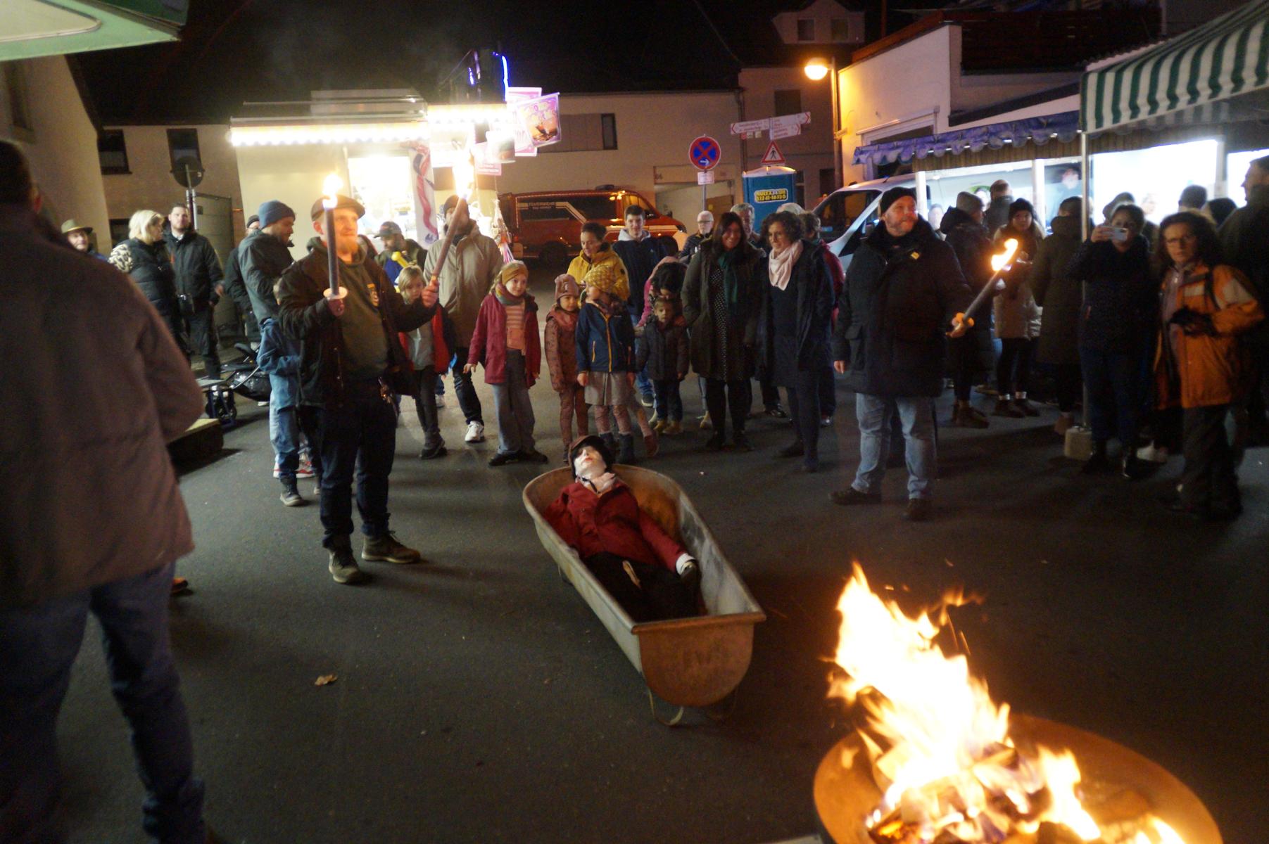 Am Montagabend, dem 13. November, fand der traditionelle Fackelzug durch die Straßen von Selhof statt. Pünktlich um 18:30 Uhr wurde der Kirmesmann unter den Trauerworten von Max Raffauf den Flammen übergeben. Doch die Trauer währte nicht lange: Ein lauter Knall kündigte das große Finale an.