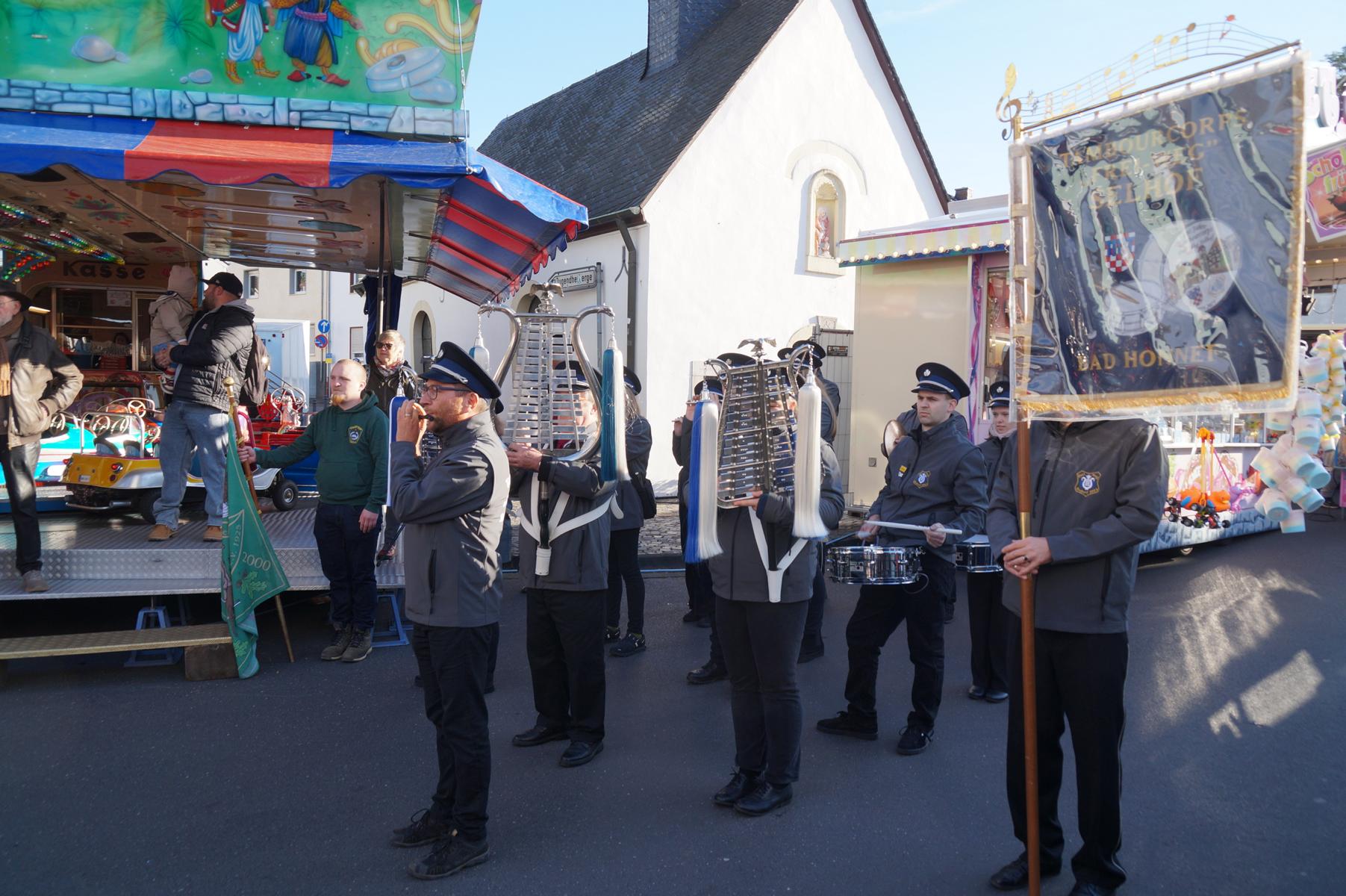 Der Sonntag begann mit einem Festgottesdienst in der Martinskirche. Anschließend wurde ein Kranz am Ehrenmal in der Menzenberger Straße niedergelegt – zum Gedenken an die Gefallenen. Danach zog ein Festzug zum Saal Kaiser, wo zum Kirmesfrühschoppen geladen wurde. Dort fand auch die Auslosung der beliebten Kirmes-Tombola statt. (Siehe unten )