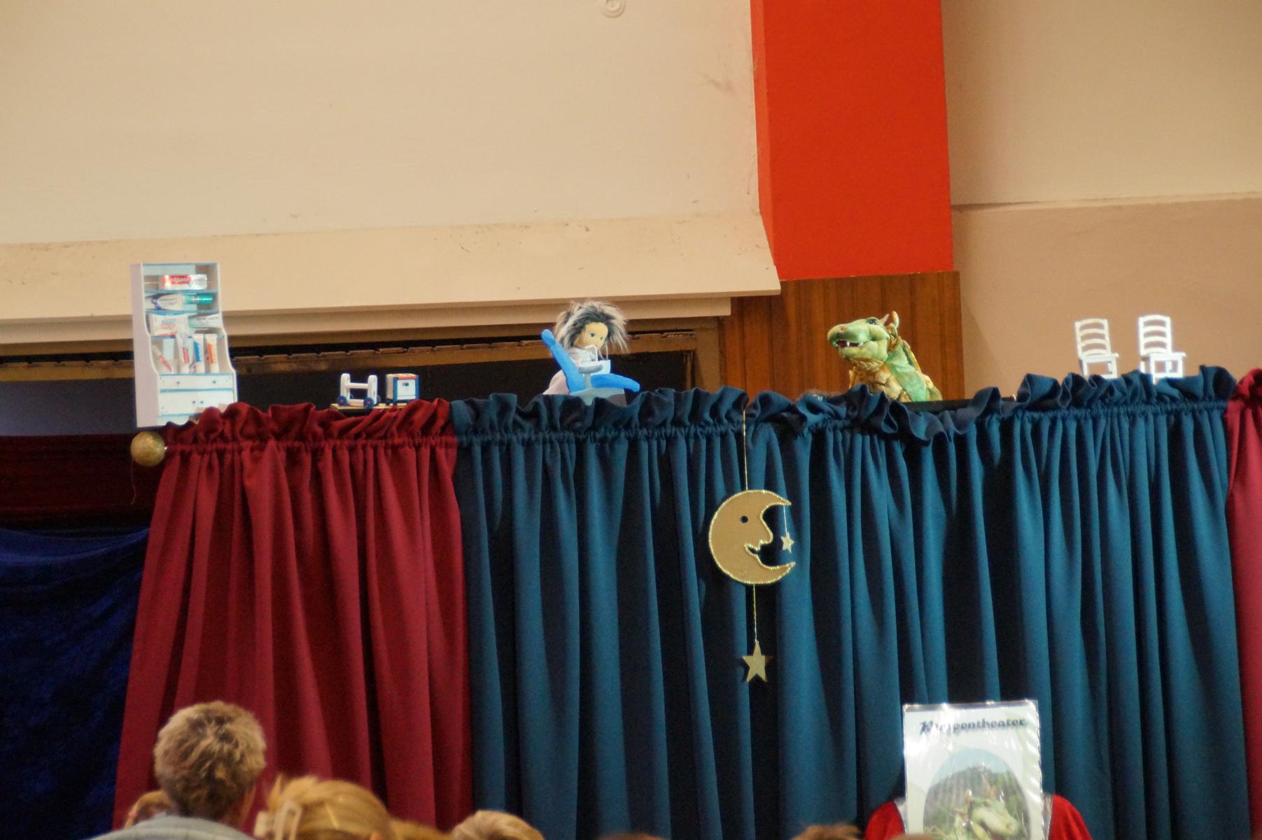 Für die kleinen Gäste wurde in der Turnhalle das Puppenspiel „Ein ungewöhnlicher Patient“ vom Drachenfels aufgeführt und sorgte für große Begeisterung.